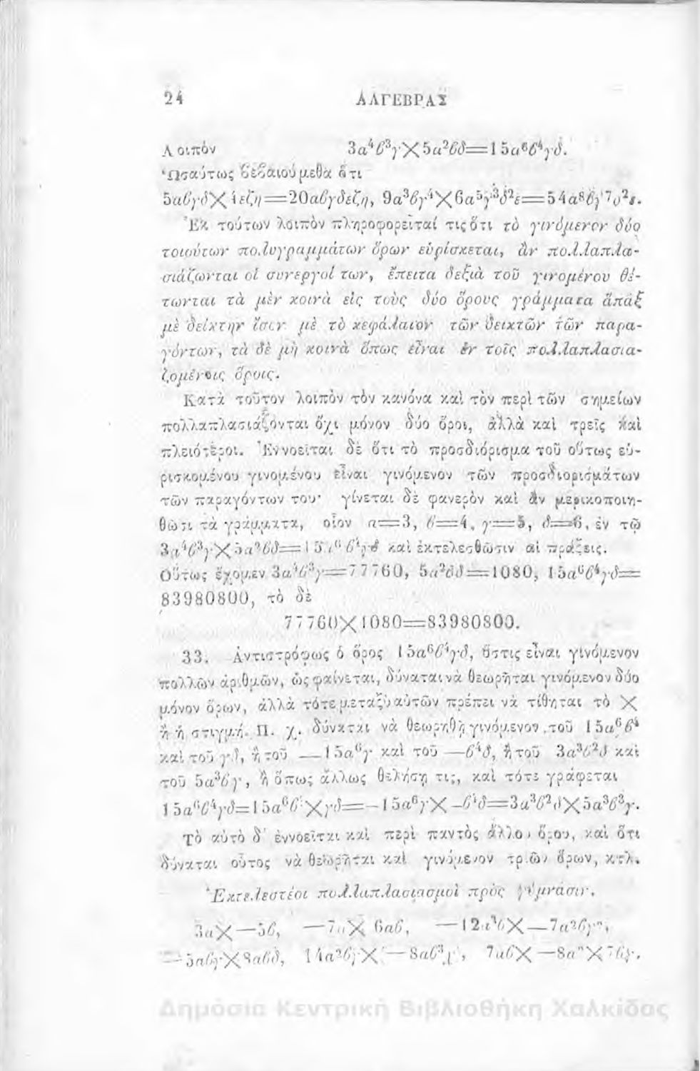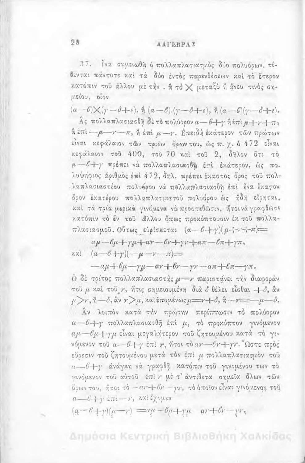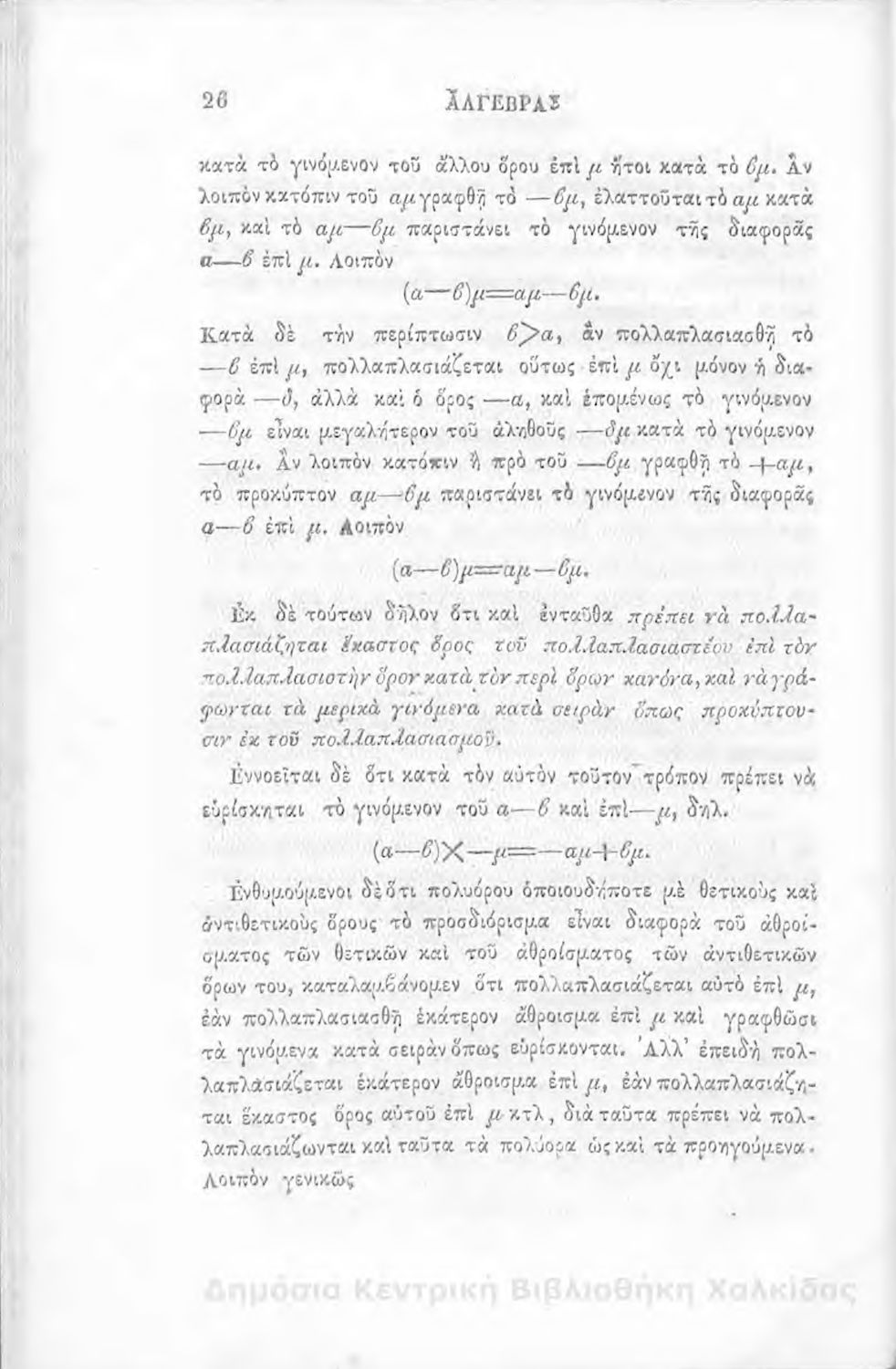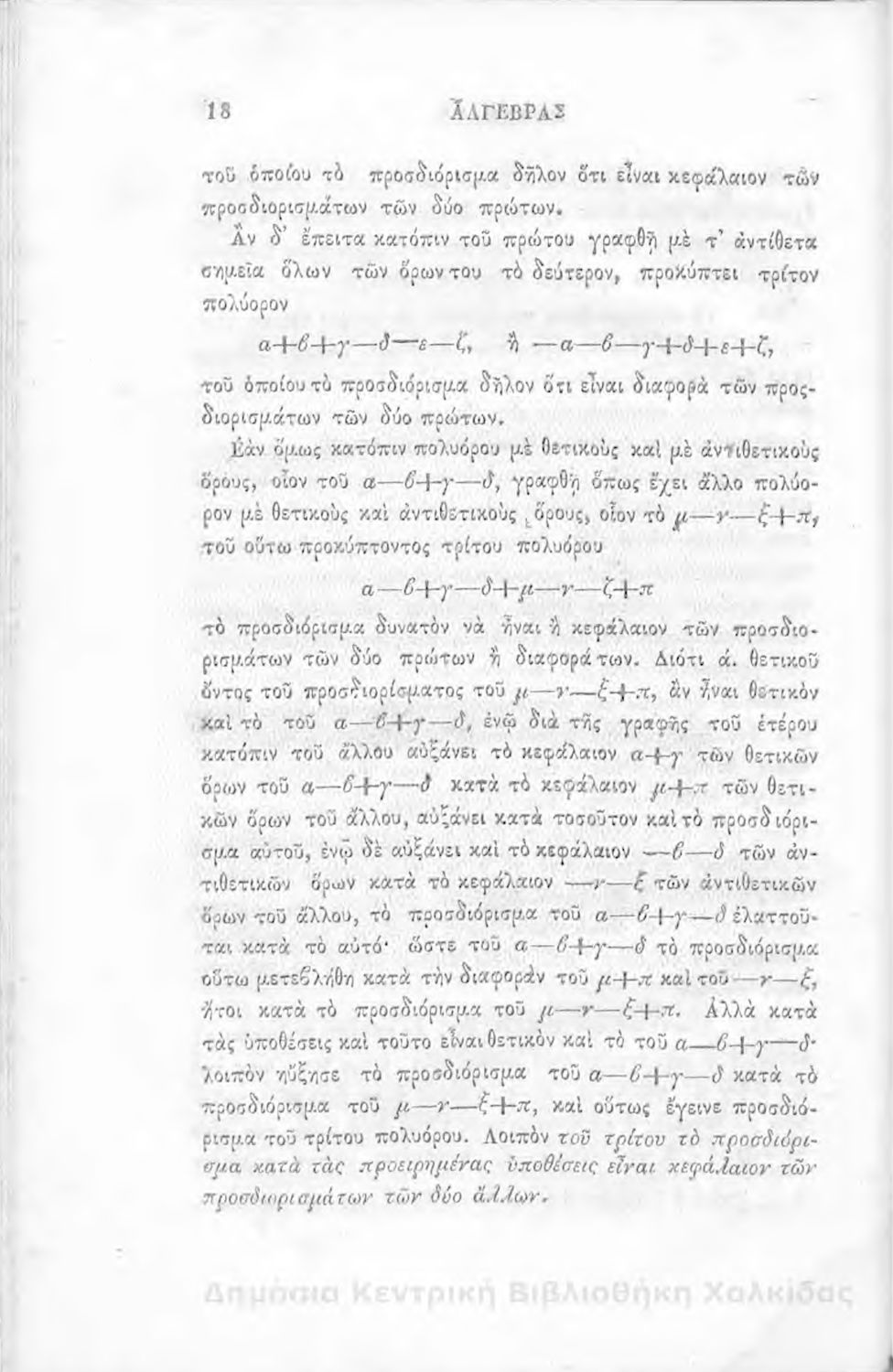 Άλγεβρας μαθήματα : τα του πρώτου και του δευτέρου βαθμού. Προς χρήσιν των μαθητευόντων εν τοις γυμνασίοις της Ελλάδος