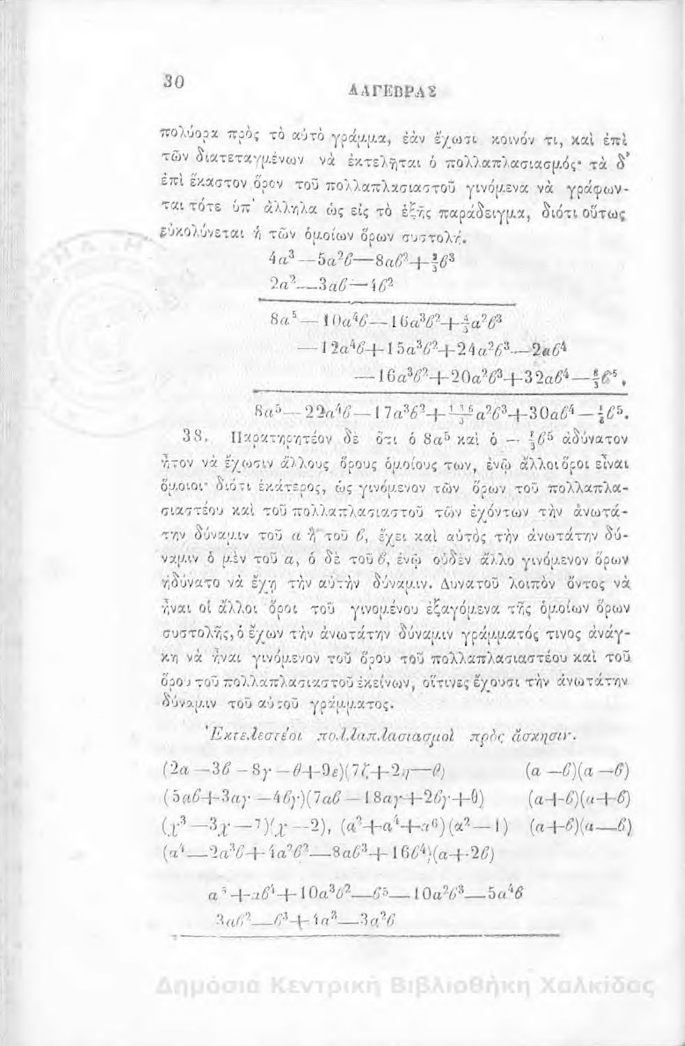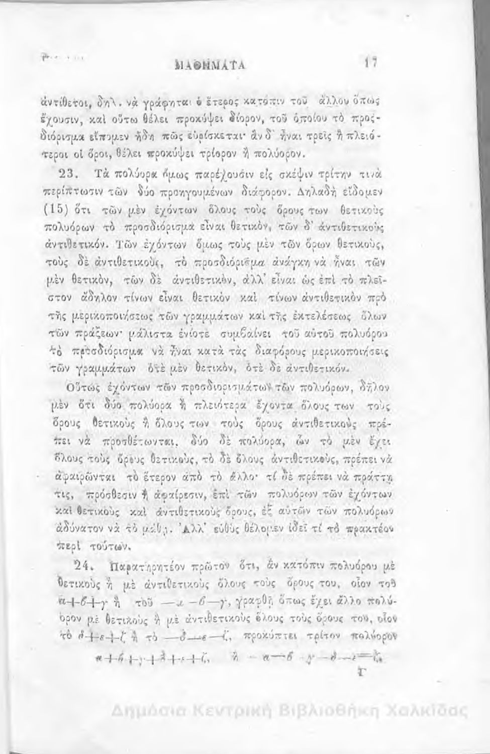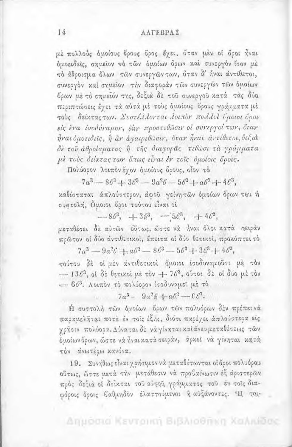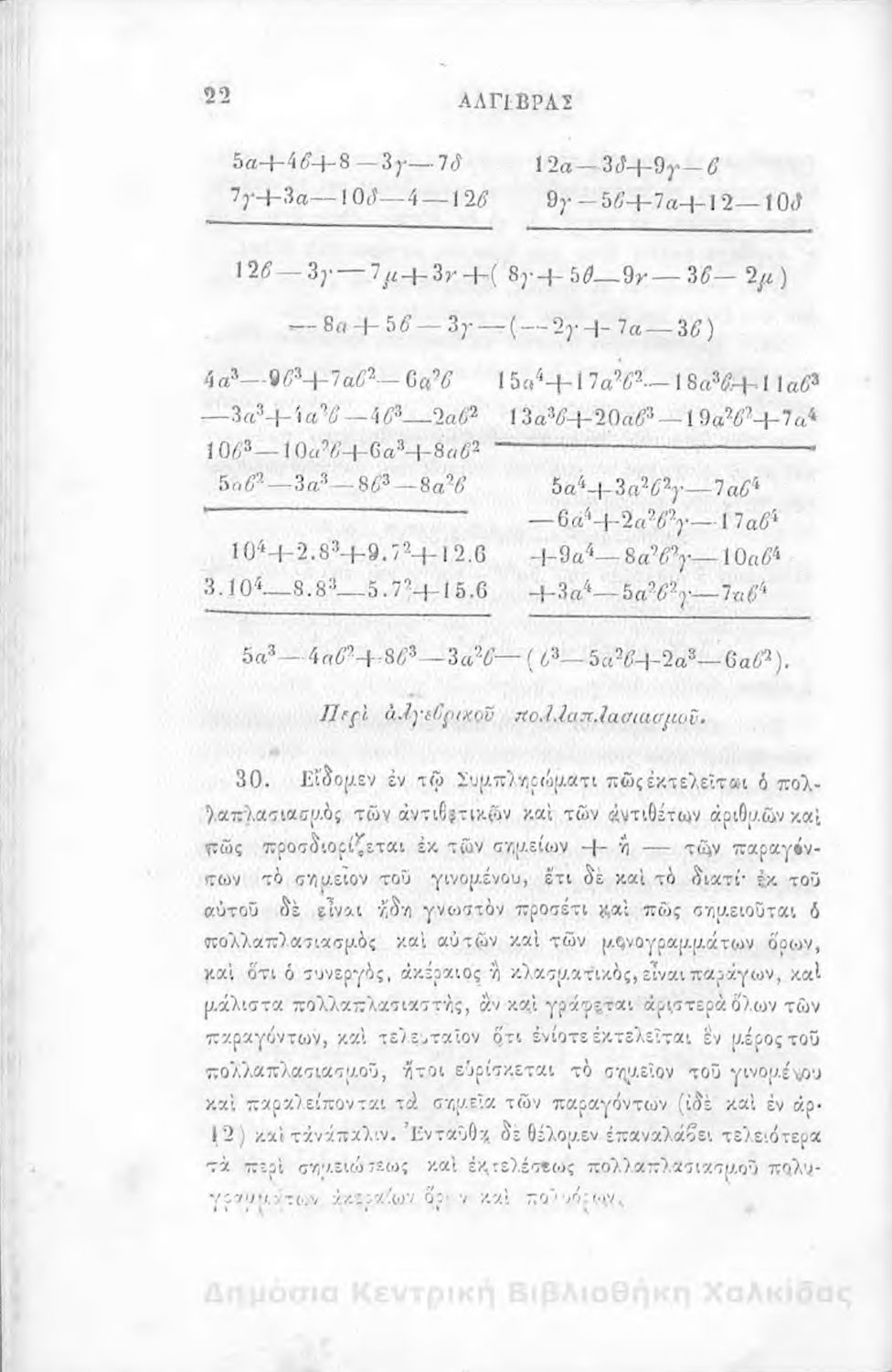 Άλγεβρας μαθήματα : τα του πρώτου και του δευτέρου βαθμού. Προς χρήσιν των μαθητευόντων εν τοις γυμνασίοις της Ελλάδος