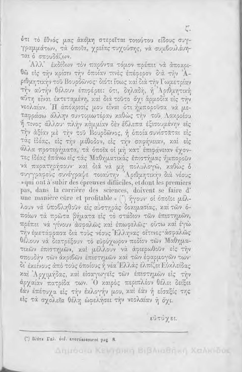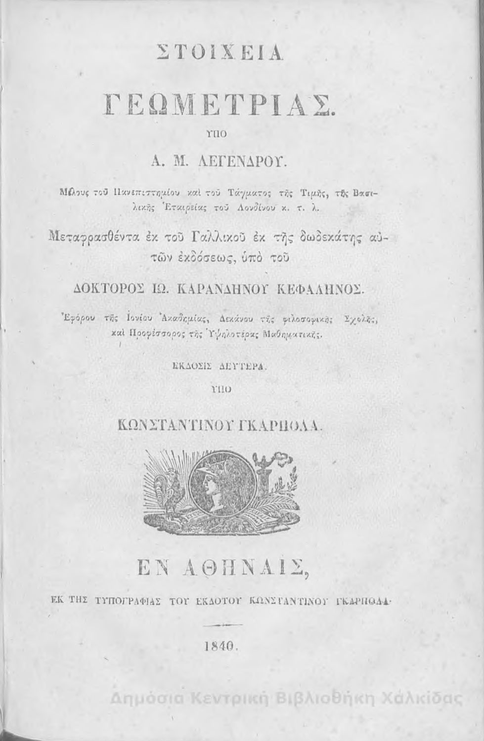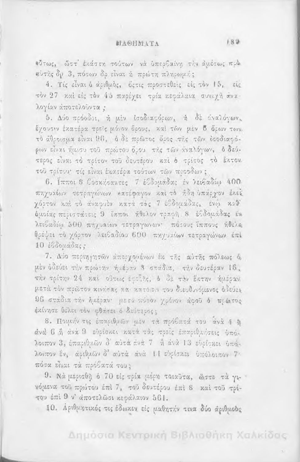 Τίτλος: Άλγεβρας μαθήματα : τα του πρώτου και του δευτέρου βαθμού. Προς χρήσιν των μαθητευόντων εν τοις γυμνασίοις της Ελλάδος