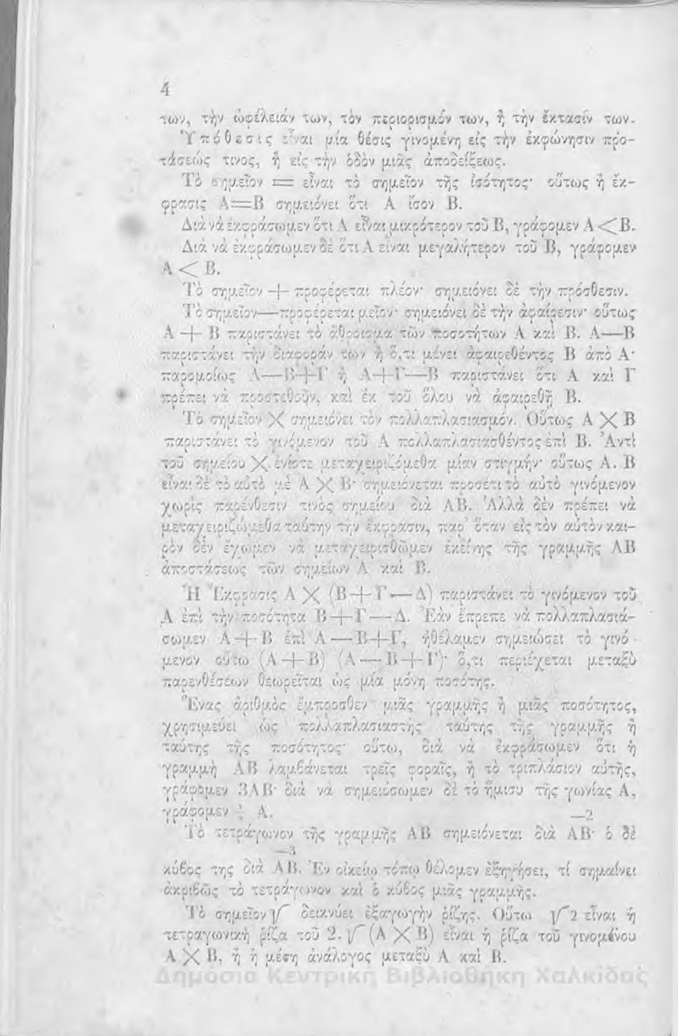 Άλγεβρας μαθήματα : τα του πρώτου και του δευτέρου βαθμού. Προς χρήσιν των μαθητευόντων εν τοις γυμνασίοις της Ελλάδος