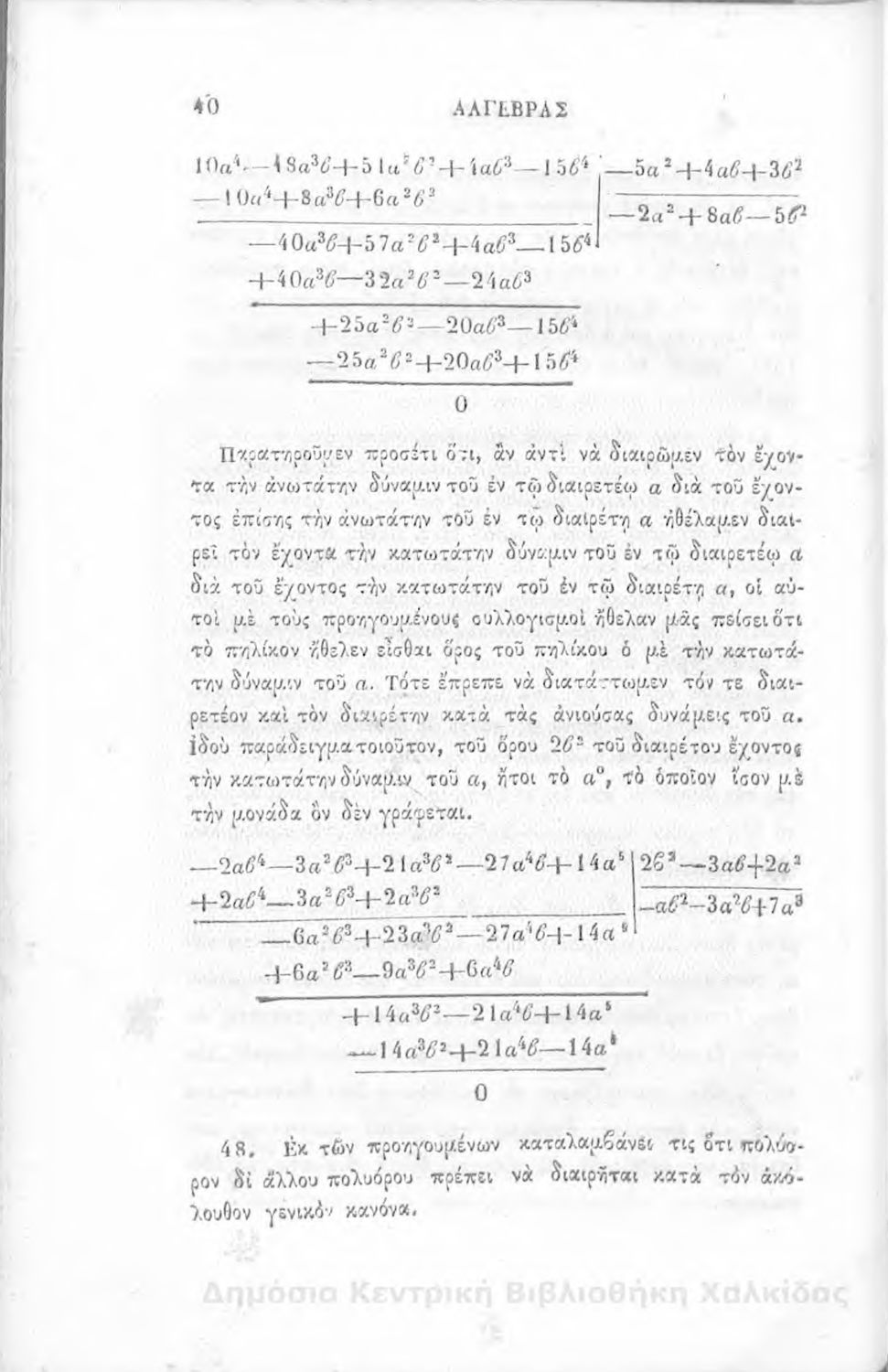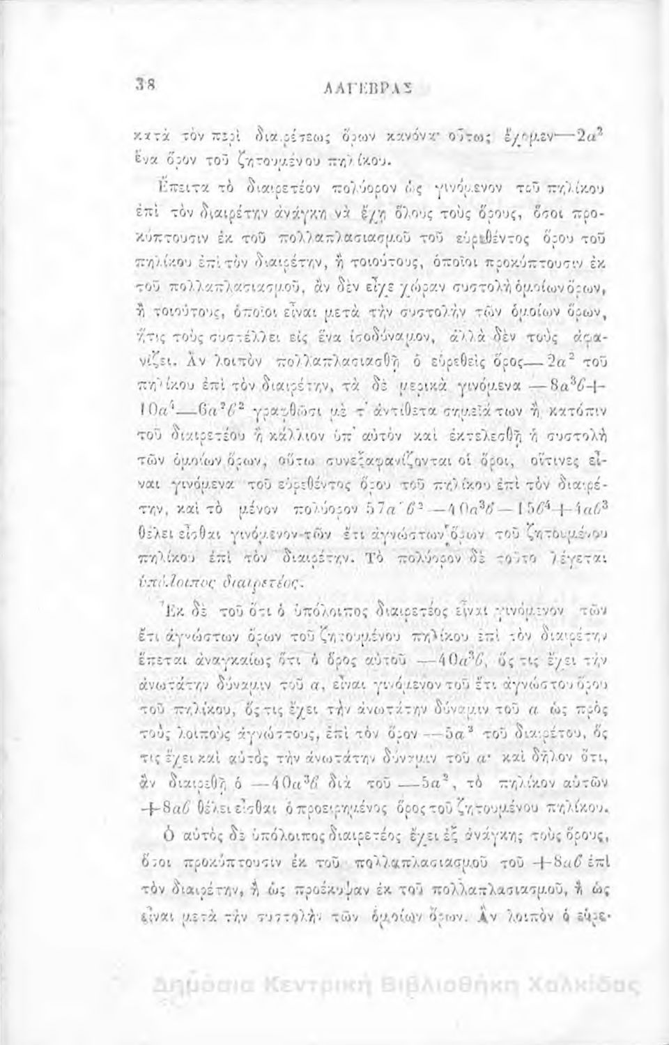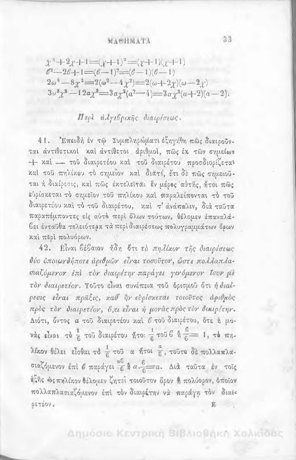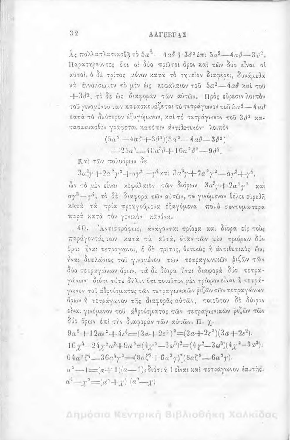 Άλγεβρας μαθήματα : τα του πρώτου και του δευτέρου βαθμού. Προς χρήσιν των μαθητευόντων εν τοις γυμνασίοις της Ελλάδος