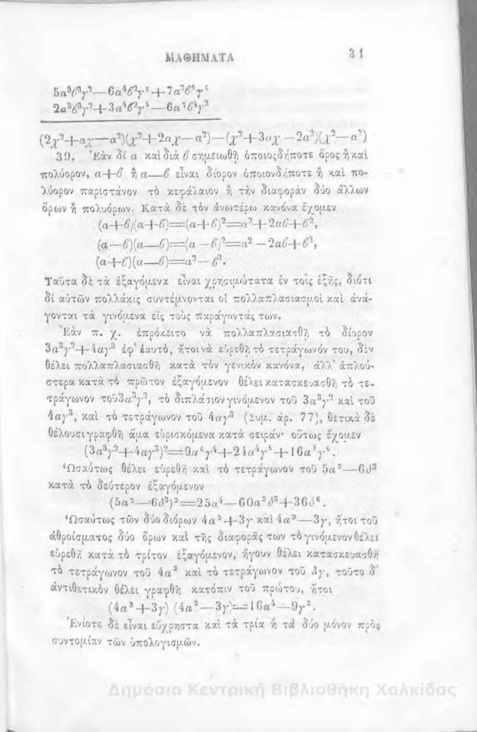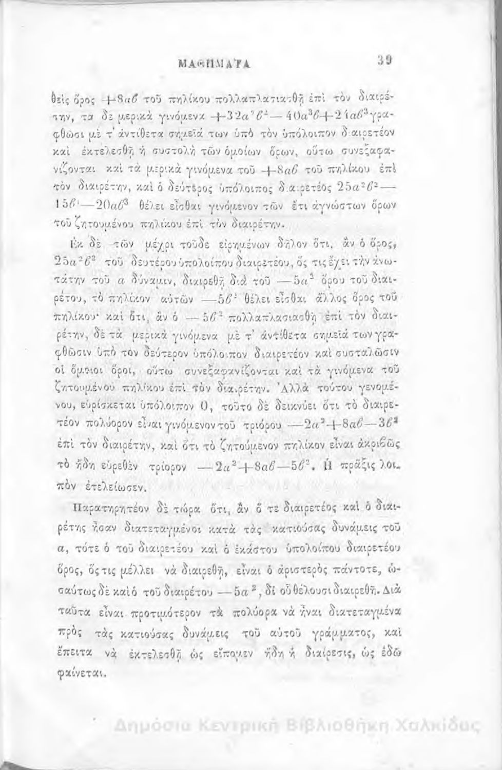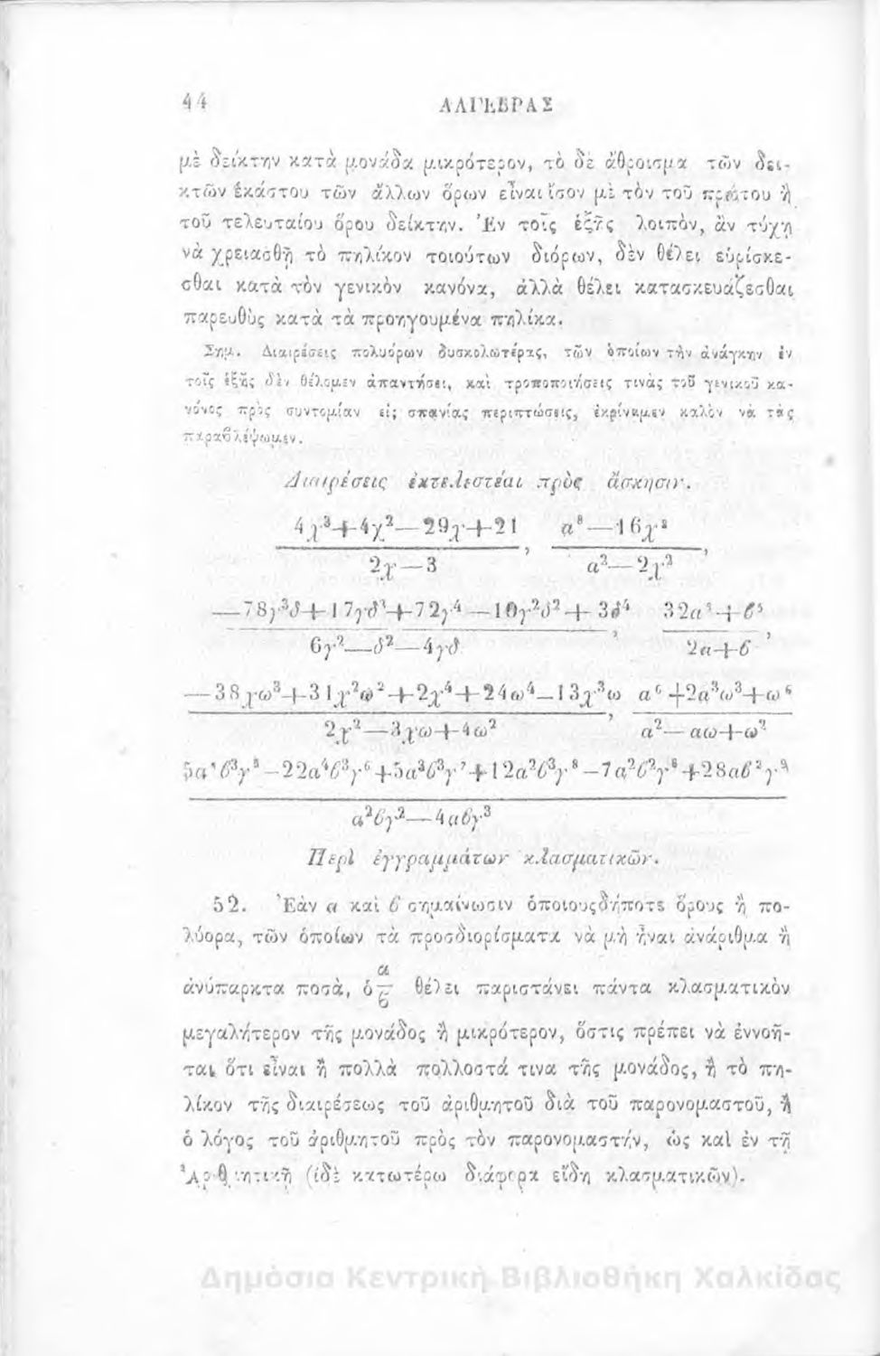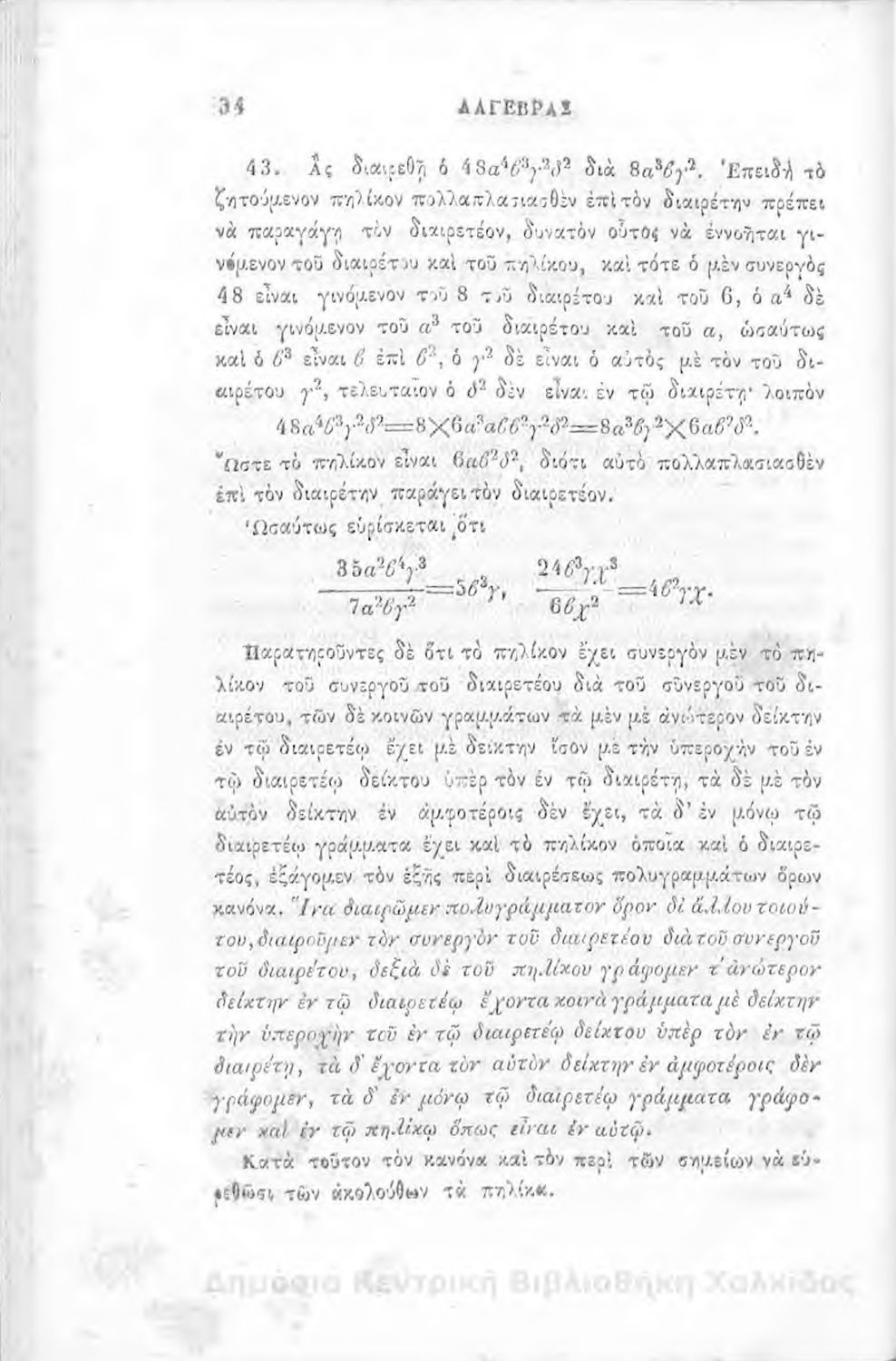 Άλγεβρας μαθήματα : τα του πρώτου και του δευτέρου βαθμού. Προς χρήσιν των μαθητευόντων εν τοις γυμνασίοις της Ελλάδος