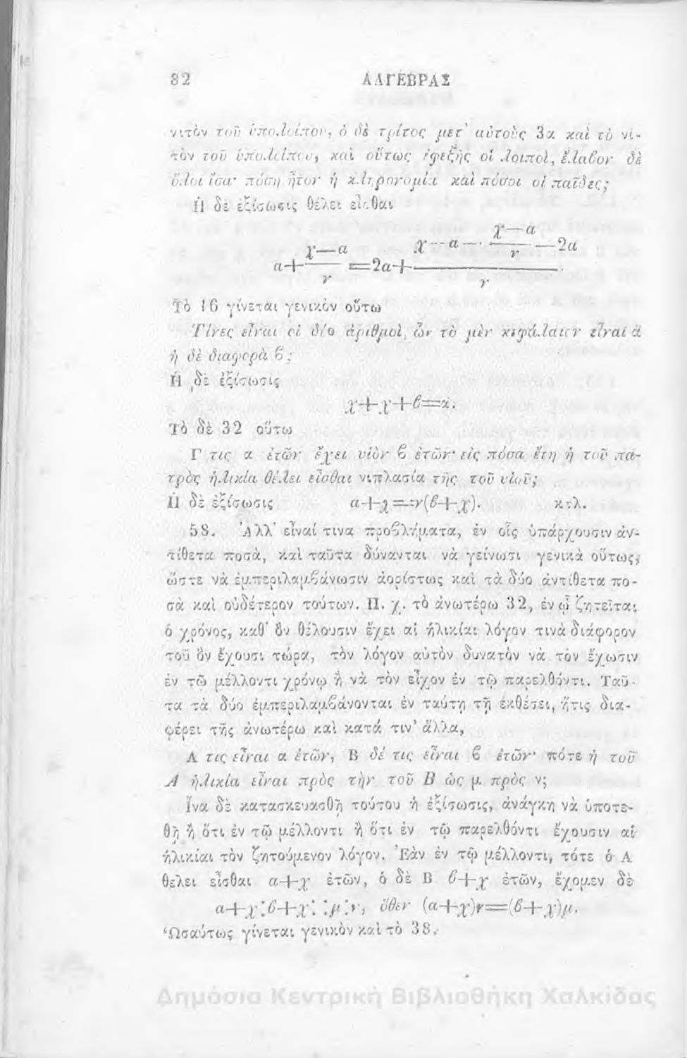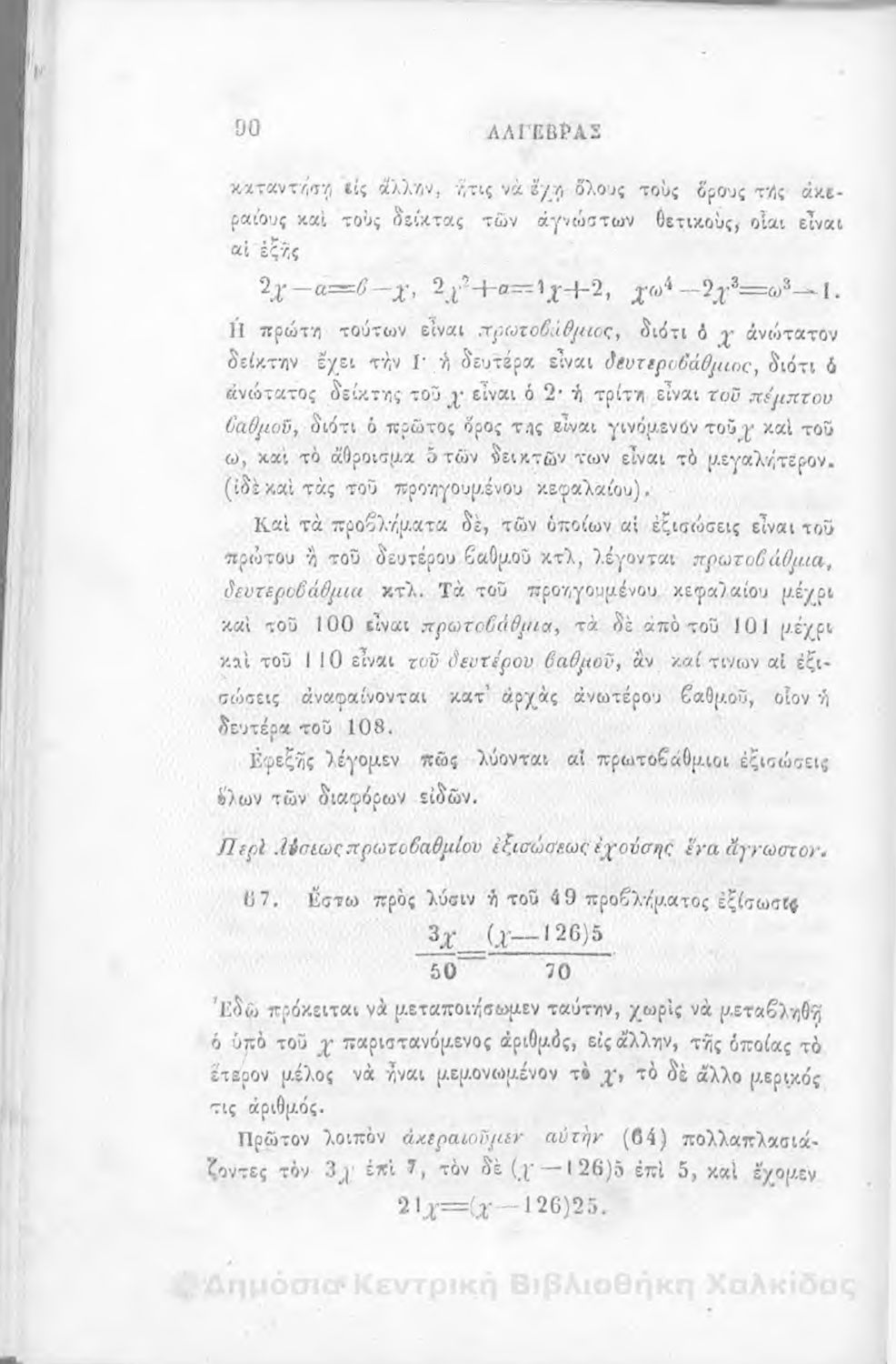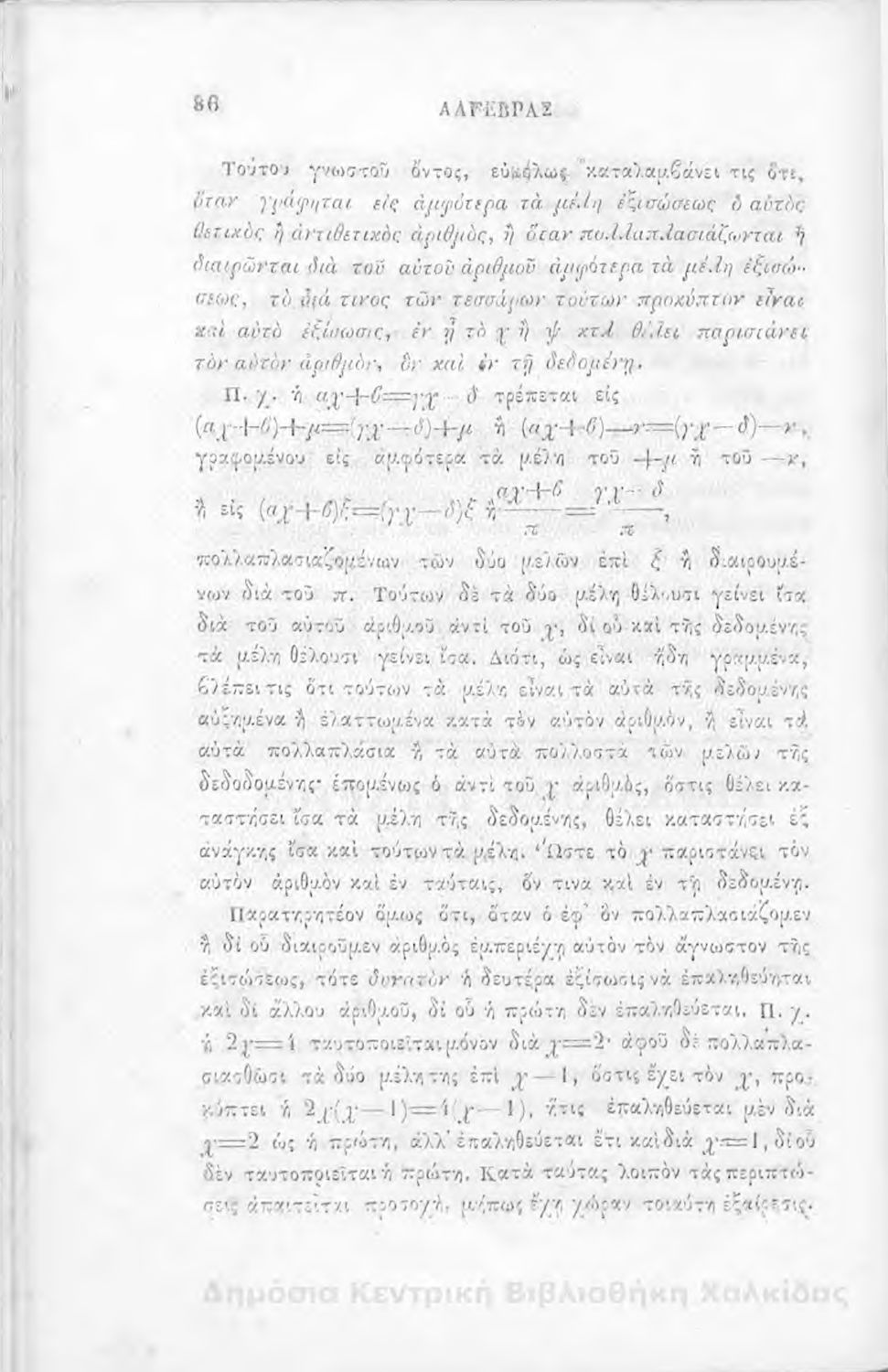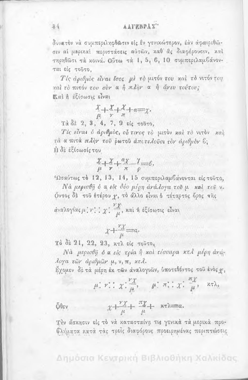 Άλγεβρας μαθήματα : τα του πρώτου και του δευτέρου βαθμού. Προς χρήσιν των μαθητευόντων εν τοις γυμνασίοις της Ελλάδος