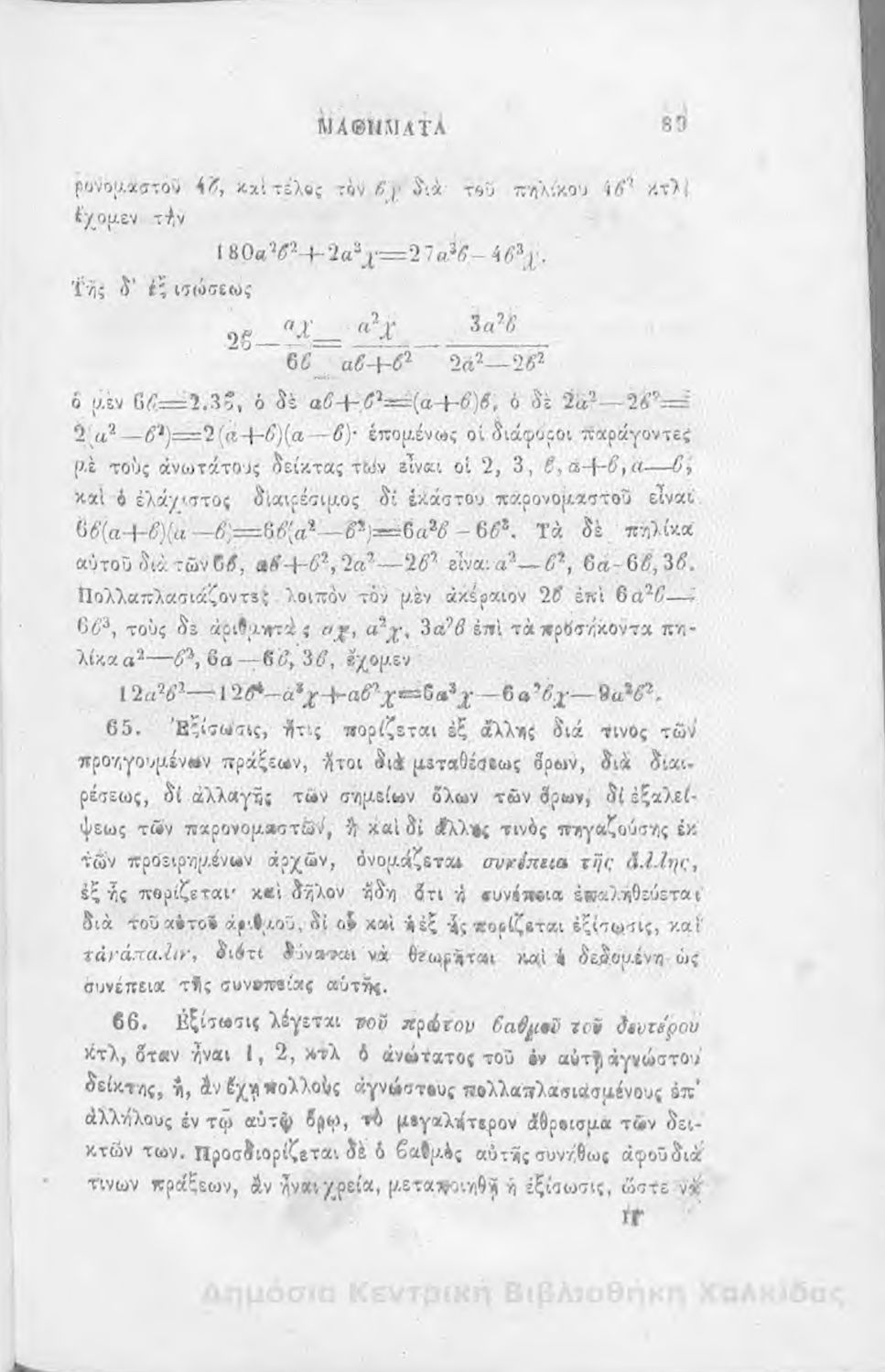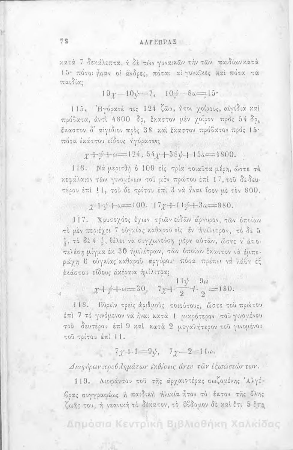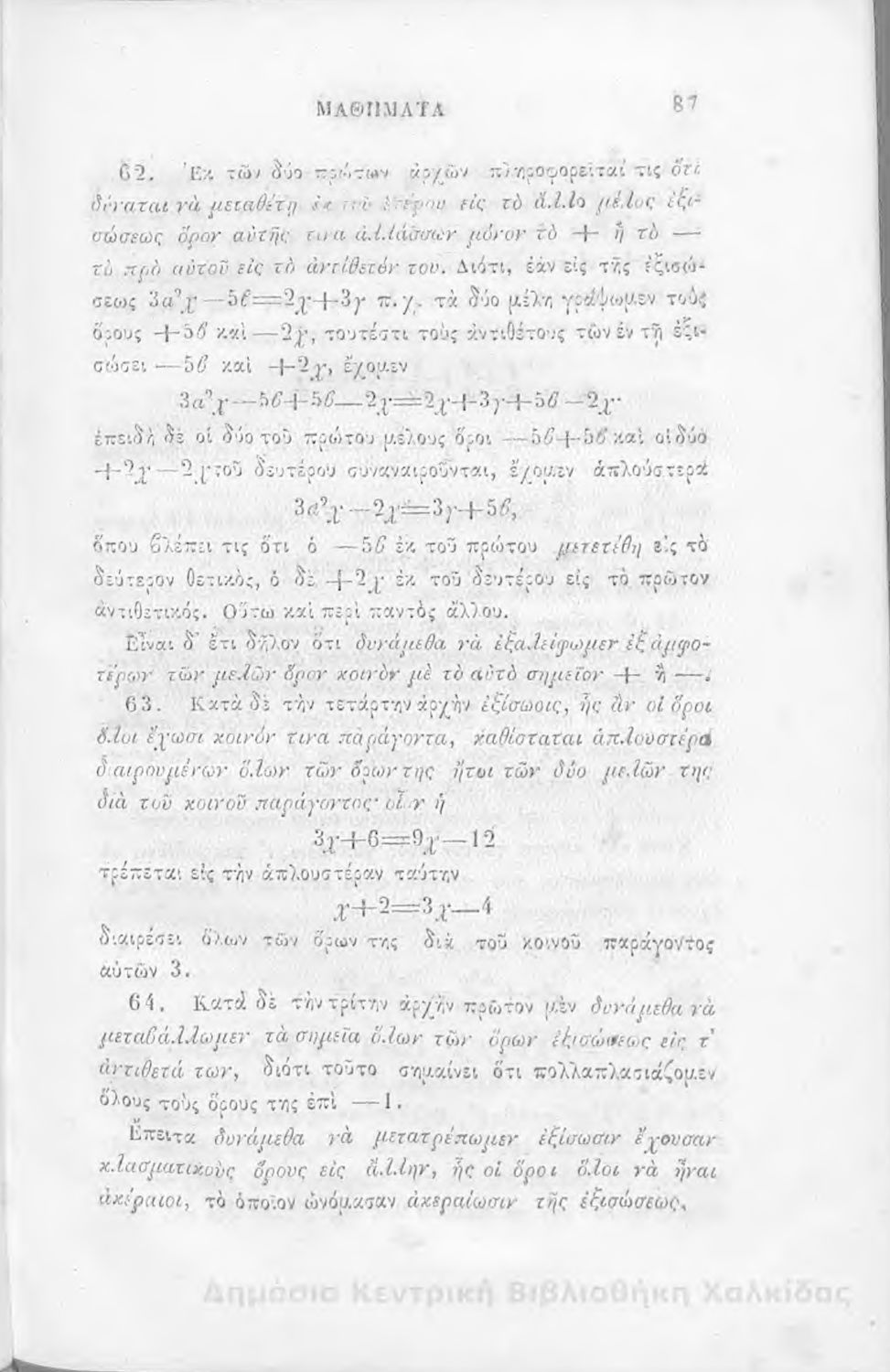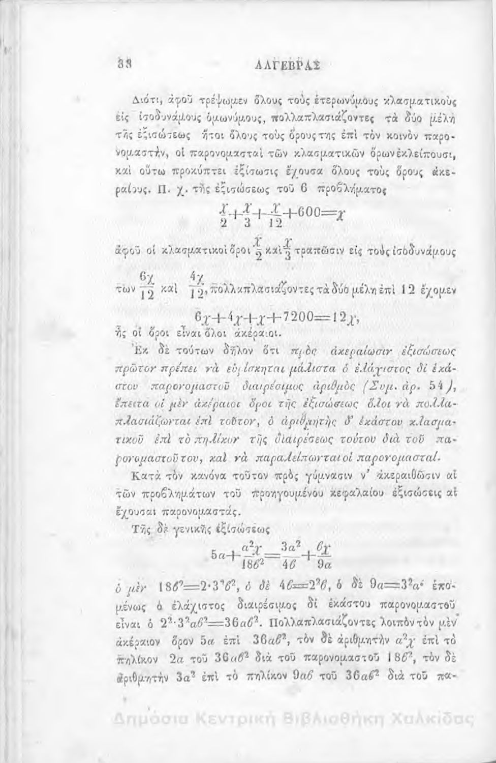 Άλγεβρας μαθήματα : τα του πρώτου και του δευτέρου βαθμού. Προς χρήσιν των μαθητευόντων εν τοις γυμνασίοις της Ελλάδος