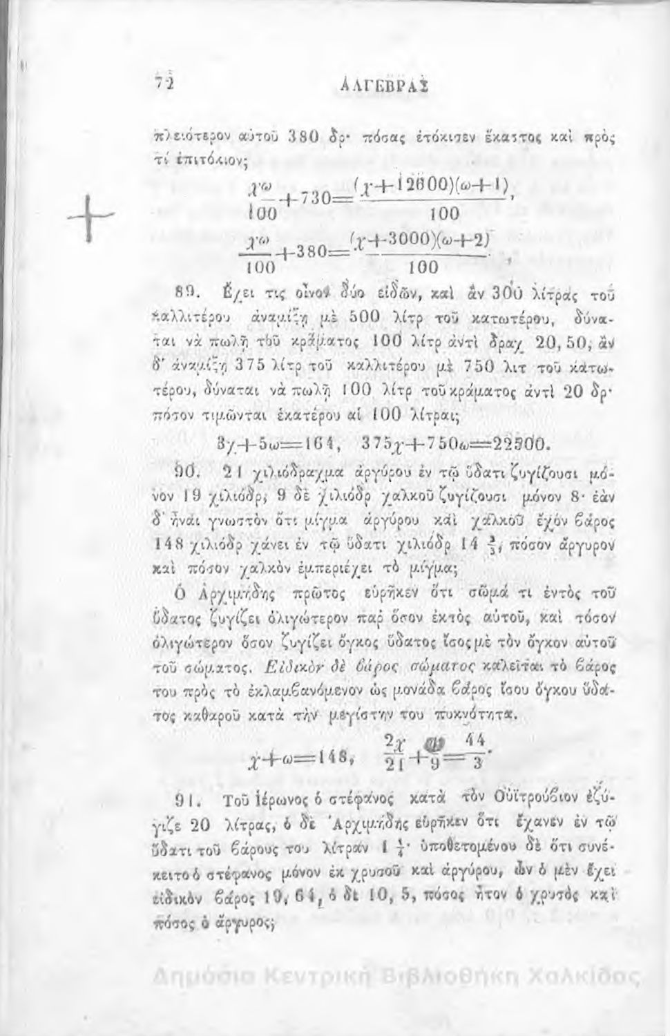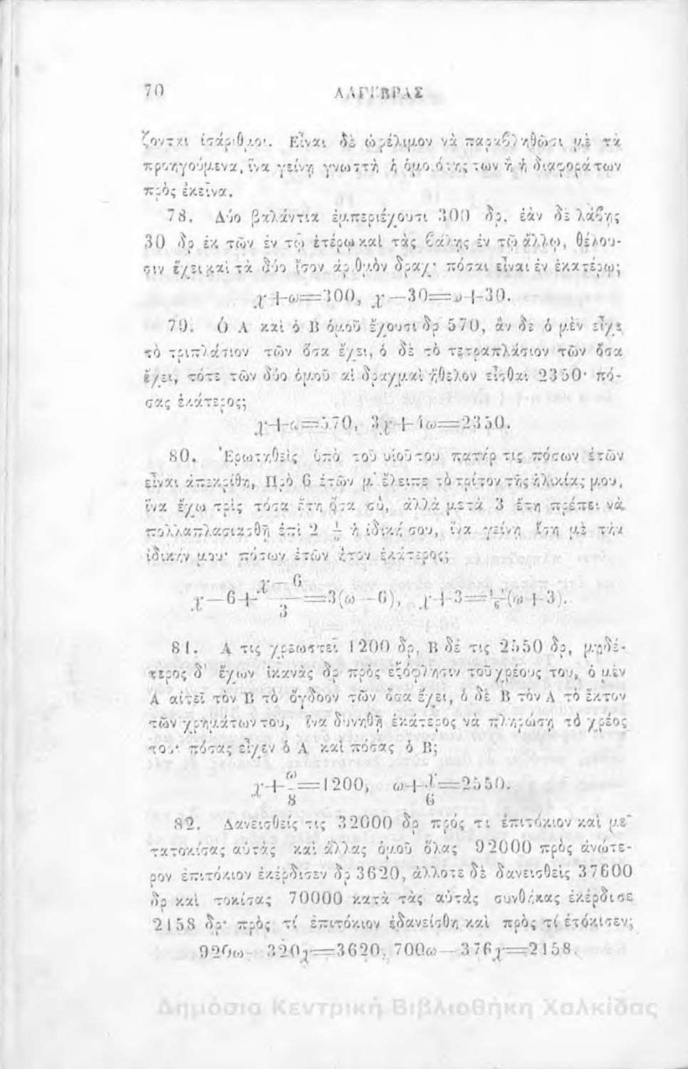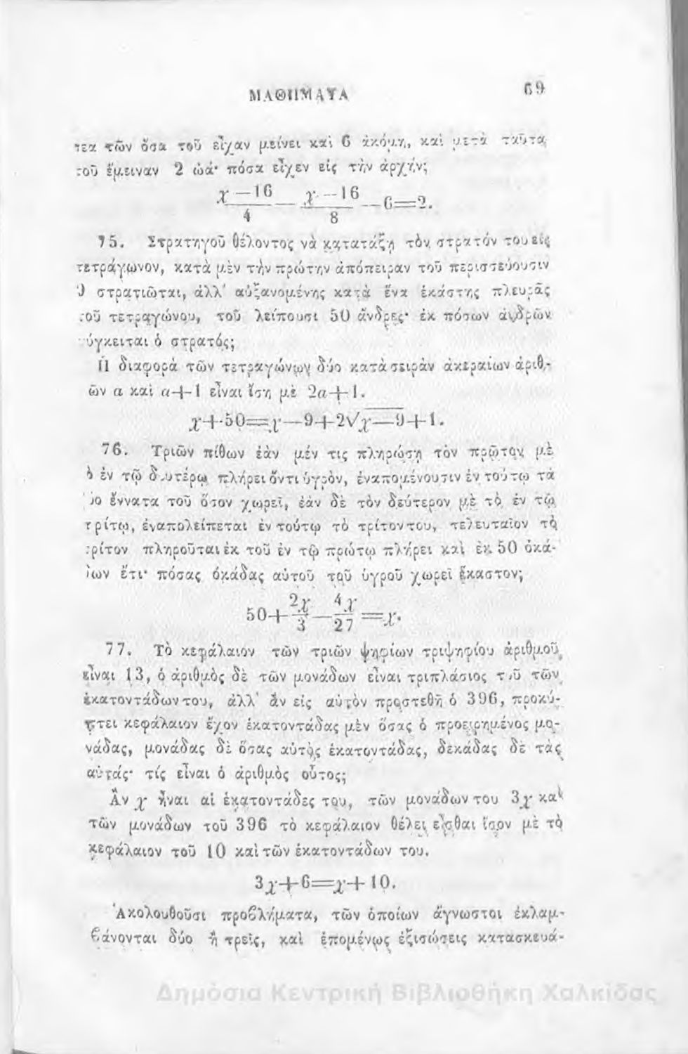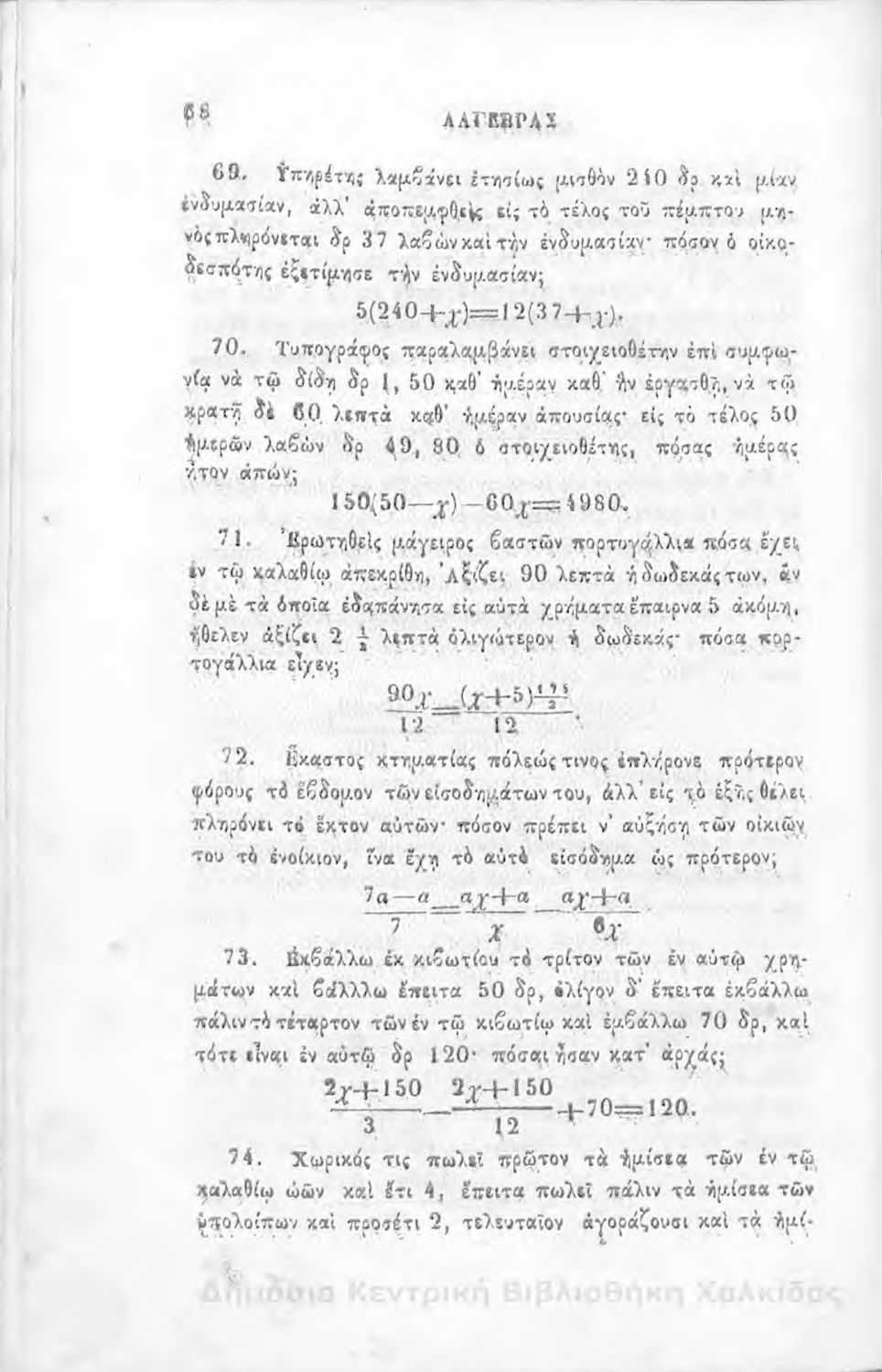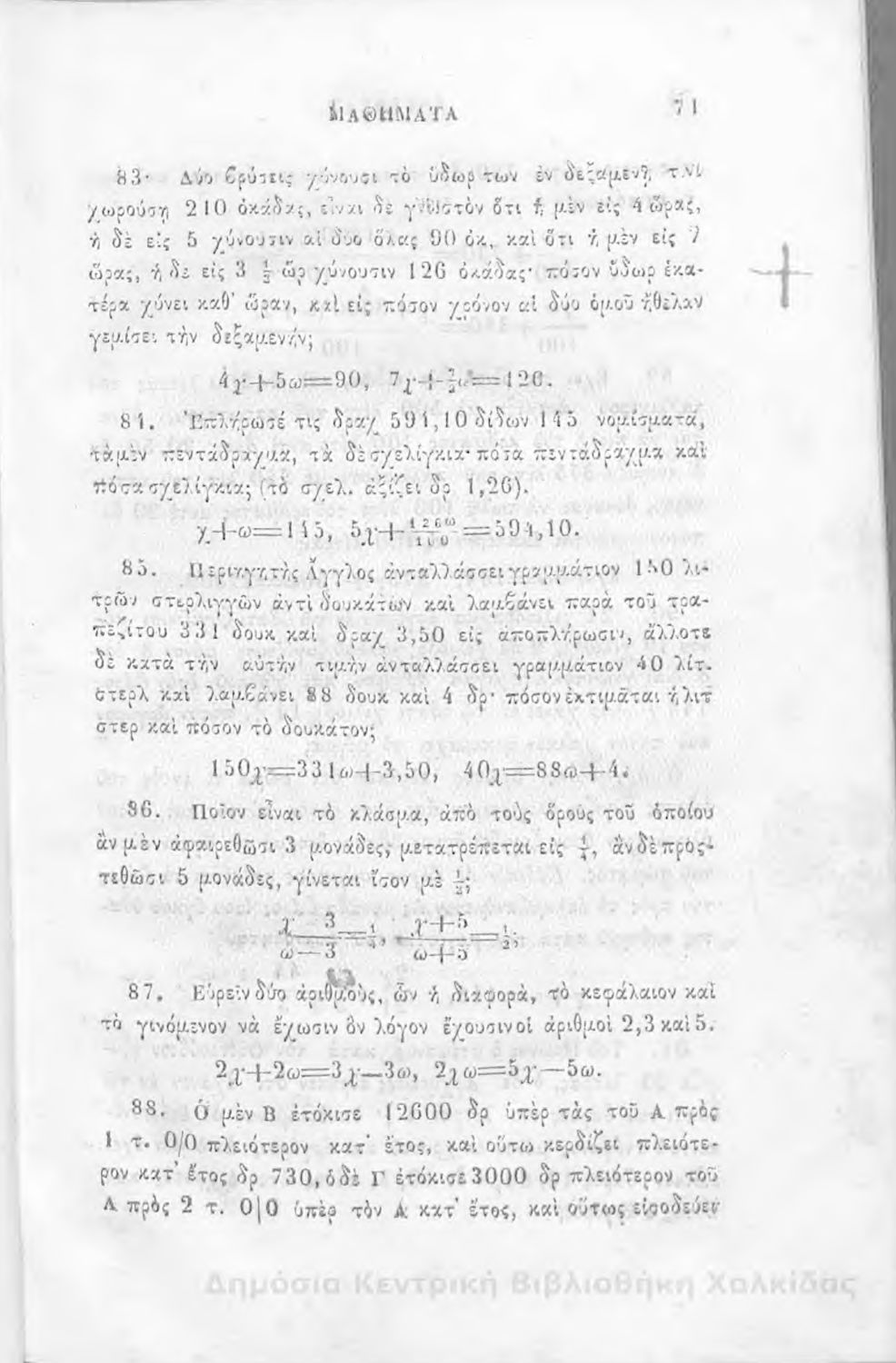 Άλγεβρας μαθήματα : τα του πρώτου και του δευτέρου βαθμού. Προς χρήσιν των μαθητευόντων εν τοις γυμνασίοις της Ελλάδος