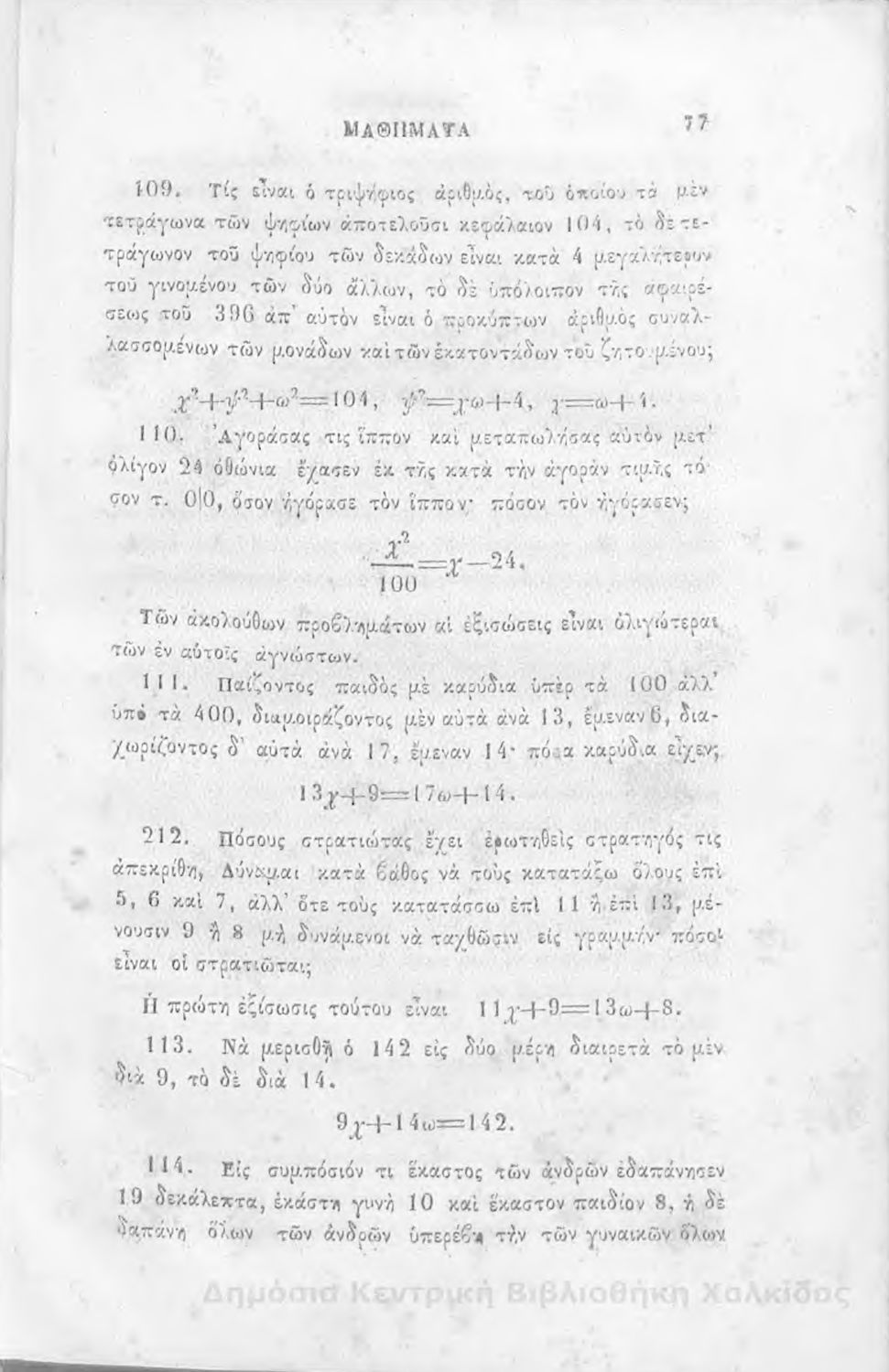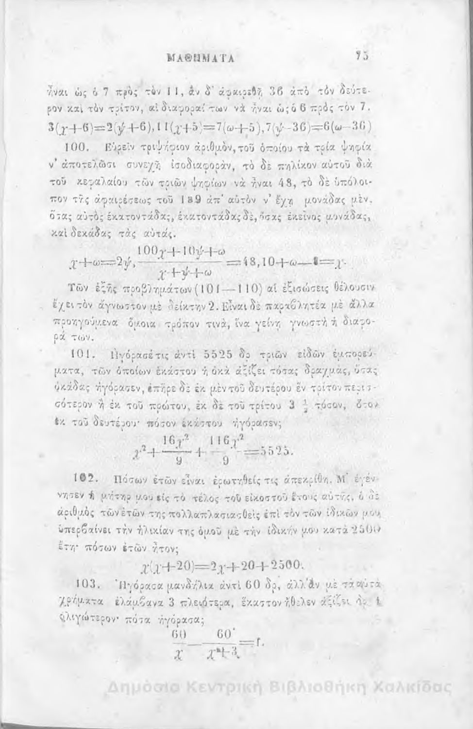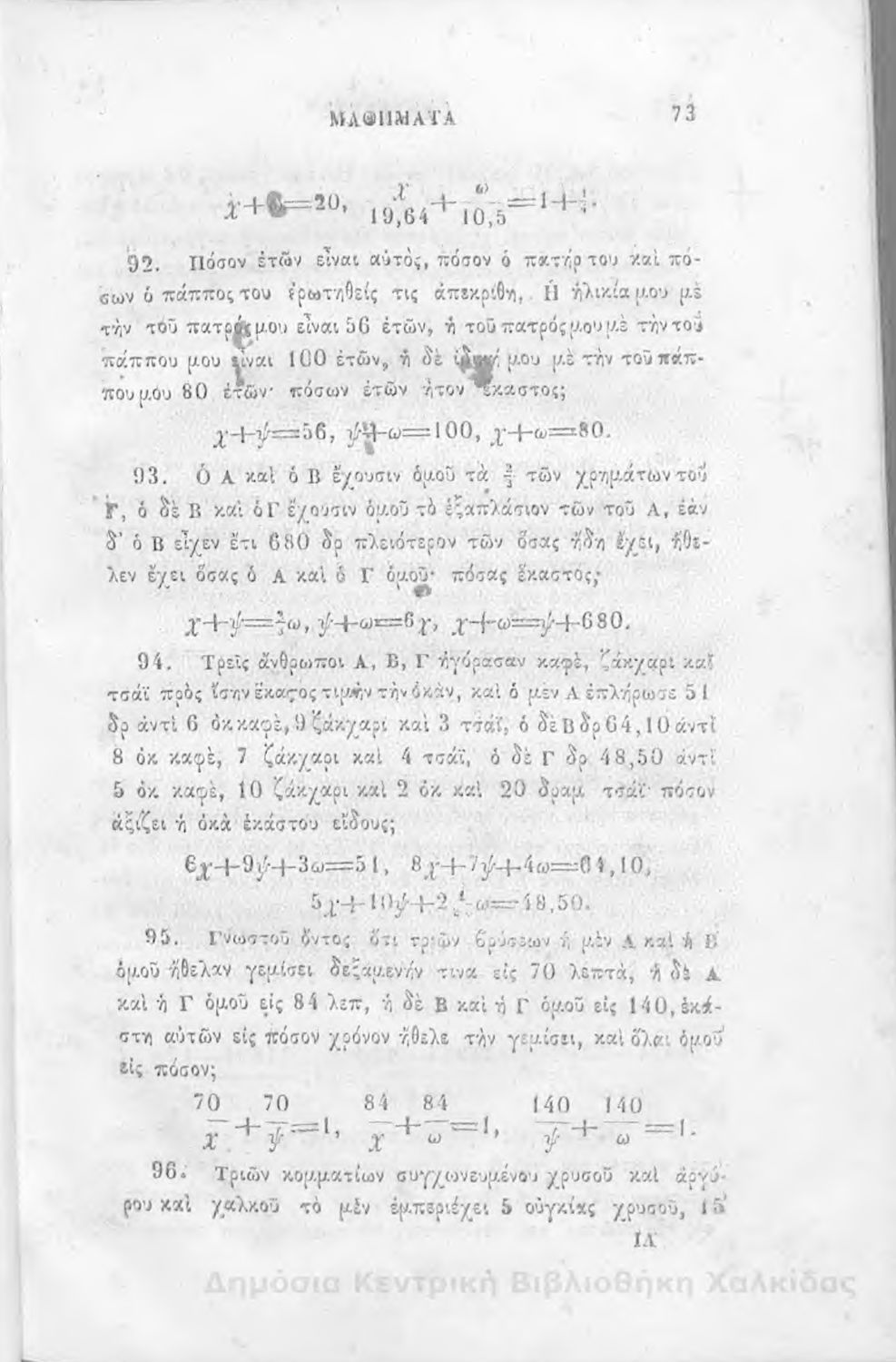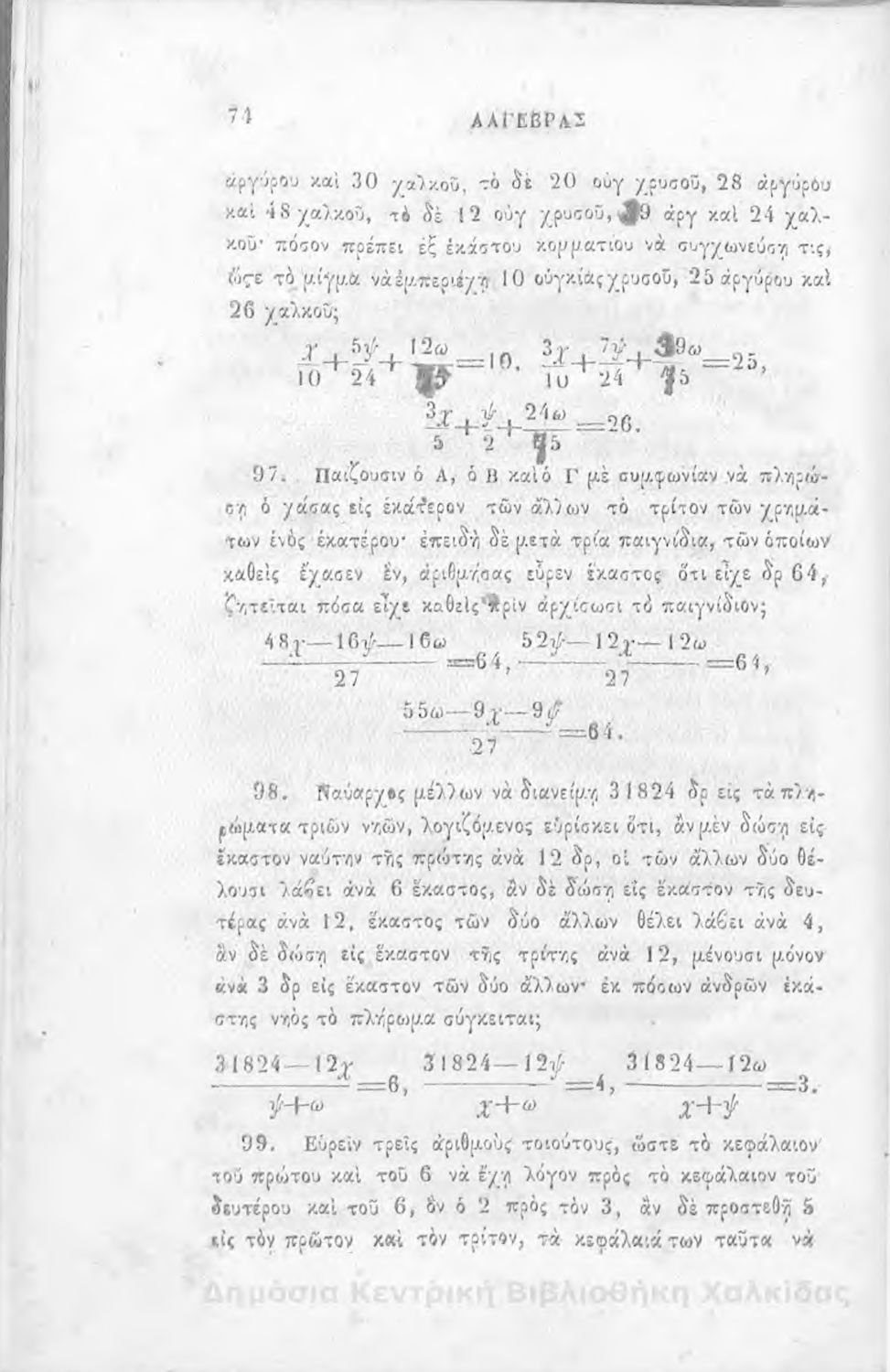 Άλγεβρας μαθήματα : τα του πρώτου και του δευτέρου βαθμού. Προς χρήσιν των μαθητευόντων εν τοις γυμνασίοις της Ελλάδος