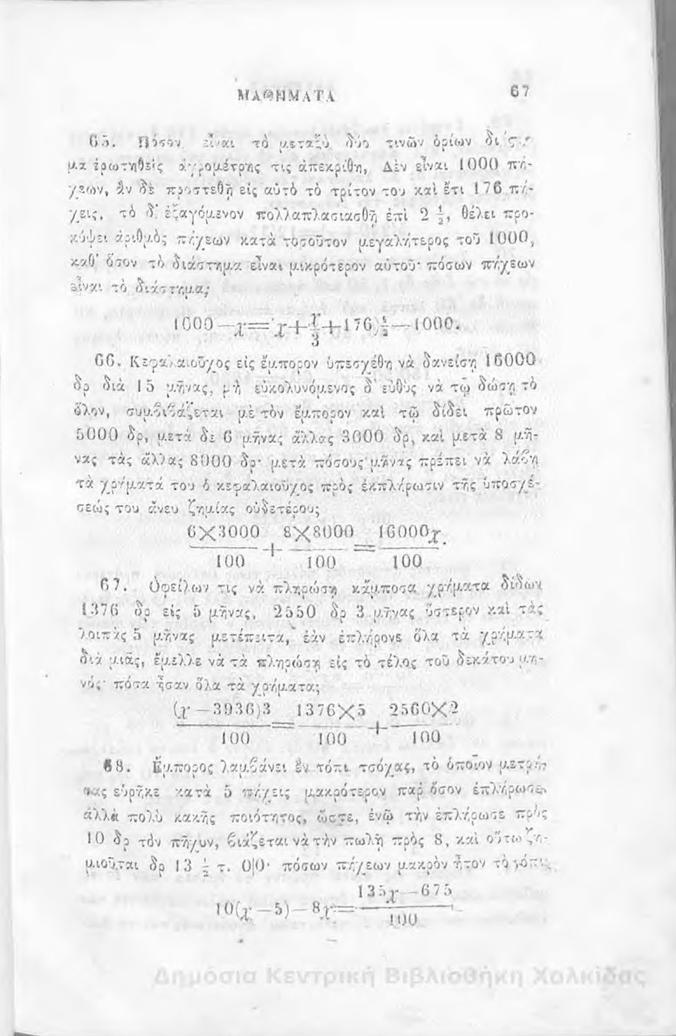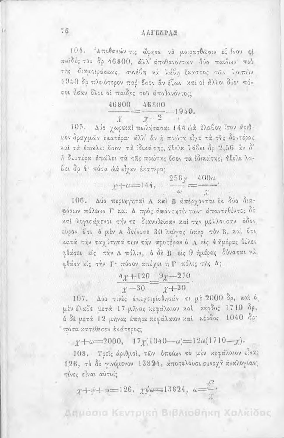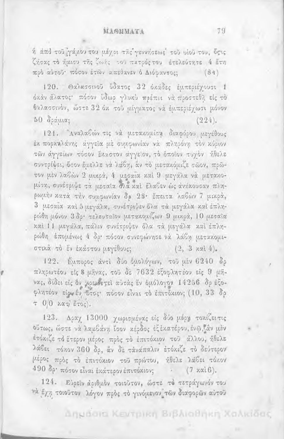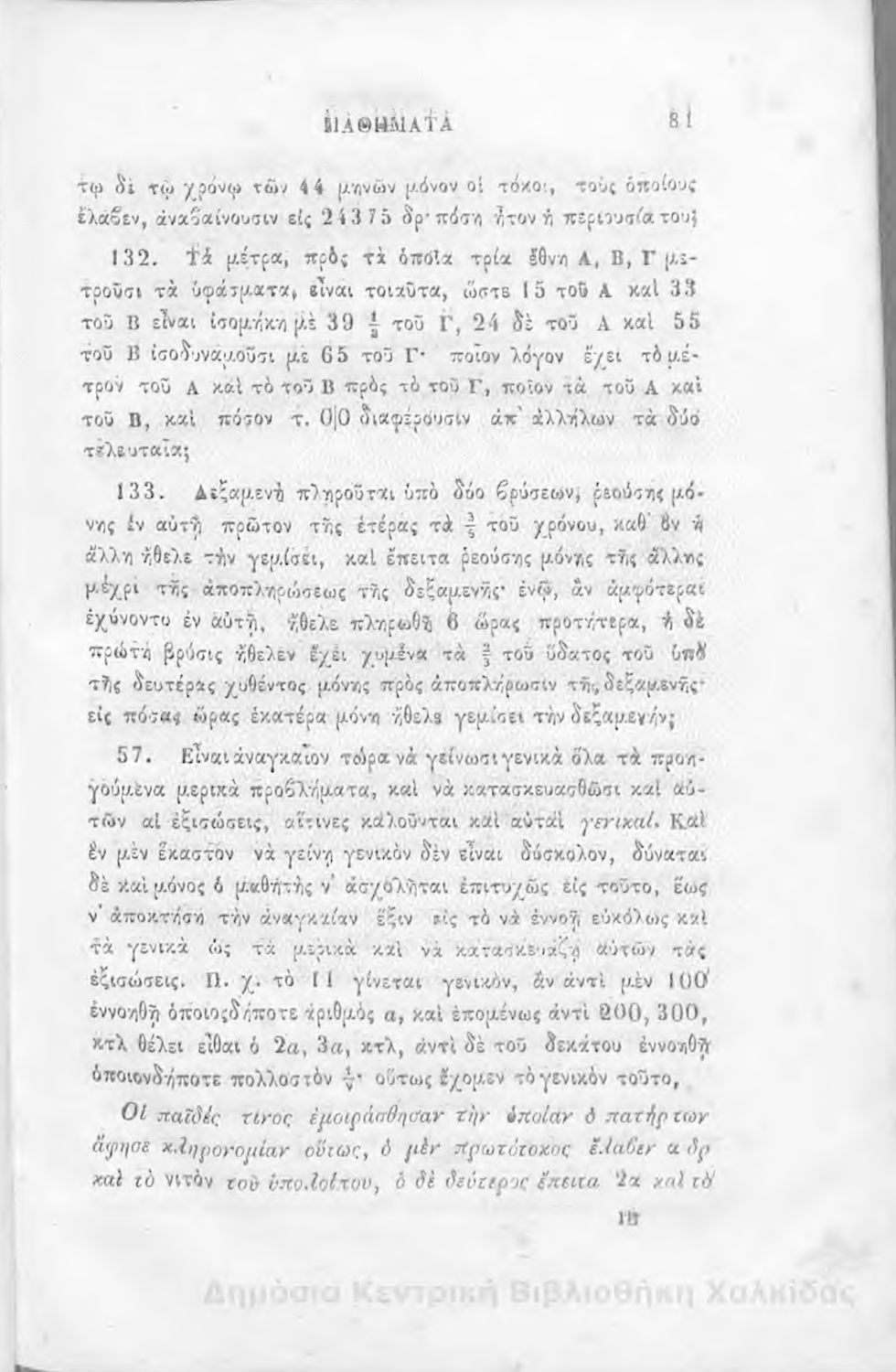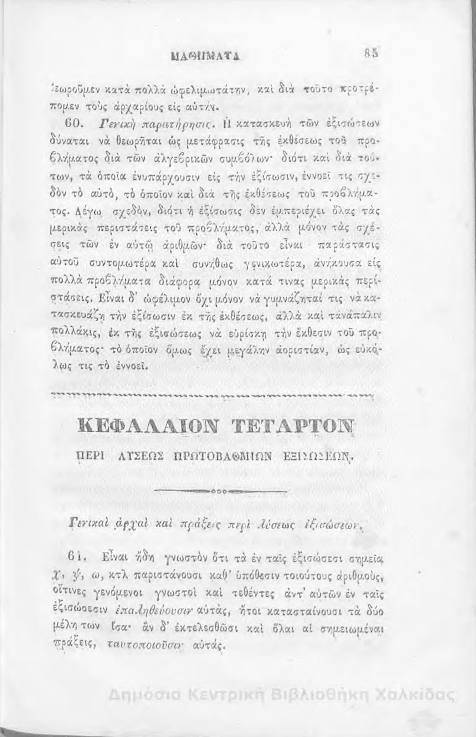 Τίτλος: Άλγεβρας μαθήματα : τα του πρώτου και του δευτέρου βαθμού. Προς χρήσιν των μαθητευόντων εν τοις γυμνασίοις της Ελλάδος