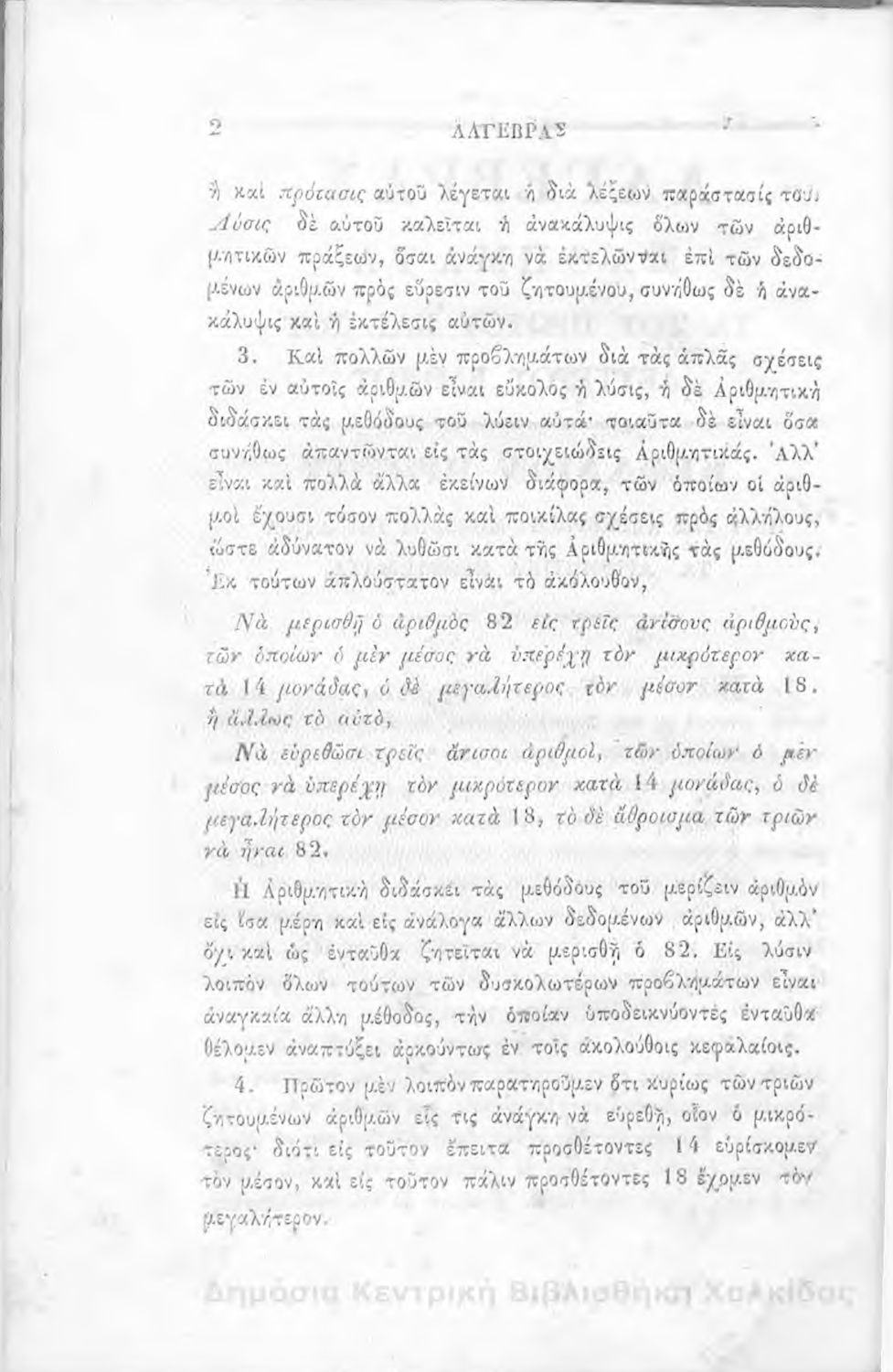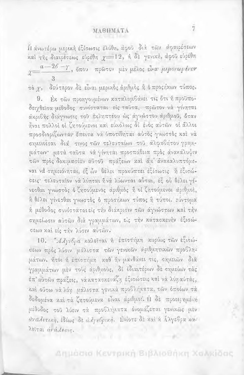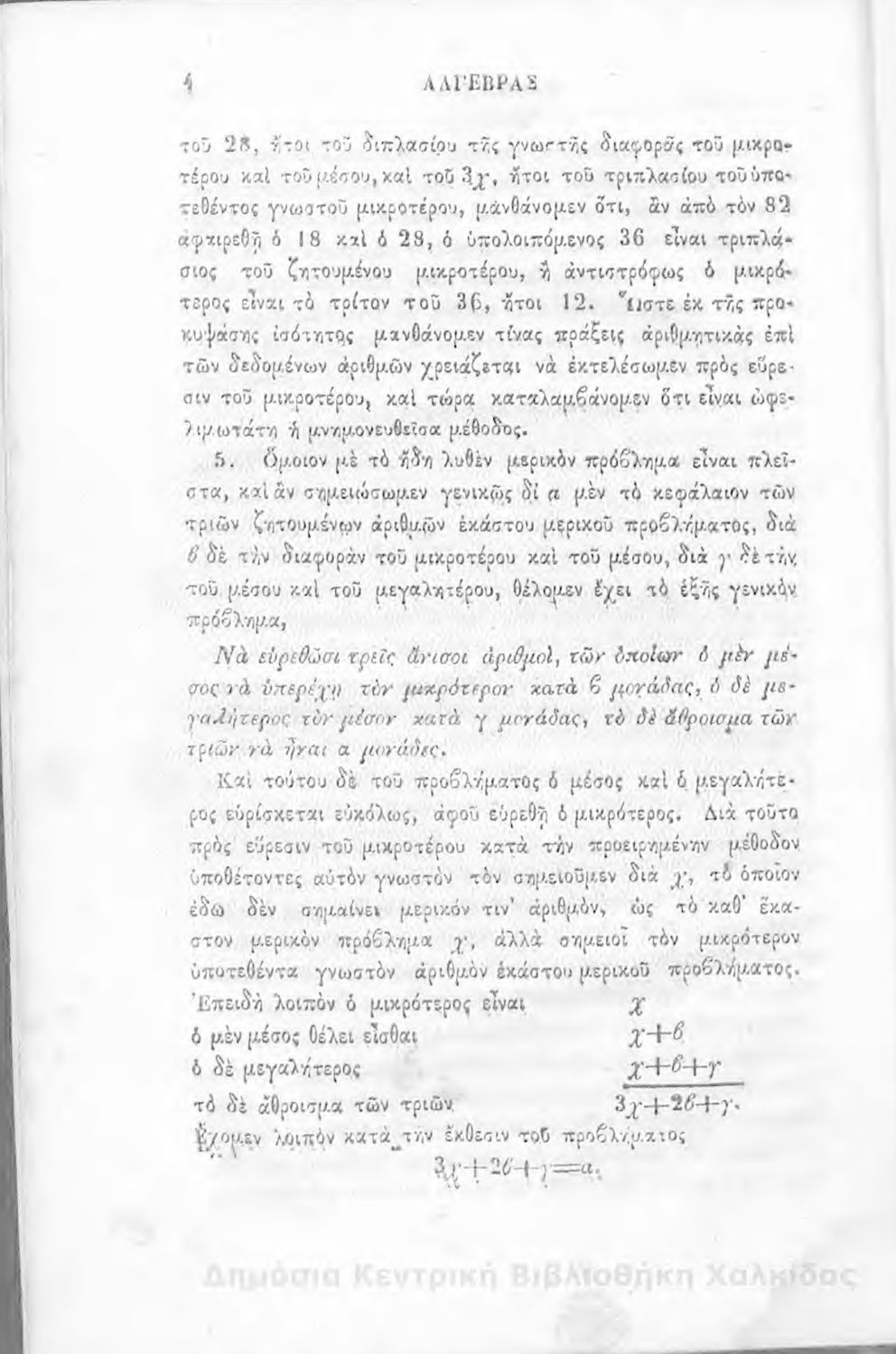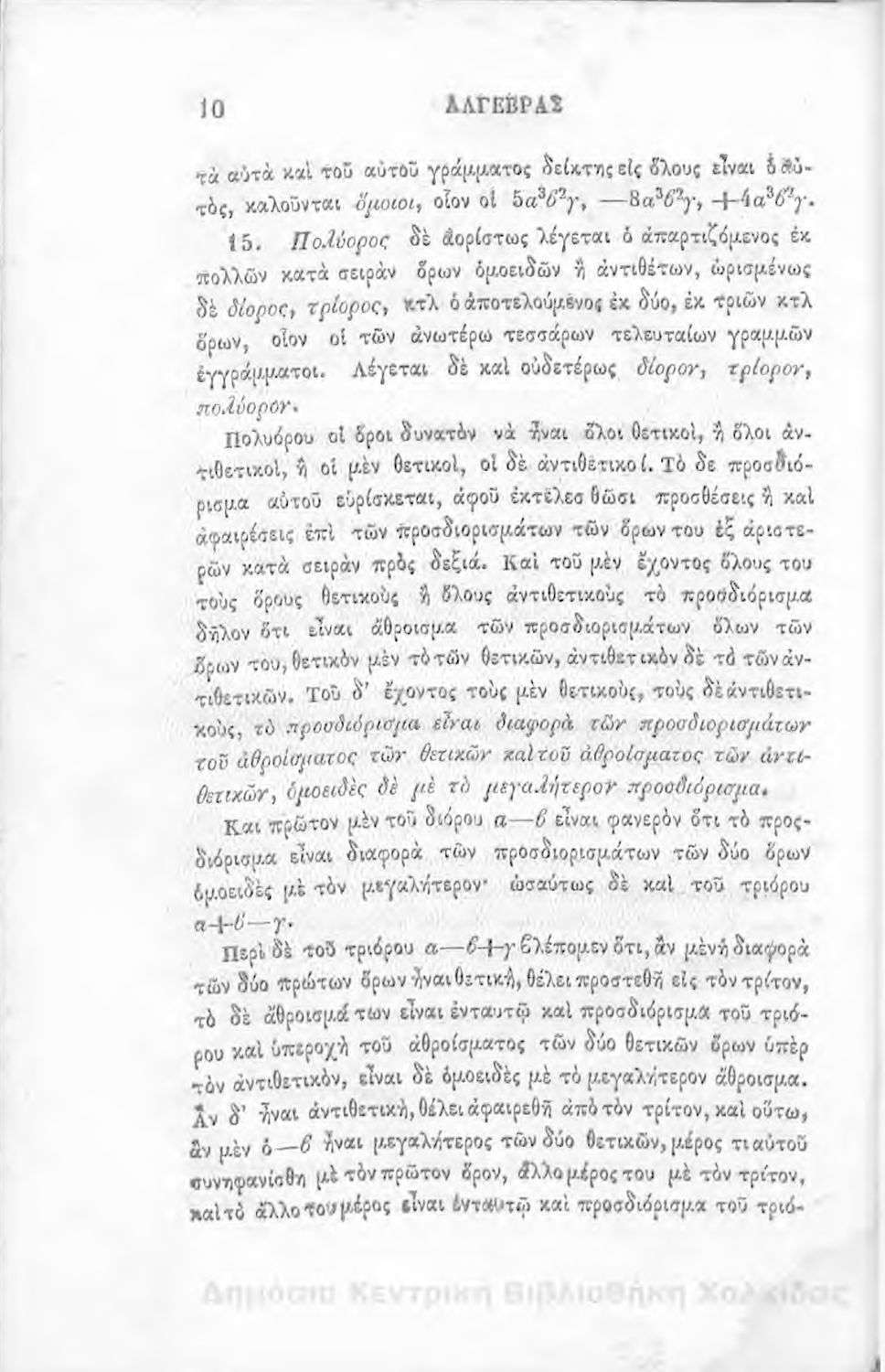 Βαθμίδα εκπαίδευσης: Δευτεροβάθμια Μάθημα: Άλγεβρα Γλώσσα: Καθαρεύουσα |