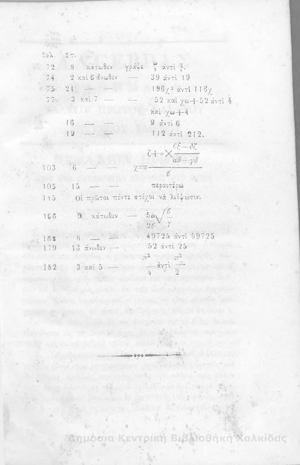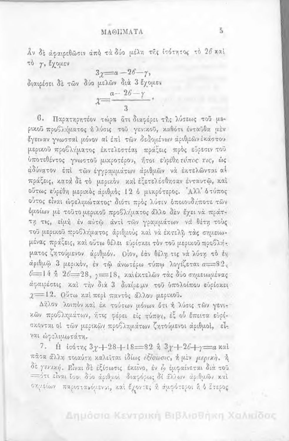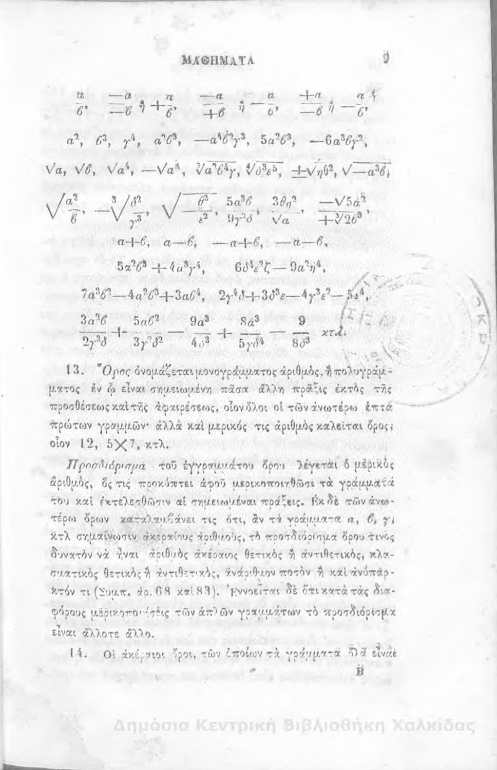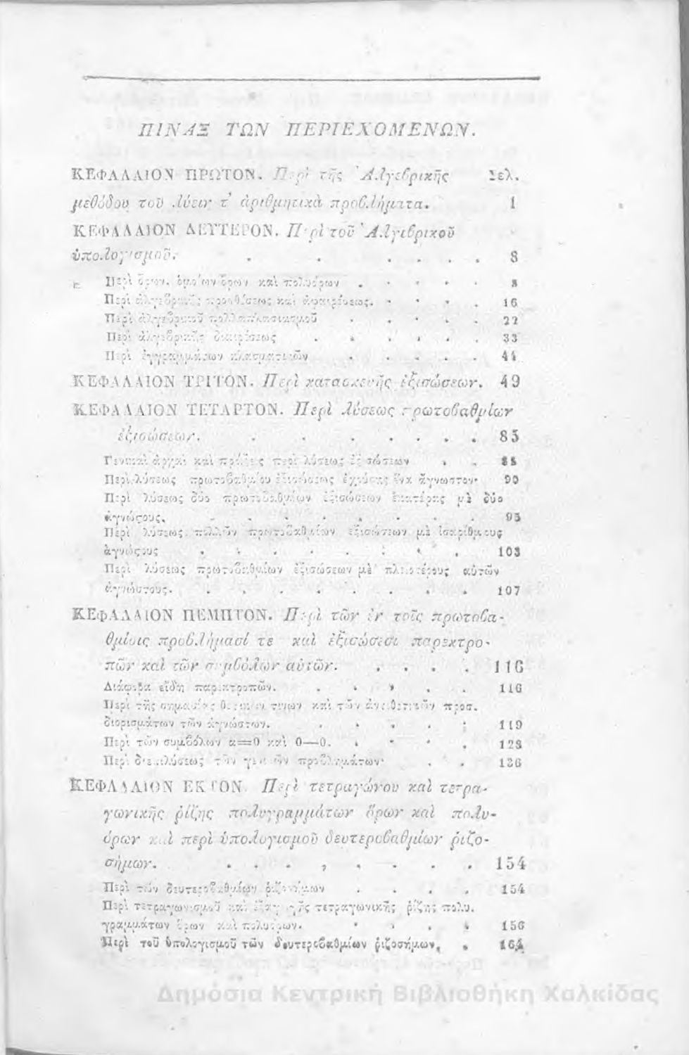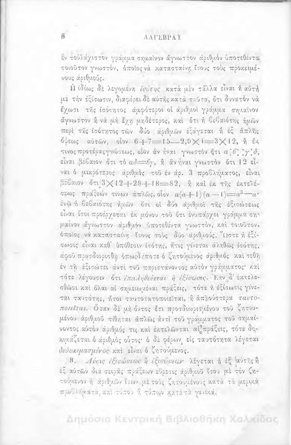 Βαθμίδα εκπαίδευσης: Δευτεροβάθμια Μάθημα: Άλγεβρα Γλώσσα: Καθαρεύουσα |