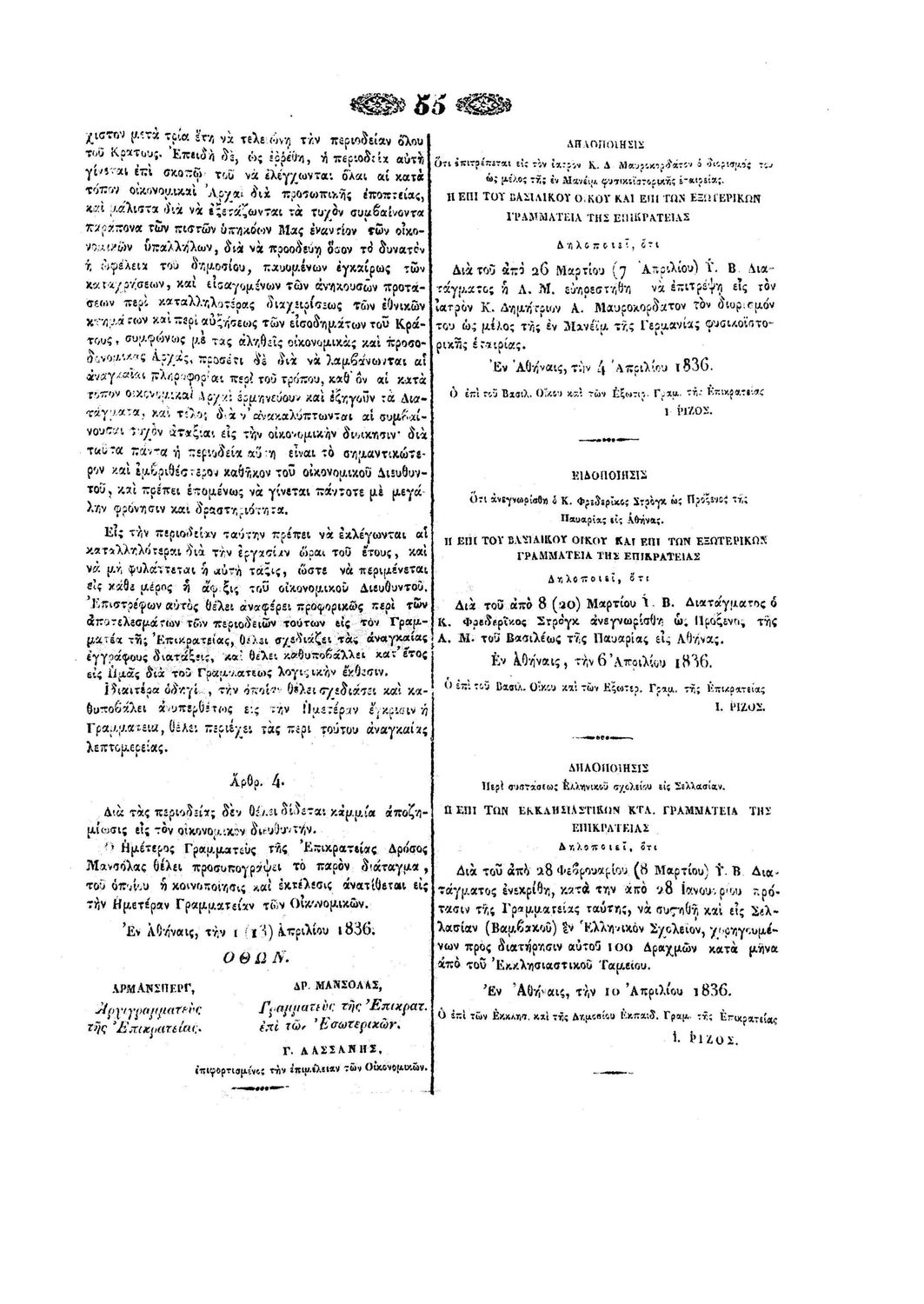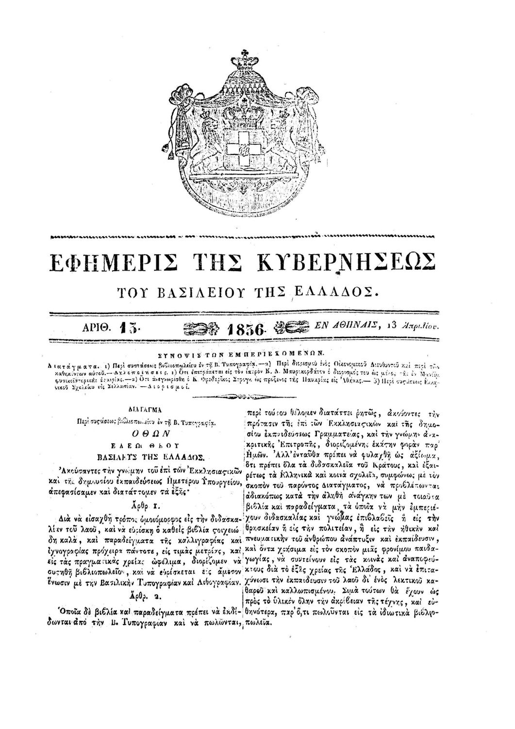 Περί συστάσεως βιβλιοπωλείου εν τη βασιλική τυπογραφία