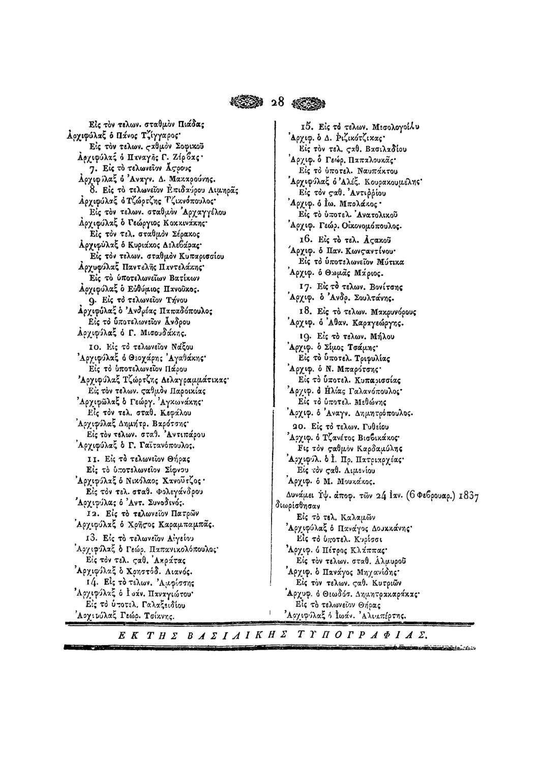 Κωδικός αναγνώρισης: 1837-007A Τίτλος: ΦΕΚ 7/20.02.1837, Τεύχος Α Μέγεθος και υπόστρωμα: Φεκ προγραμμάτων σπουδών, 2 σελίδες. |