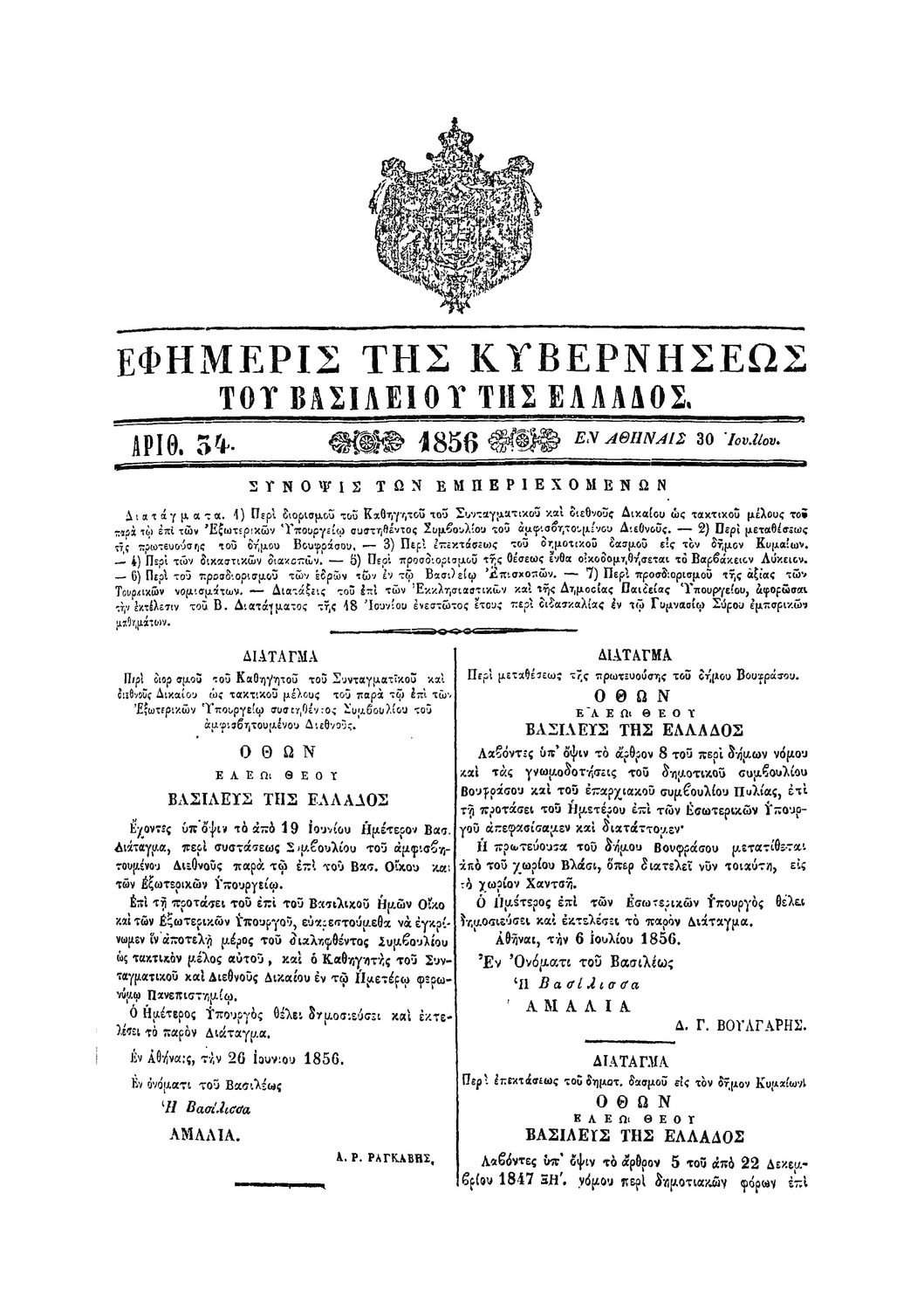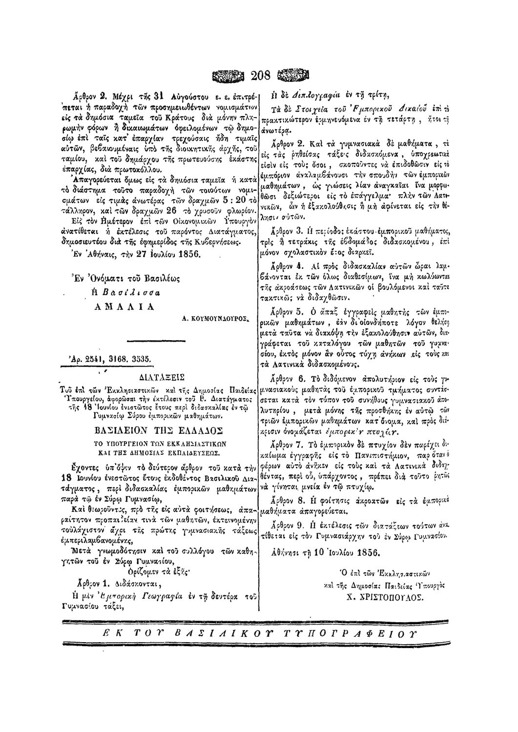 Δ. Του επί των Εκκλησιαστικών και της Δημοσίας Παιδείας Υπουργείου, αφορώσαι την εκτέλεσιν του Β. Διατάγματος της 18 Ιουνίου ενεστώτος έτους