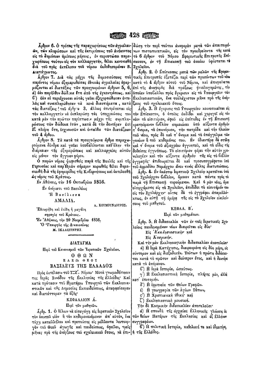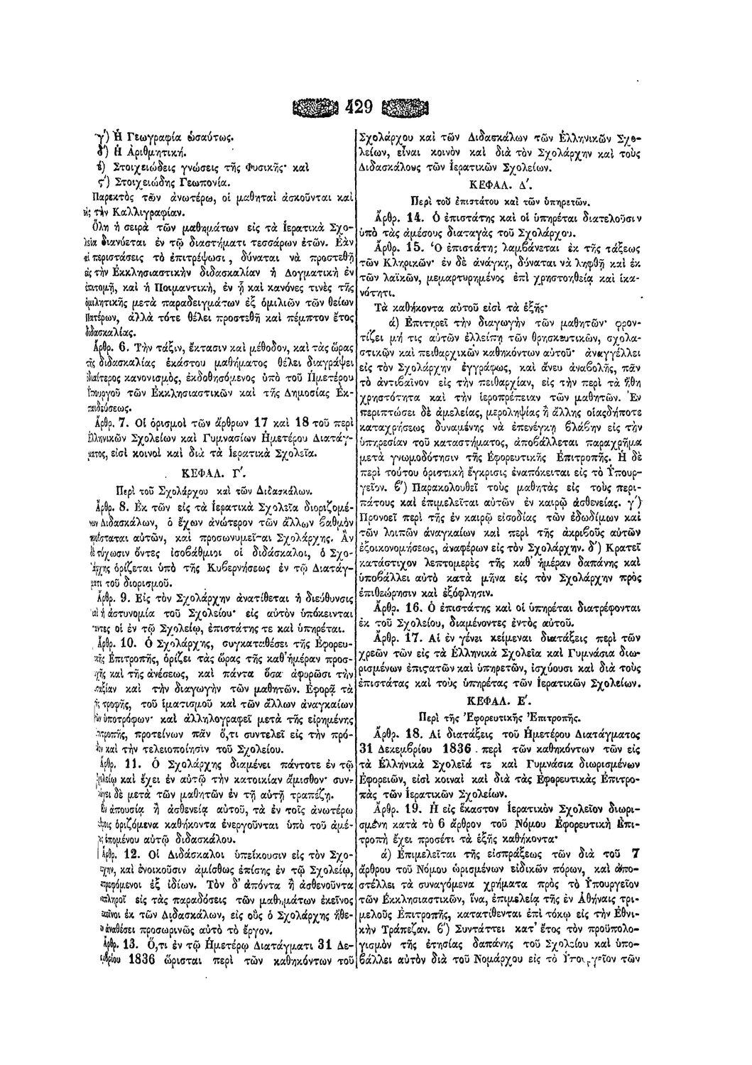 Δ. Περί του Κανονισμού των Ιερατικών Σχολείων