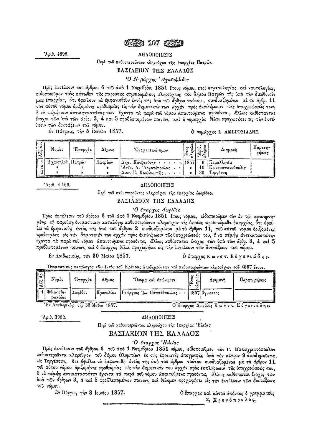 Β.Δ. Περί εισαγωγής εμπορικών μαθημάτων εν τω Γυμνασίω Πατρών