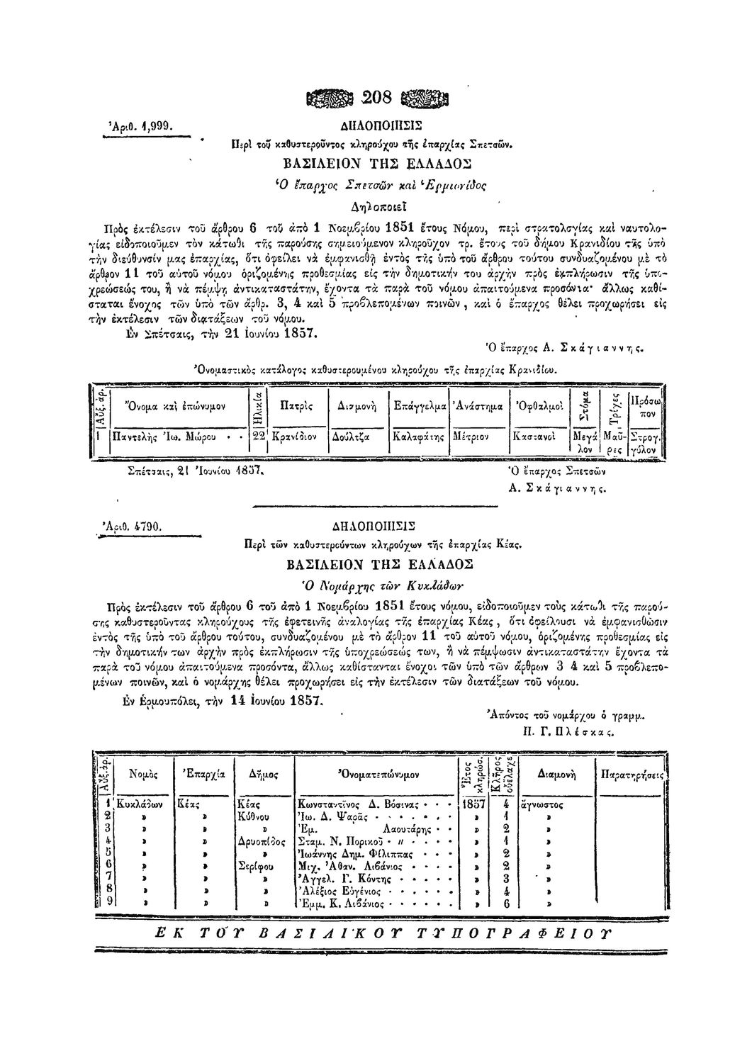 Κωδικός αναγνώρισης: 1857-026A Τίτλος: ΦΕΚ 26/27.08.1857, Τεύχος Α Μέγεθος και υπόστρωμα: Φεκ προγραμμάτων σπουδών, 2 σελίδες. |