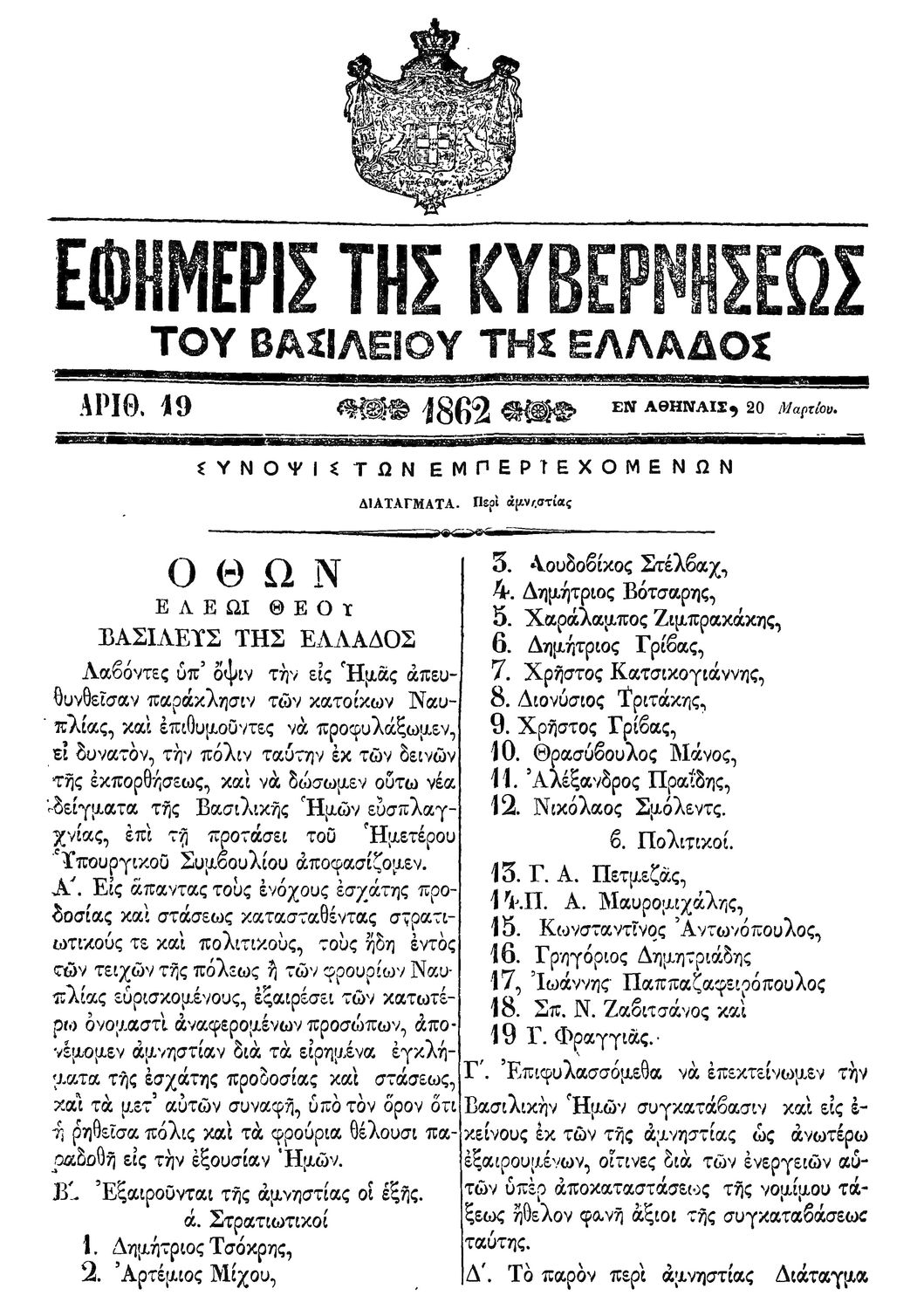 Κωδικός αναγνώρισης: 1862-019A Τίτλος: ΦΕΚ 19/18.12.1862, Τεύχος A Μέγεθος και υπόστρωμα: Φεκ προγραμμάτων σπουδών, 2 σελίδες. |