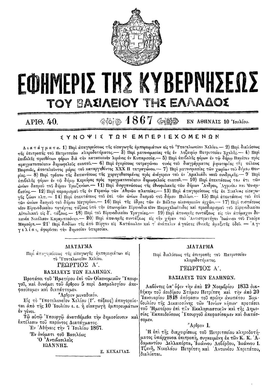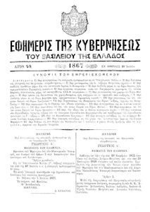 Κωδικός αναγνώρισης: 1867-040A Τίτλος: ΦΕΚ 40/10.07.1867, Τεύχος Α Μέγεθος και υπόστρωμα: Φεκ προγραμμάτων σπουδών, 2 σελίδες. |