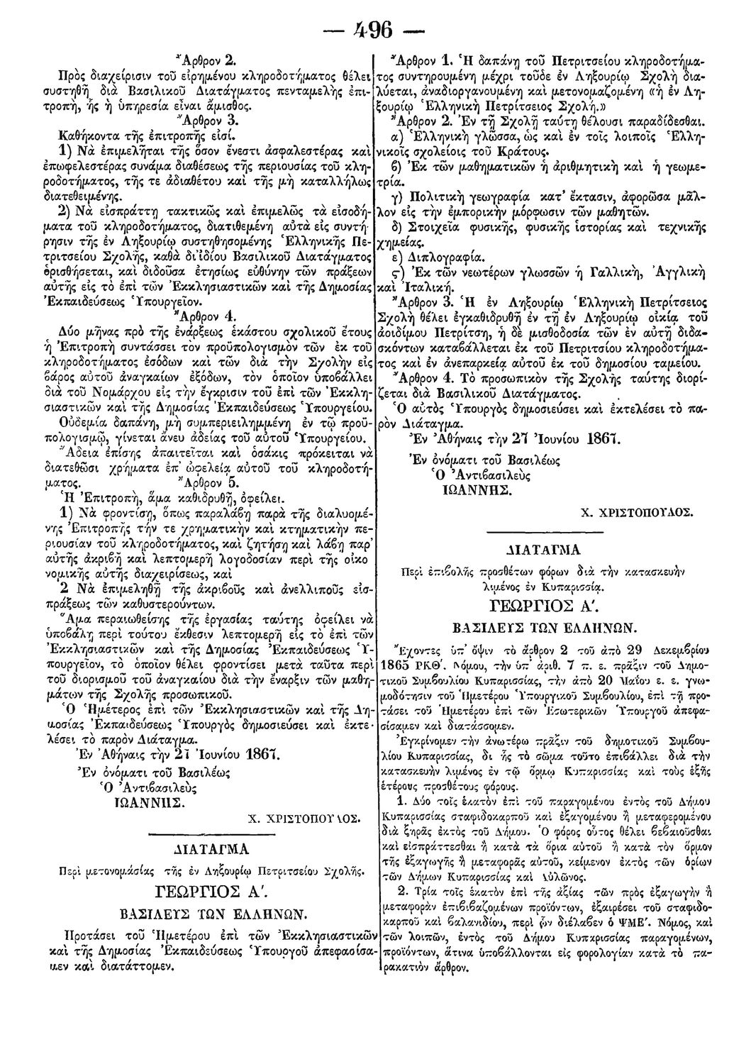 Β.Δ. Περί μετονομασίας της εν Ληξουρίω Πετριτσείου Σχολής