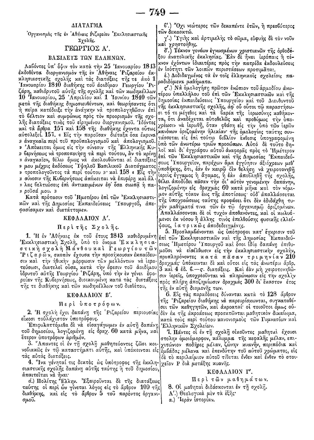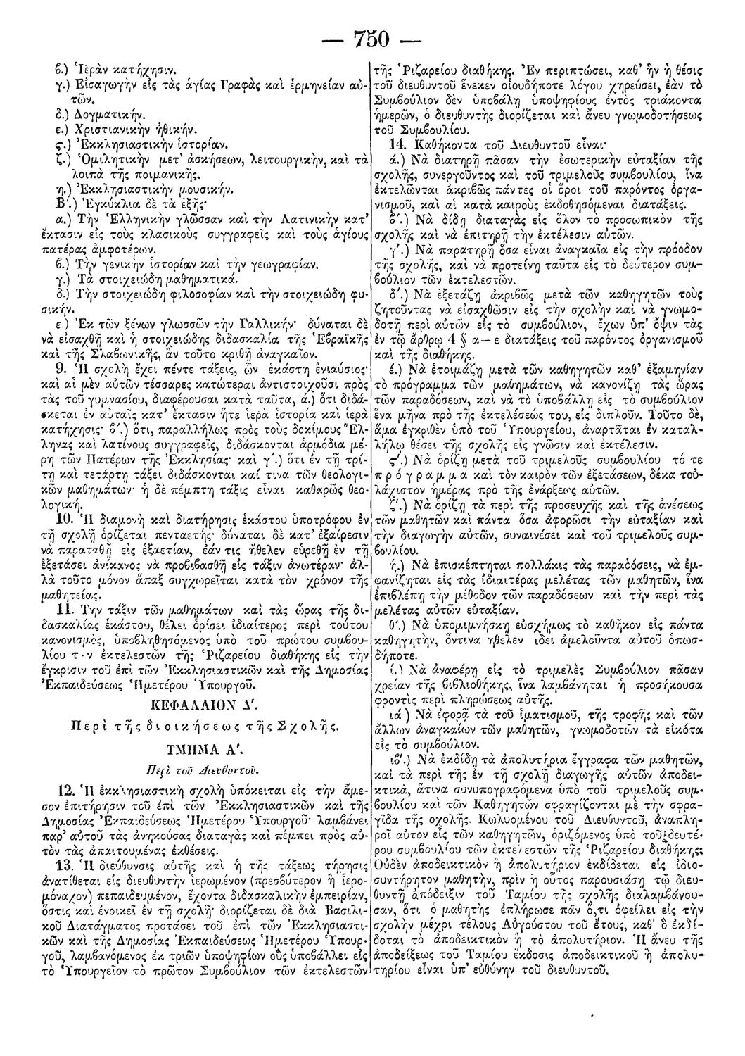 Δ. Οργανισμός της εν Αθήναις Ριζαρείου Εκκλησιαστικής Σχολής