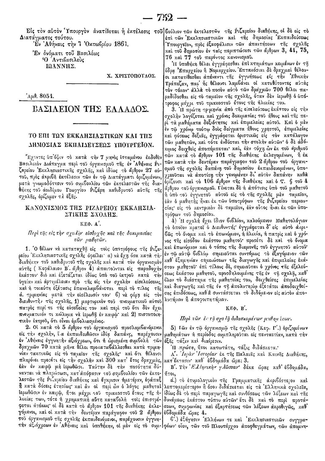 Παρουσίαση περιεχομένου: Δ. Οργανισμός της εν Αθήναις Ριζαρείου Εκκλησιαστικής Σχολής Σχετικές σελίδες: 1, 5-14 |