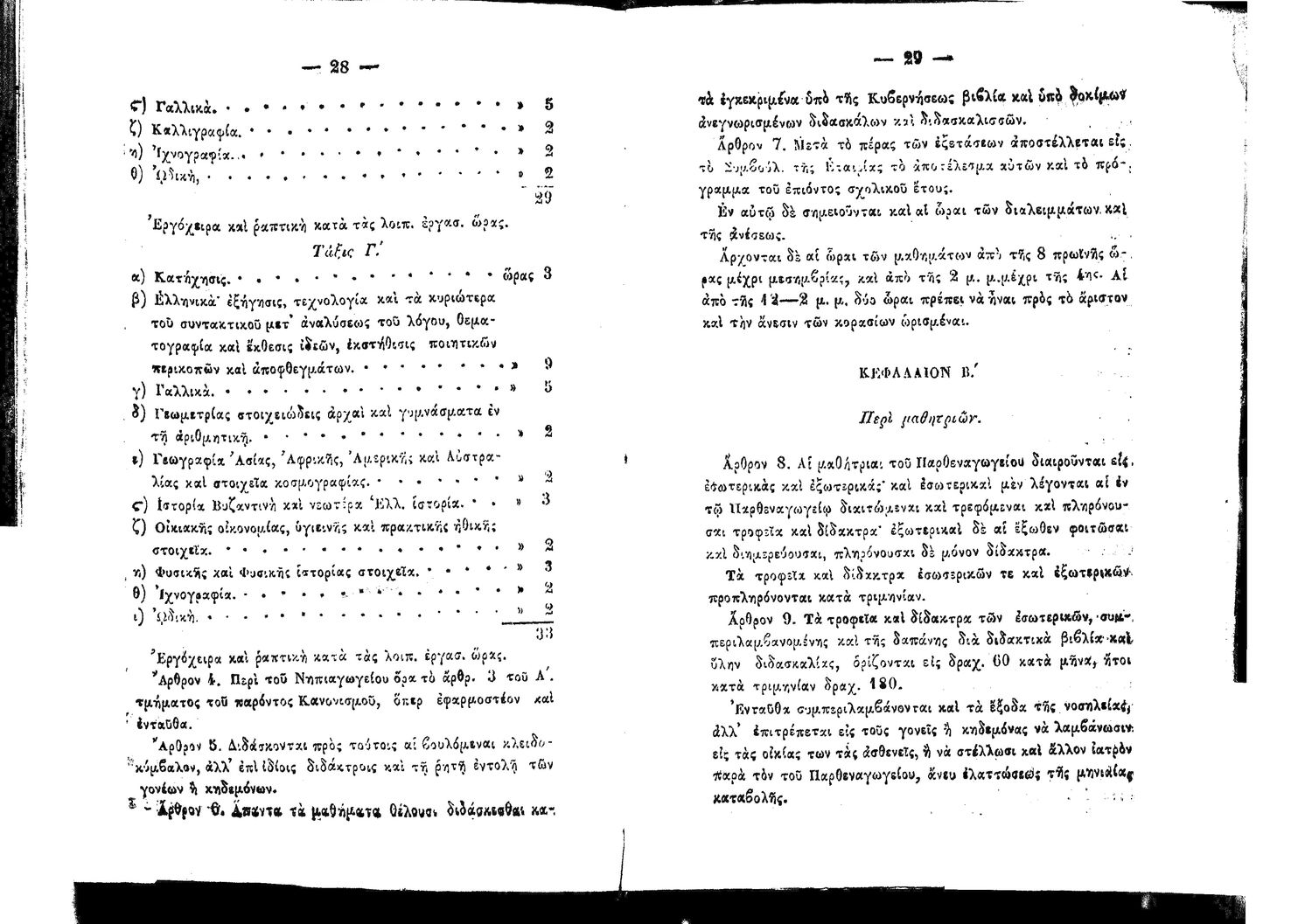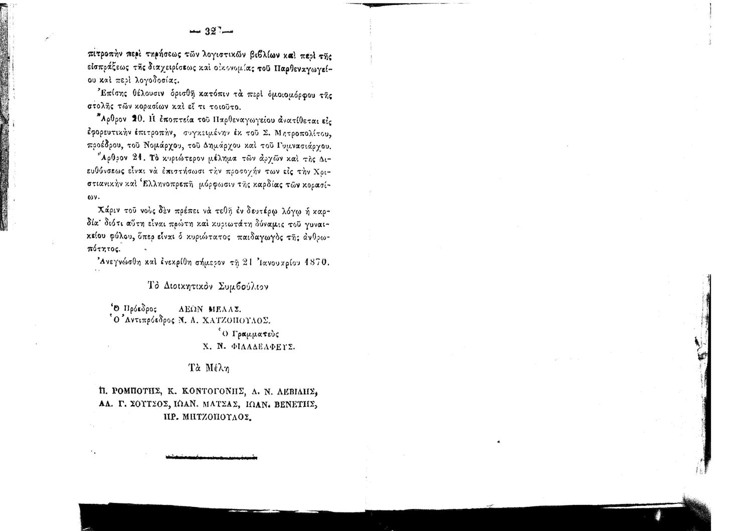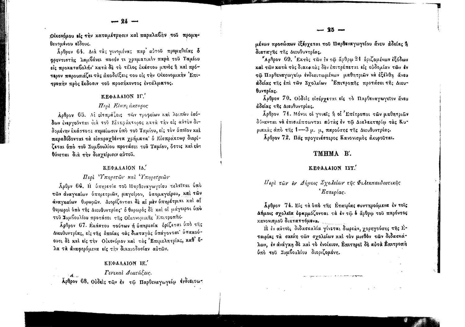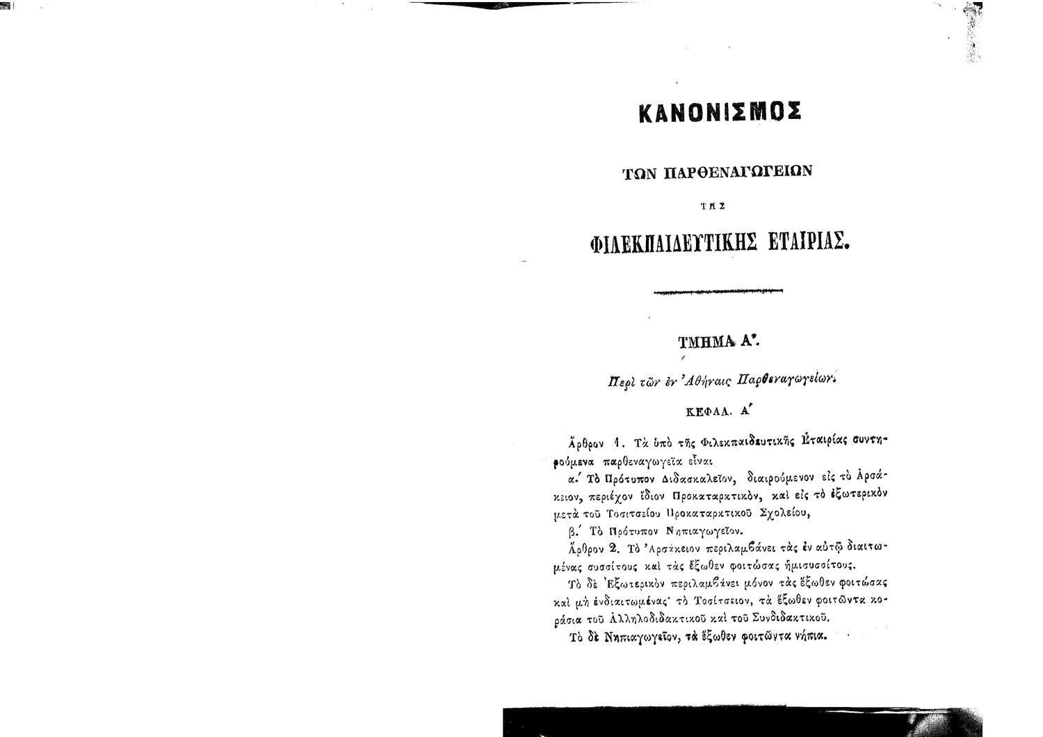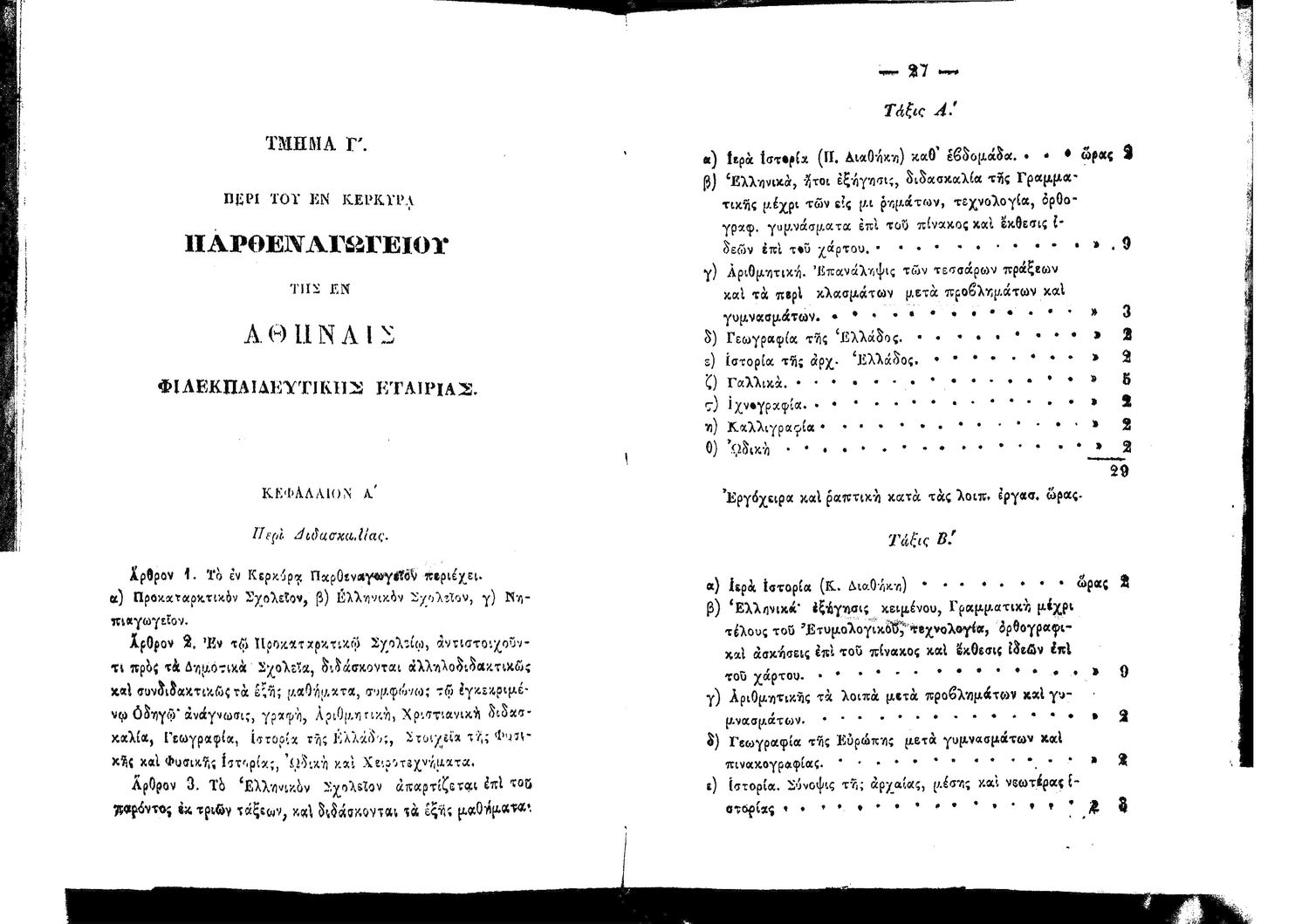 Κωδικός αναγνώρισης: 1870-0002 Τίτλος: Κανονισμός των παρθεναγωγείων της Φιλεκπαιδευτικής Εταιρίας Μέγεθος και υπόστρωμα: Λοιπά προγραμμάτων σπουδών, 17 σελίδες. |