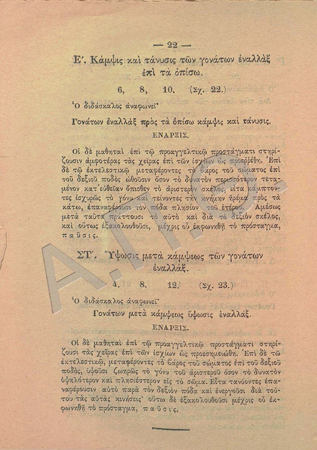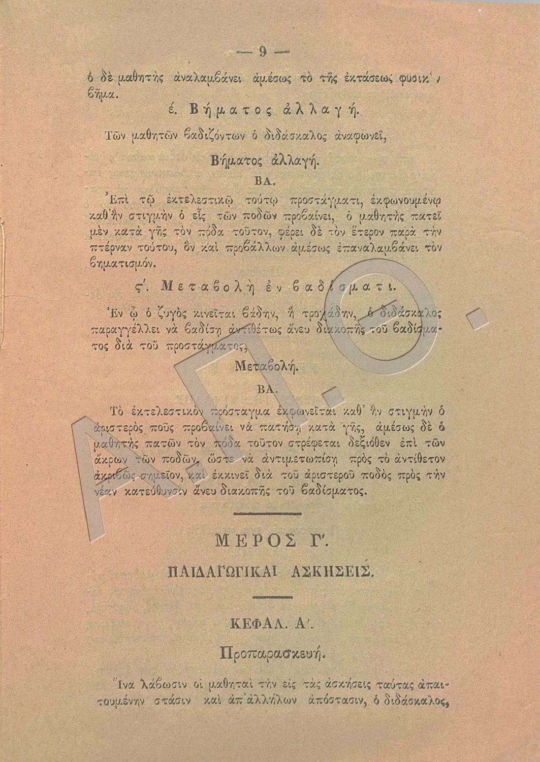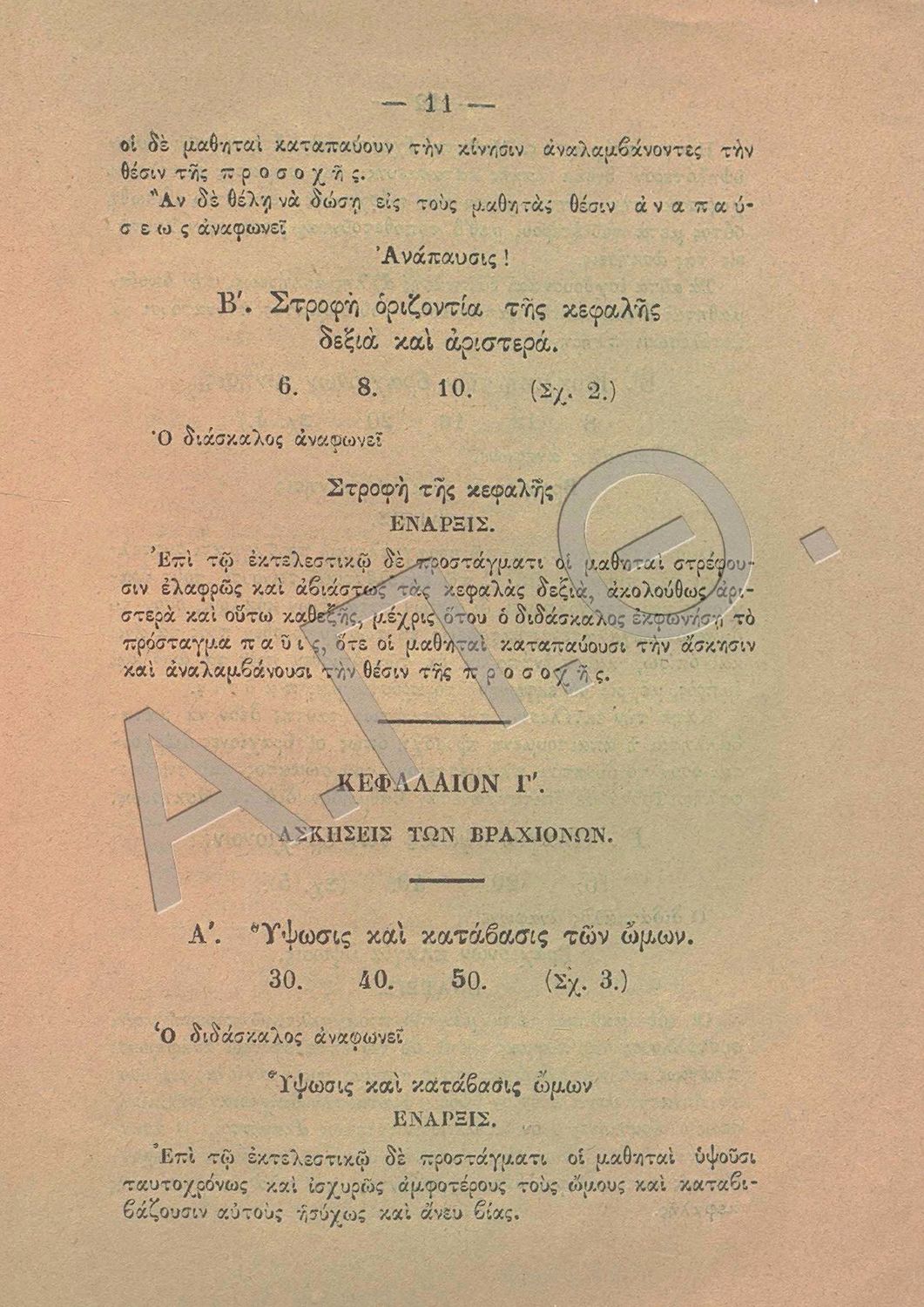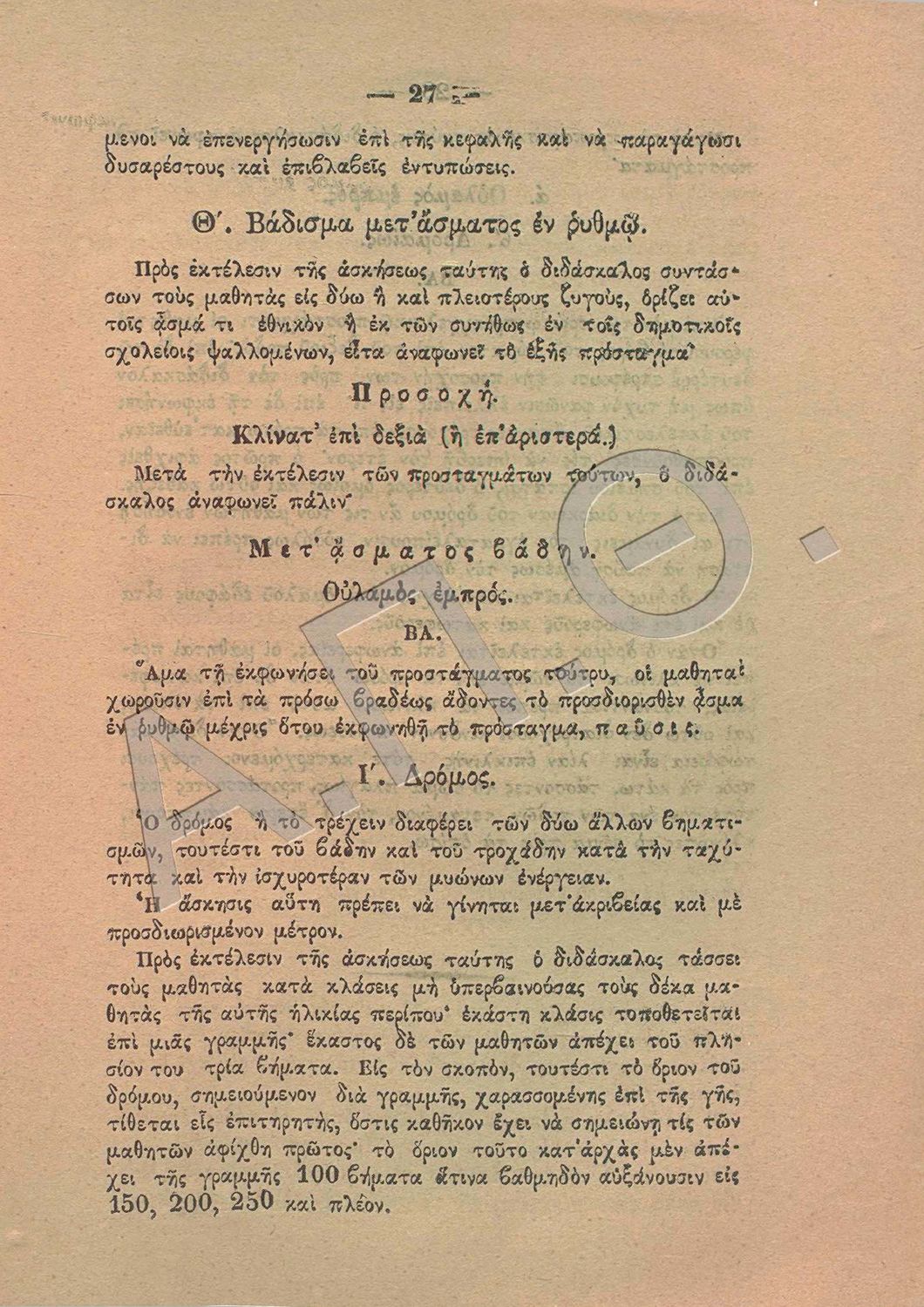 Κωδικός αναγνώρισης: 1876-0003 Τίτλος: Κανονισμός των εν τοις δημοτικοίς σχολείοις σωματικών ασκήσεων και οδηγίαι προς εκτέλεσιν αυτών Μέγεθος και υπόστρωμα: Λοιπά προγραμμάτων σπουδών, 38 σελίδες. |