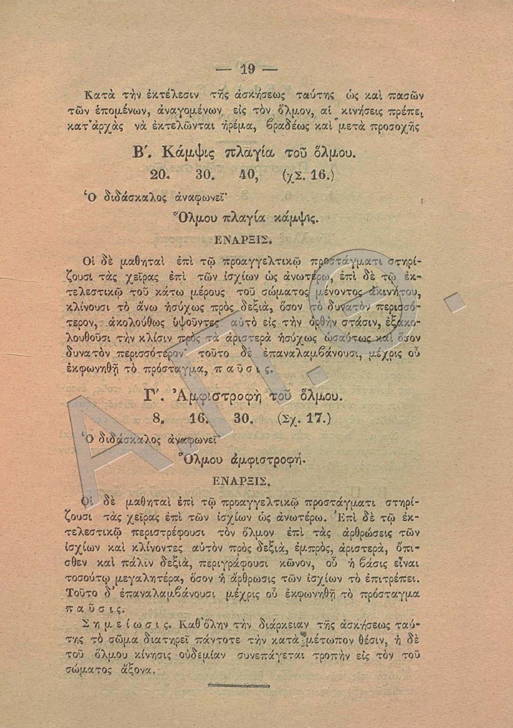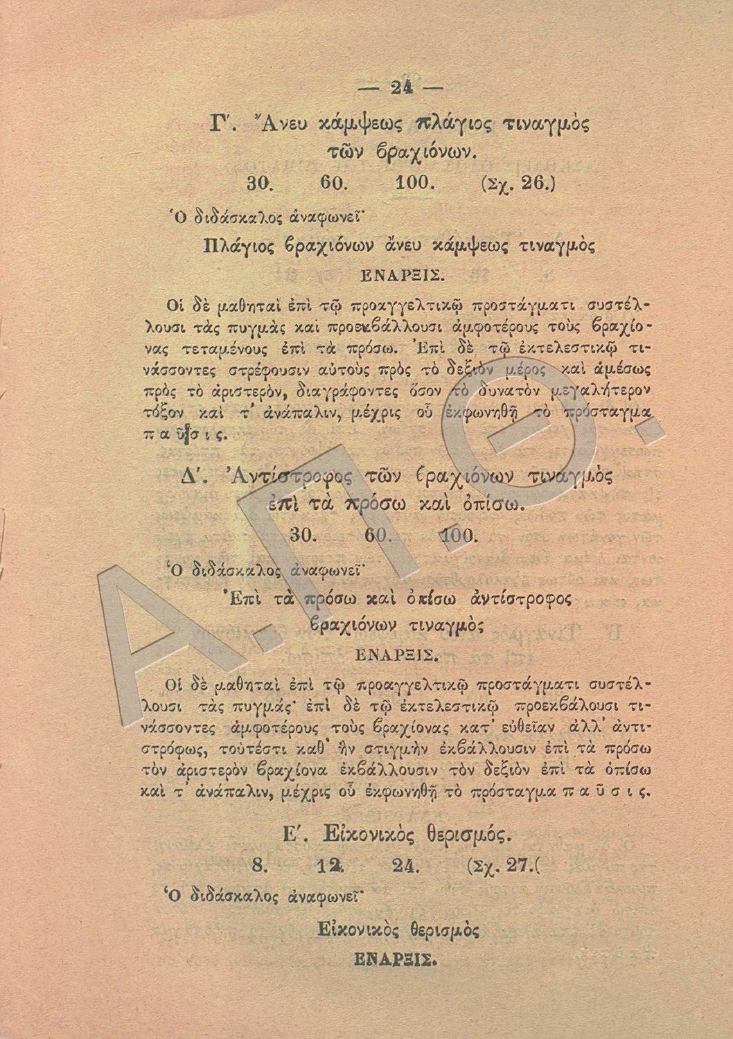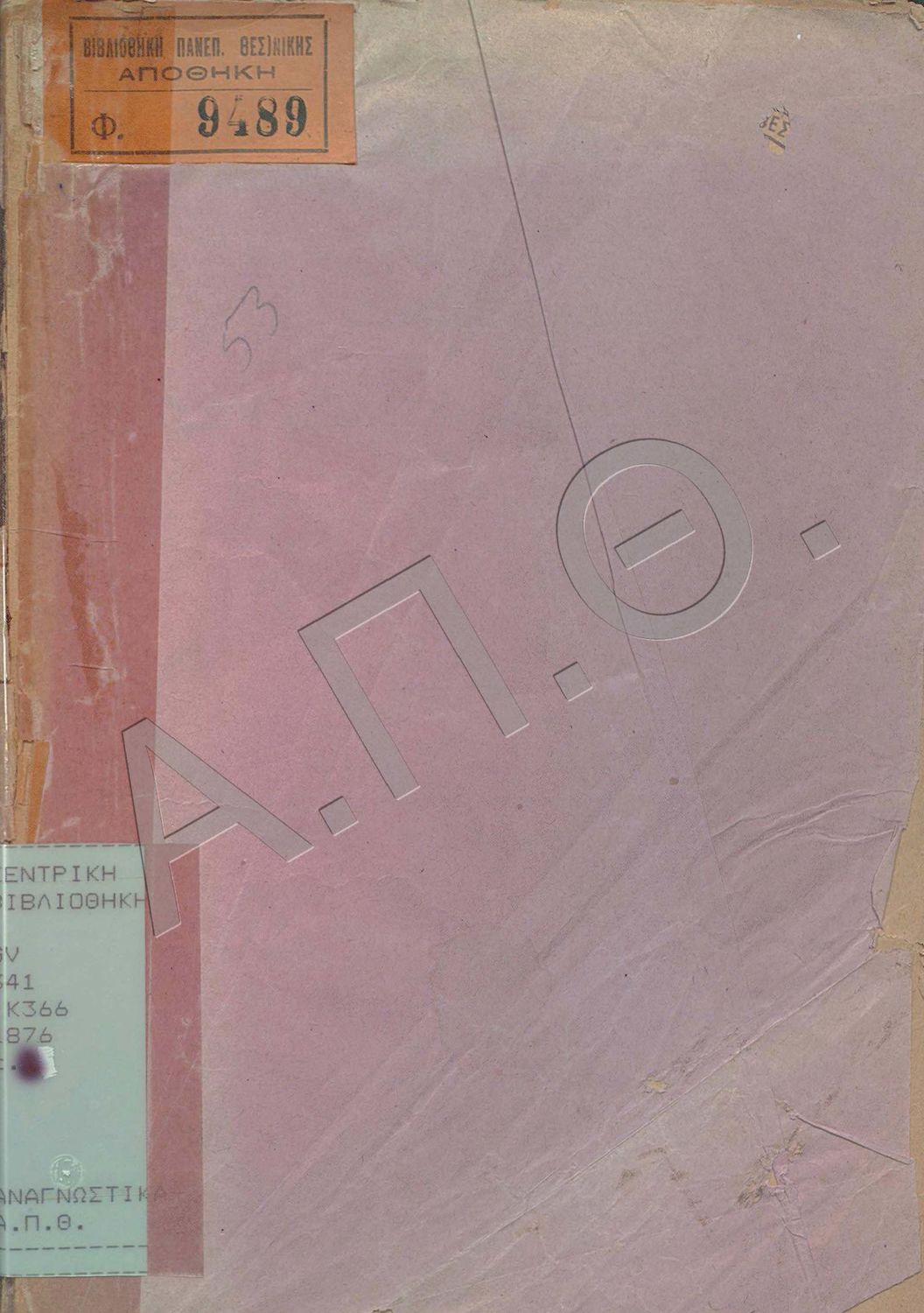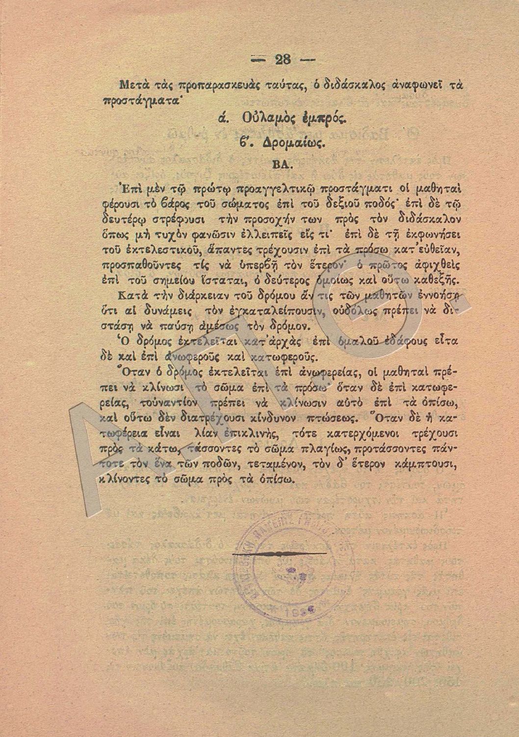 Κωδικός αναγνώρισης: 1876-0003 Τίτλος: Κανονισμός των εν τοις δημοτικοίς σχολείοις σωματικών ασκήσεων και οδηγίαι προς εκτέλεσιν αυτών Μέγεθος και υπόστρωμα: Λοιπά προγραμμάτων σπουδών, 38 σελίδες. |