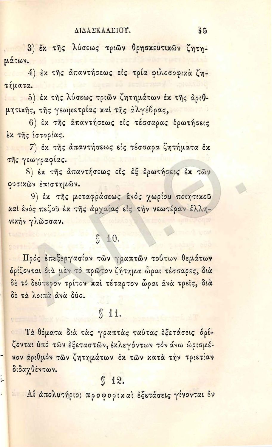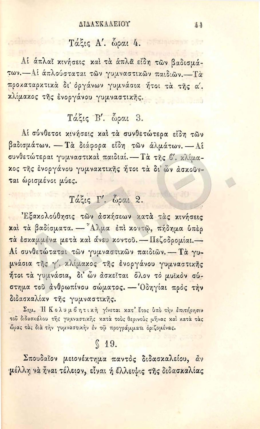 Β.Δ. Περί κατανομής των μαθημάτων και των ωρών της διδασκαλίας εν τη κατωτάτη τάξει του διδασκαλείου της δημοτικής εκπαιδεύσεως
