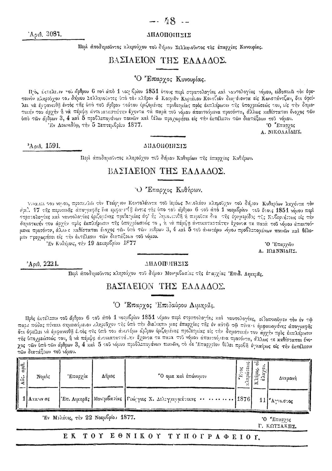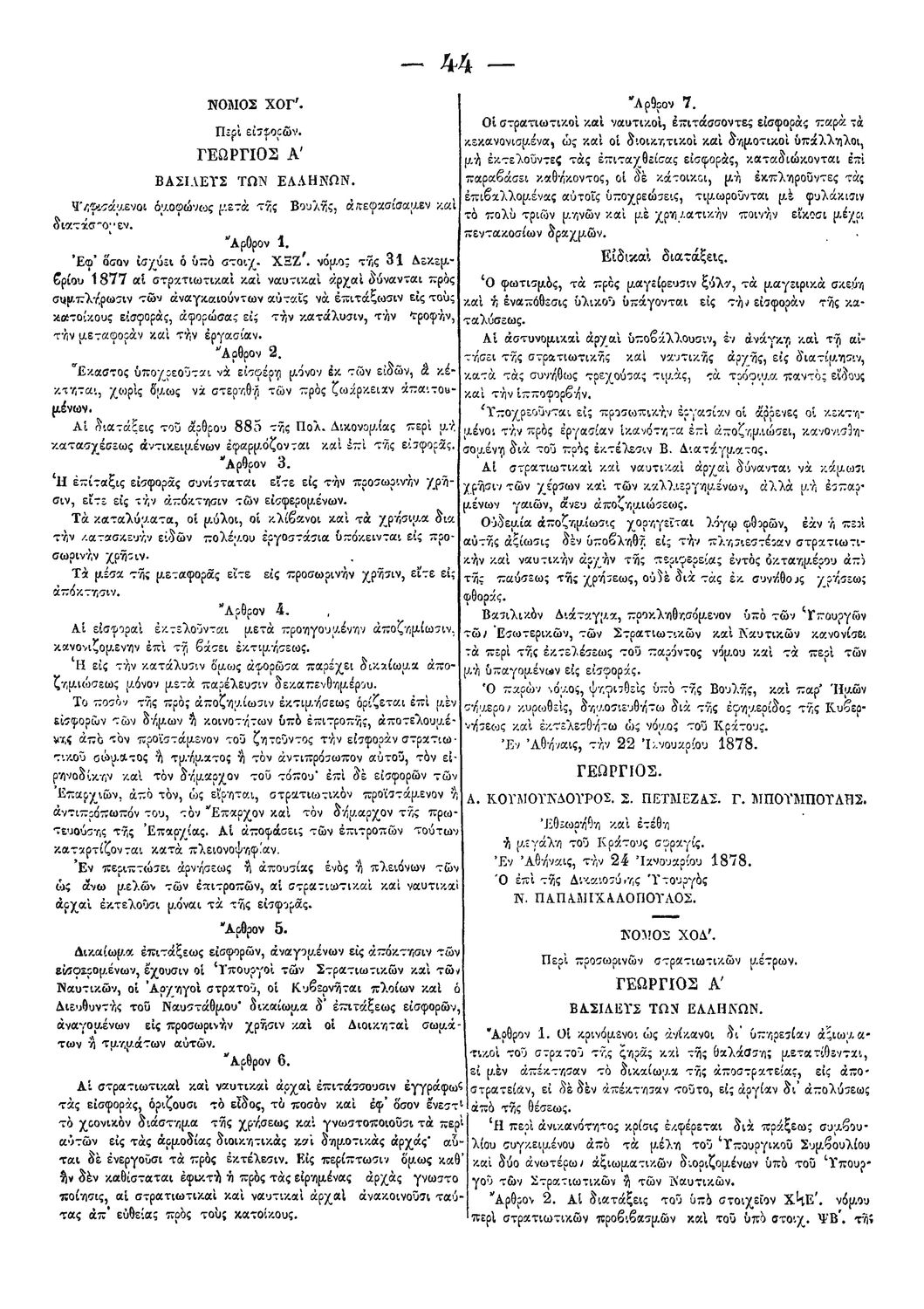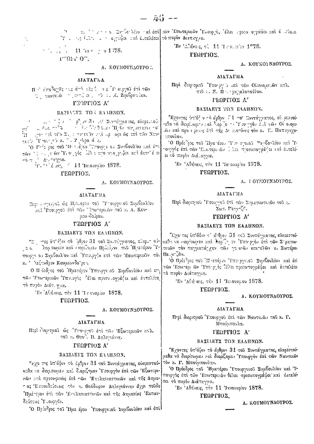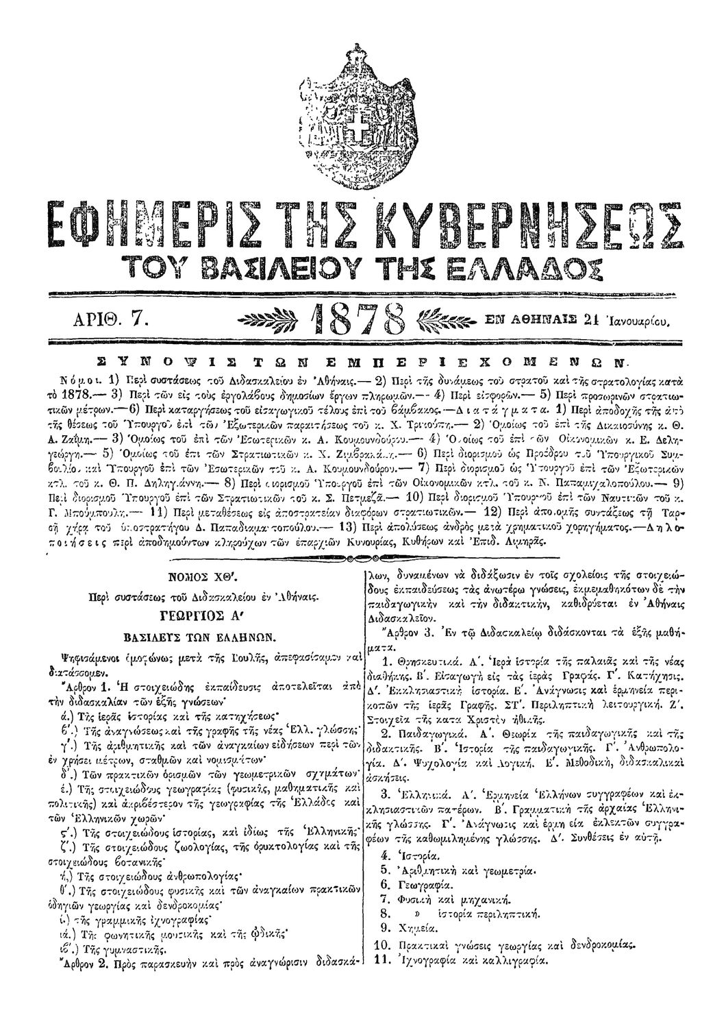 Κωδικός αναγνώρισης: 1878-007A Τίτλος: ΦΕΚ 7/21.01.1878, Τεύχος Α Μέγεθος και υπόστρωμα: Φεκ προγραμμάτων σπουδών, 2 σελίδες. |