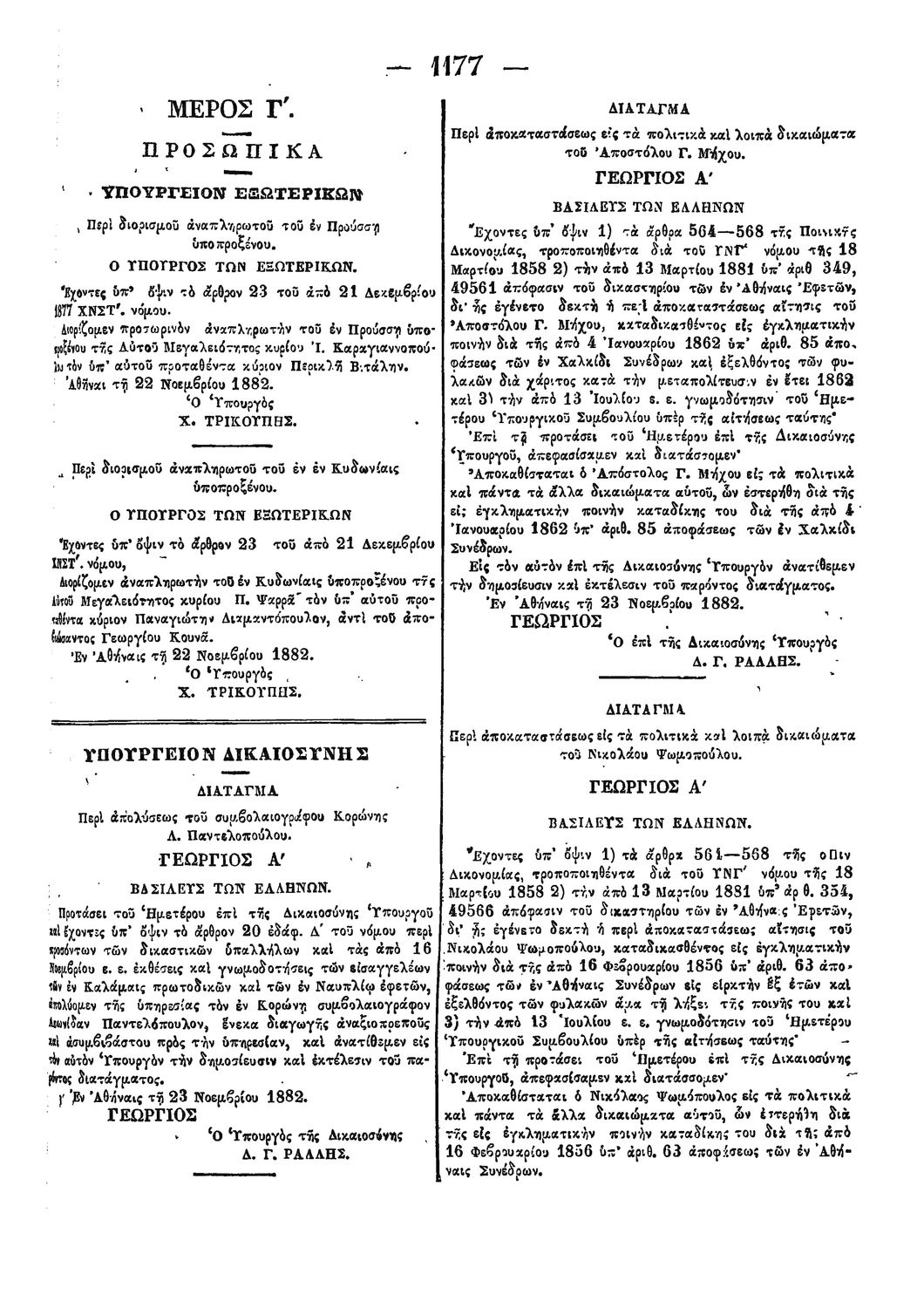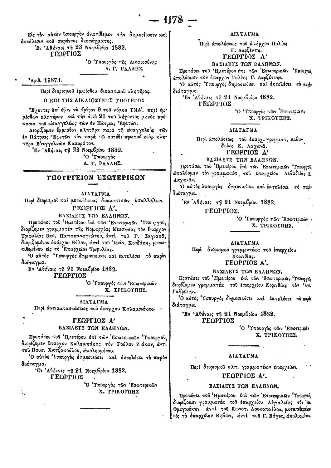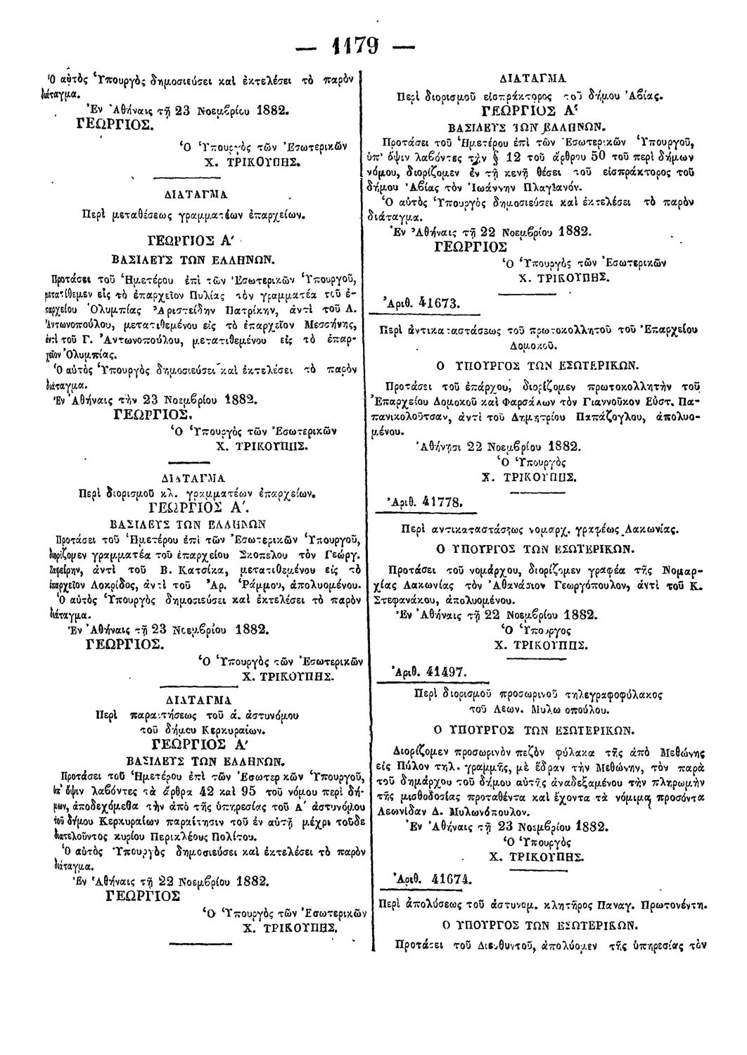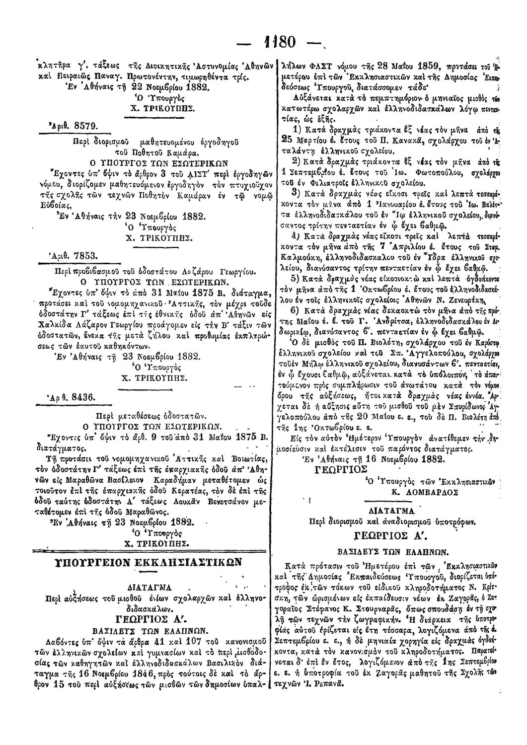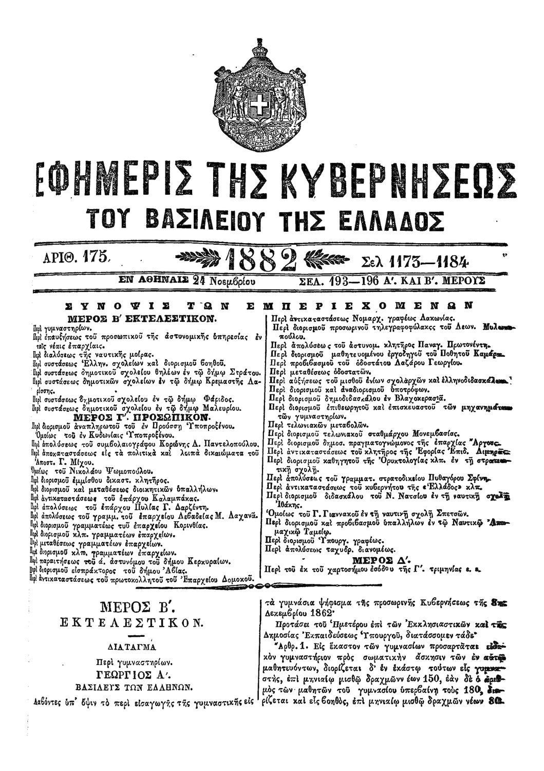 Κωδικός αναγνώρισης: 1882-175A Τίτλος: ΦΕΚ 175/24.11.1882, Τεύχος Α Μέγεθος και υπόστρωμα: Φεκ προγραμμάτων σπουδών, 2 σελίδες. |