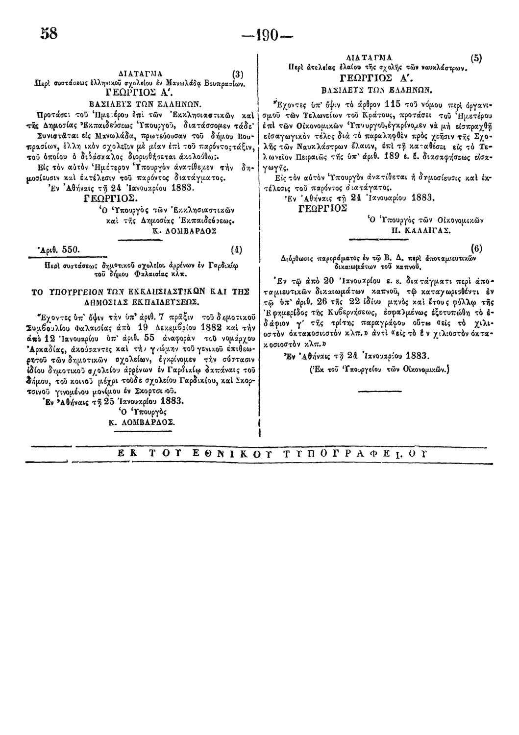 Κωδικός αναγνώρισης: 1883-031A Τίτλος: ΦΕΚ 31/27.01.1883, Τεύχος Α Μέγεθος και υπόστρωμα: Φεκ προγραμμάτων σπουδών, 1 σελίδες. |