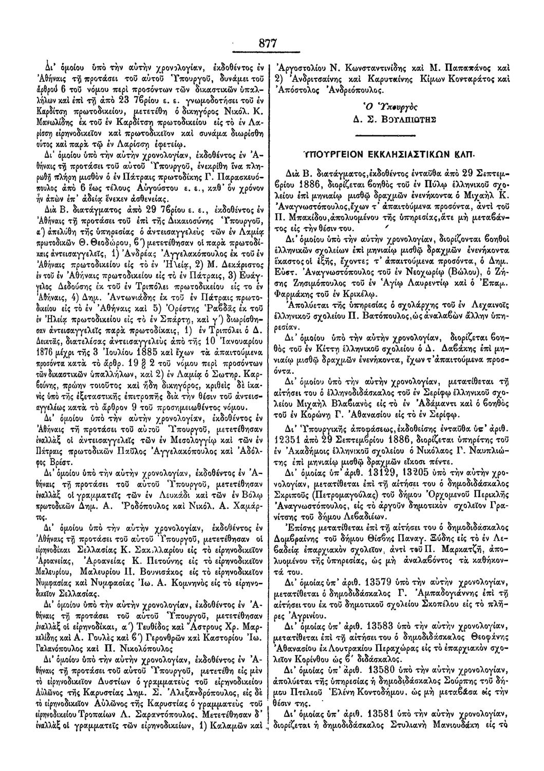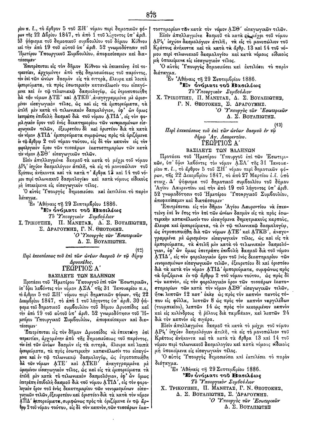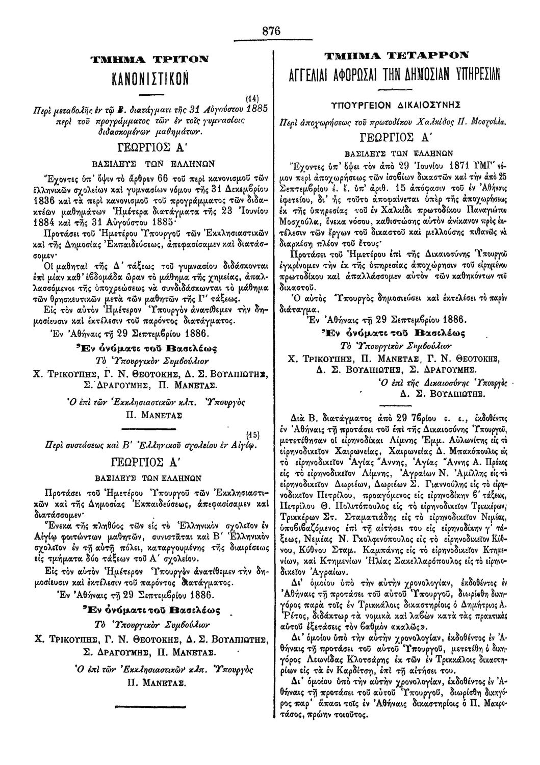 Κ.Δ. Περί μεταβολής εν τω Β. διατάγματι της 31 Αύγουστου 1885 περί του προγράμματος των εν τοις γυμνασίοις διδασκόμενων μαθημάτων
