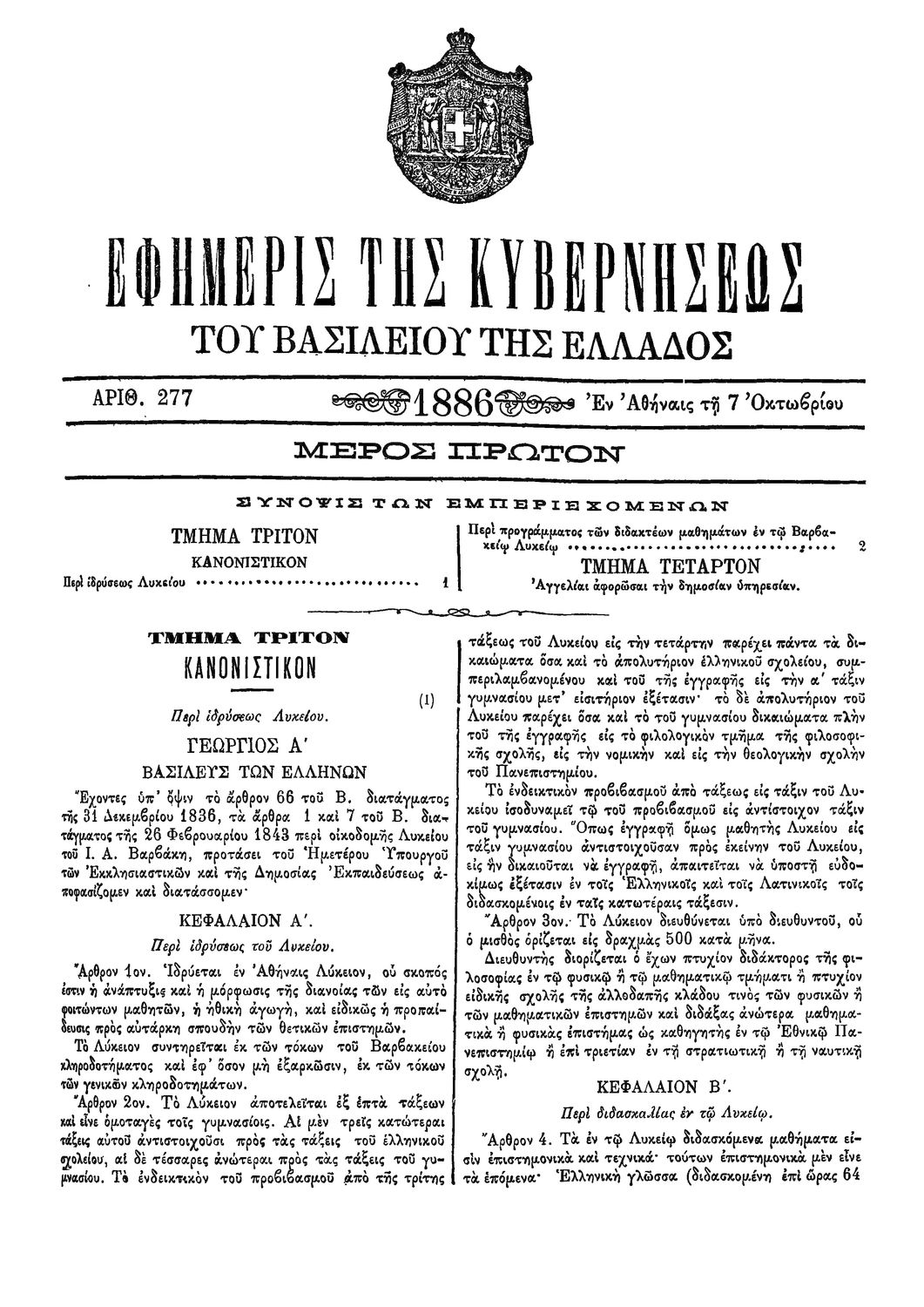 Παρουσίαση περιεχομένου: Περί ιδρύσεως Λυκείου Σχετικές σελίδες: 1-3 |