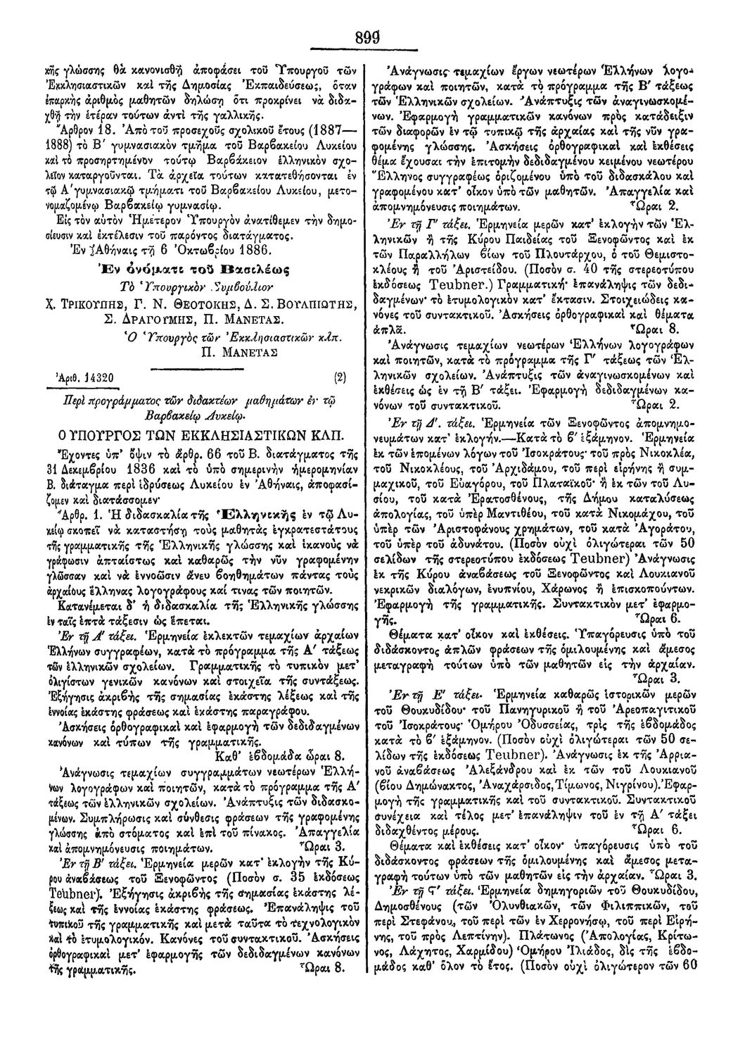 Κωδικός αναγνώρισης: 1886-277A Τίτλος: ΦΕΚ 277/07.10.1886, Τεύχος Α Μέγεθος και υπόστρωμα: Φεκ προγραμμάτων σπουδών, 3 σελίδες. |