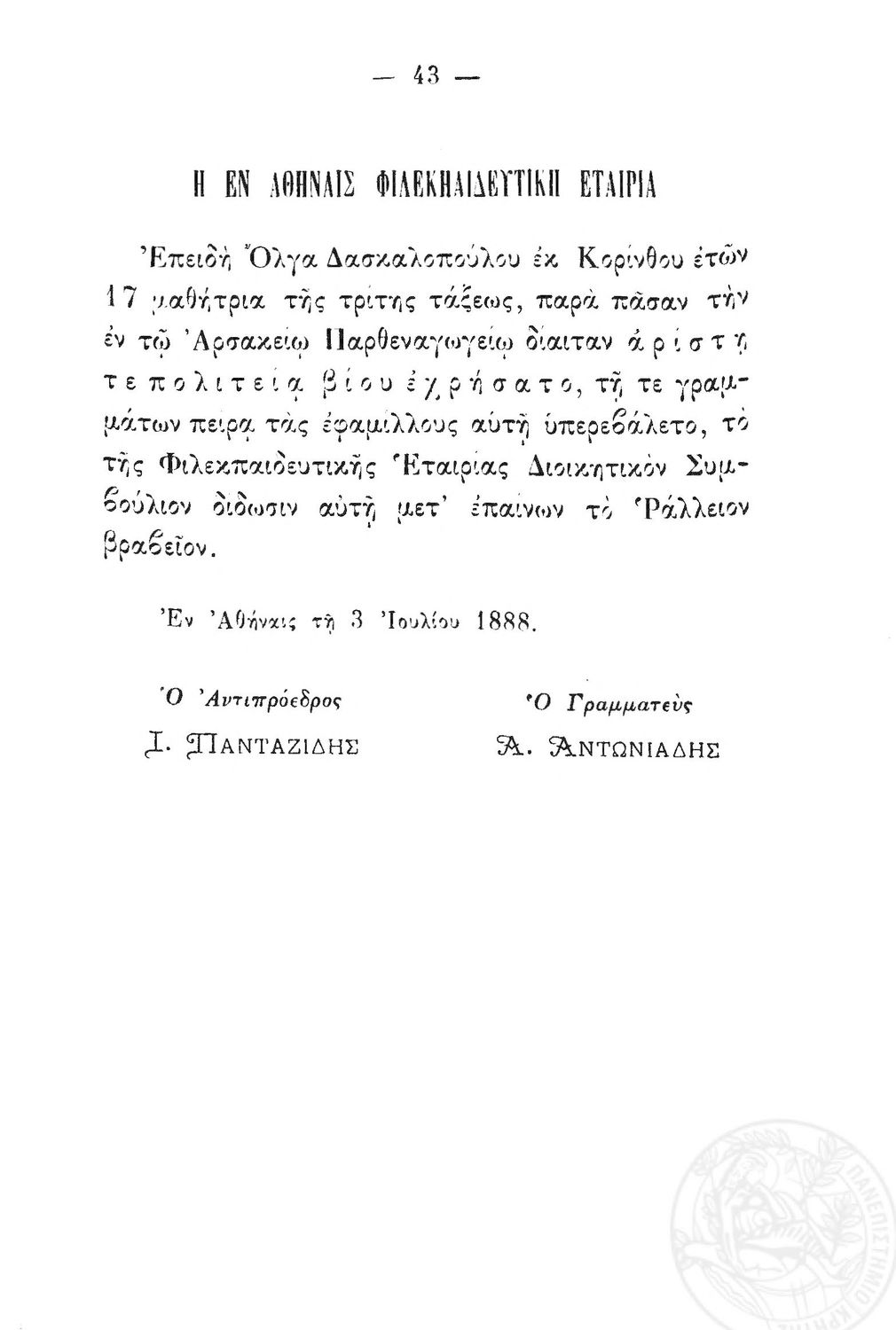 Πρακτικά της εν Αθήναις Φιλεκπαιδευτικής Εταιρίας του έτους 1887-1888