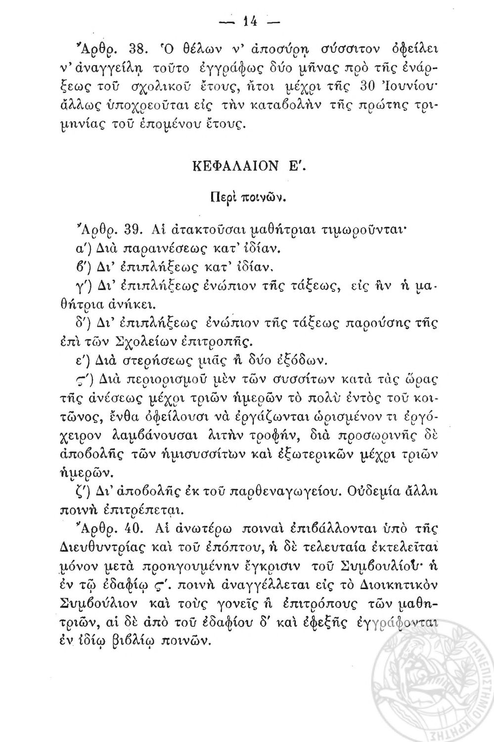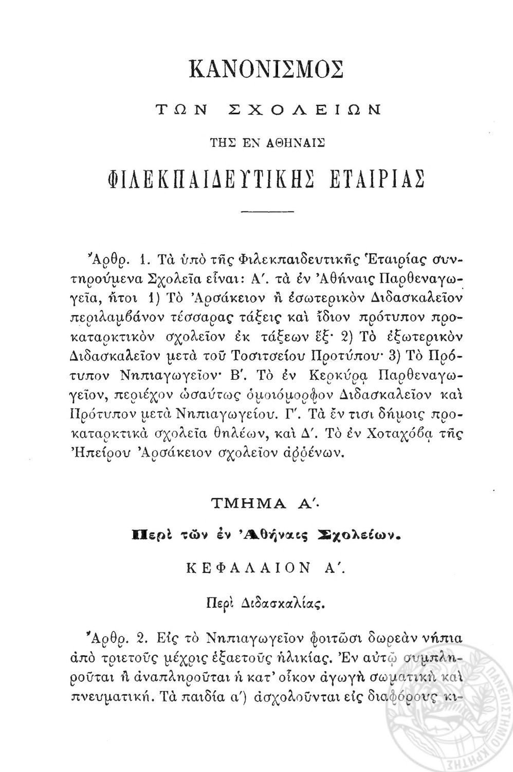 Κωδικός αναγνώρισης: 1889-0012 Τίτλος: Κανονισμός των σχολείων της εν Αθήναις Φιλεκπαιδευτικής Εταιρίας Μέγεθος και υπόστρωμα: Λοιπά προγραμμάτων σπουδών, 36 σελίδες. |