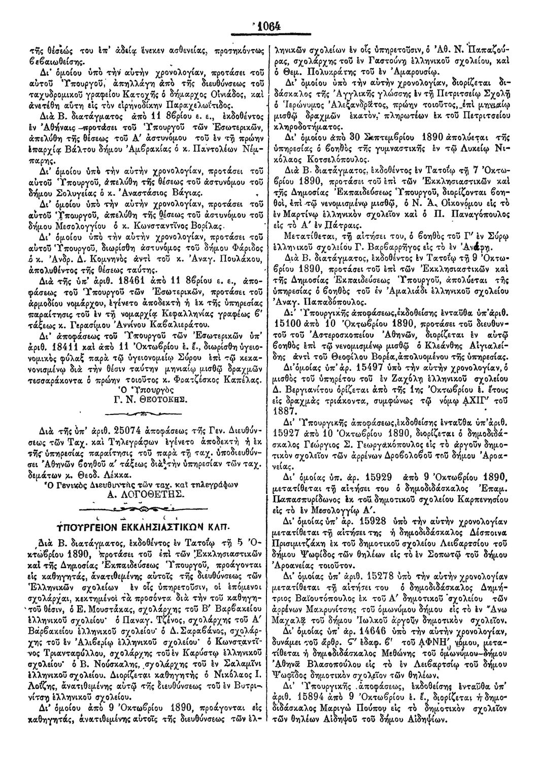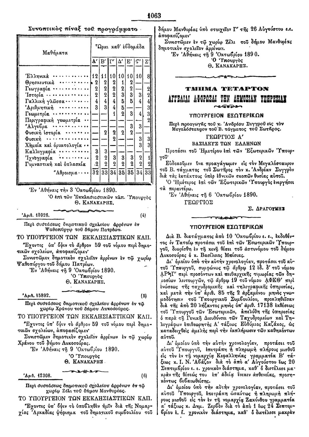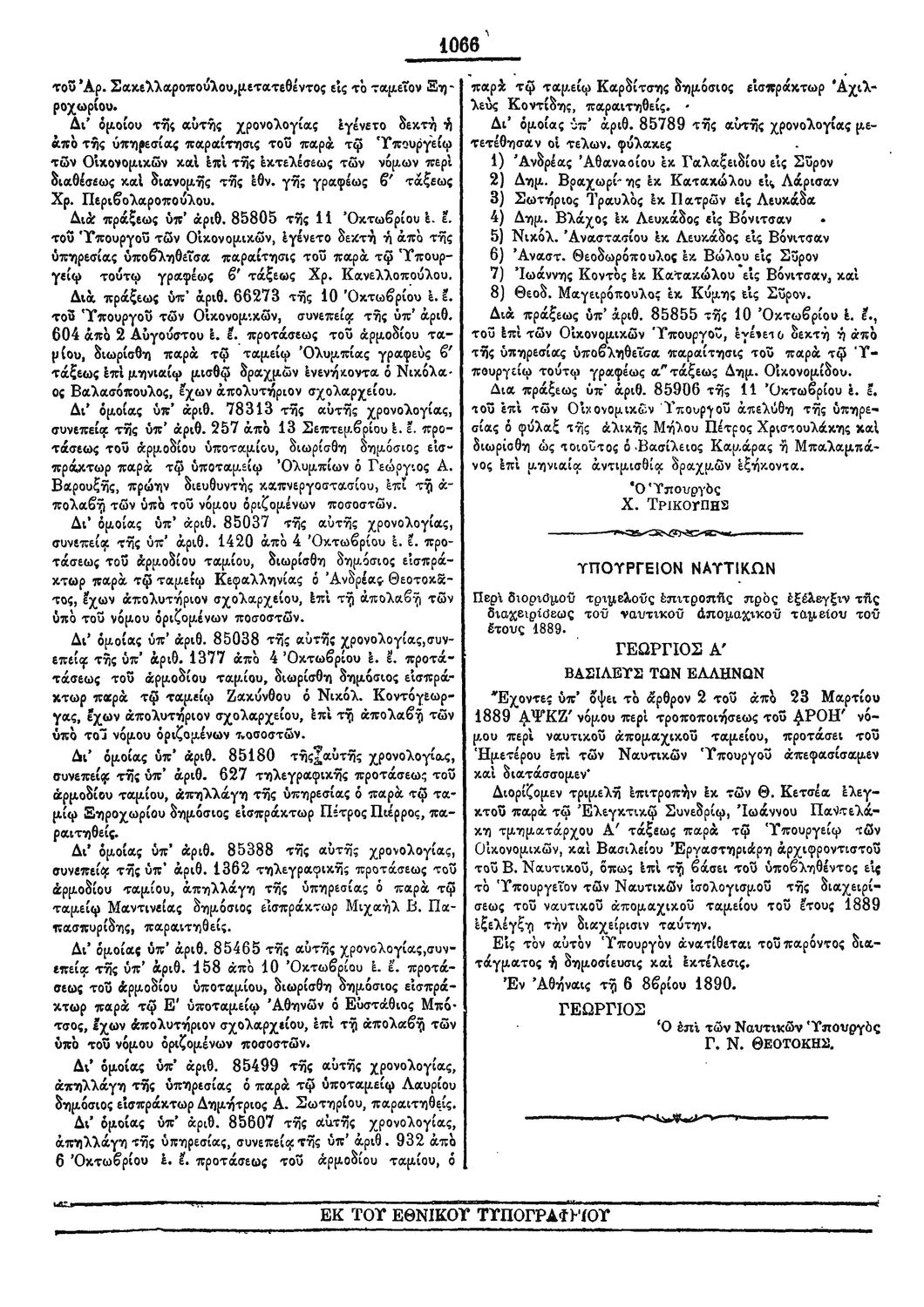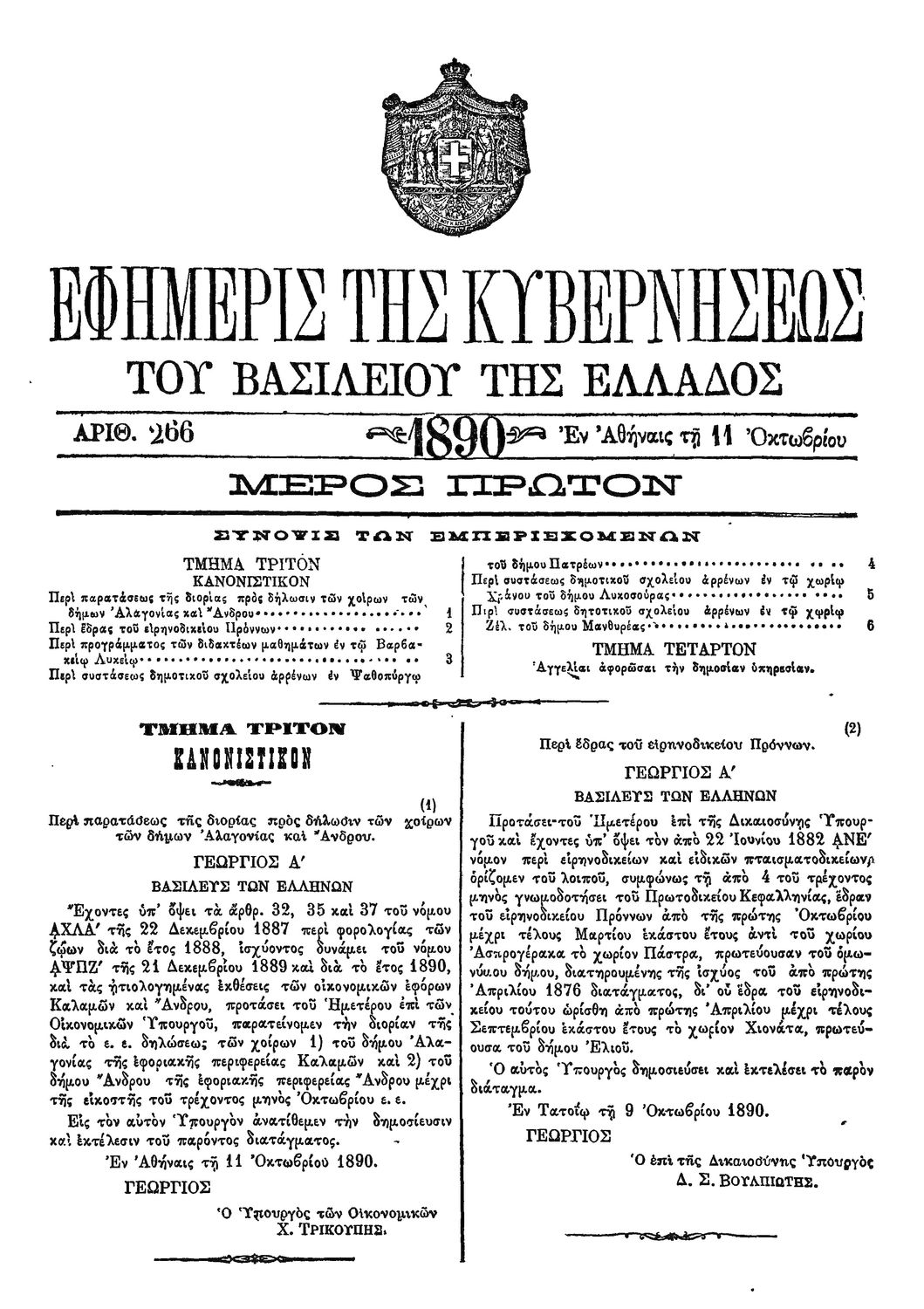 Κωδικός αναγνώρισης: 1890-266A Τίτλος: ΦΕΚ 266/11.10.1890, Τεύχος Α Μέγεθος και υπόστρωμα: Φεκ προγραμμάτων σπουδών, 5 σελίδες. |