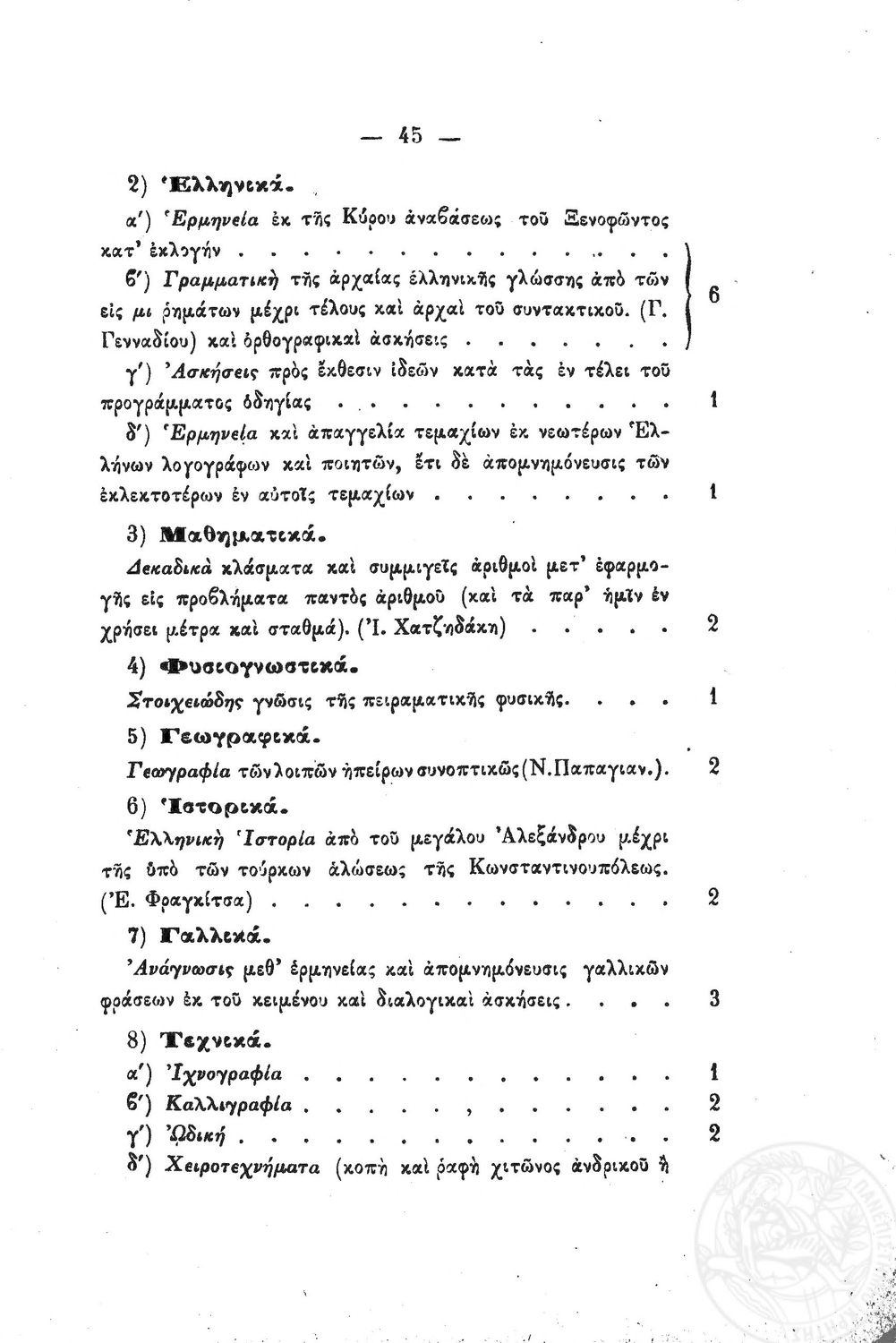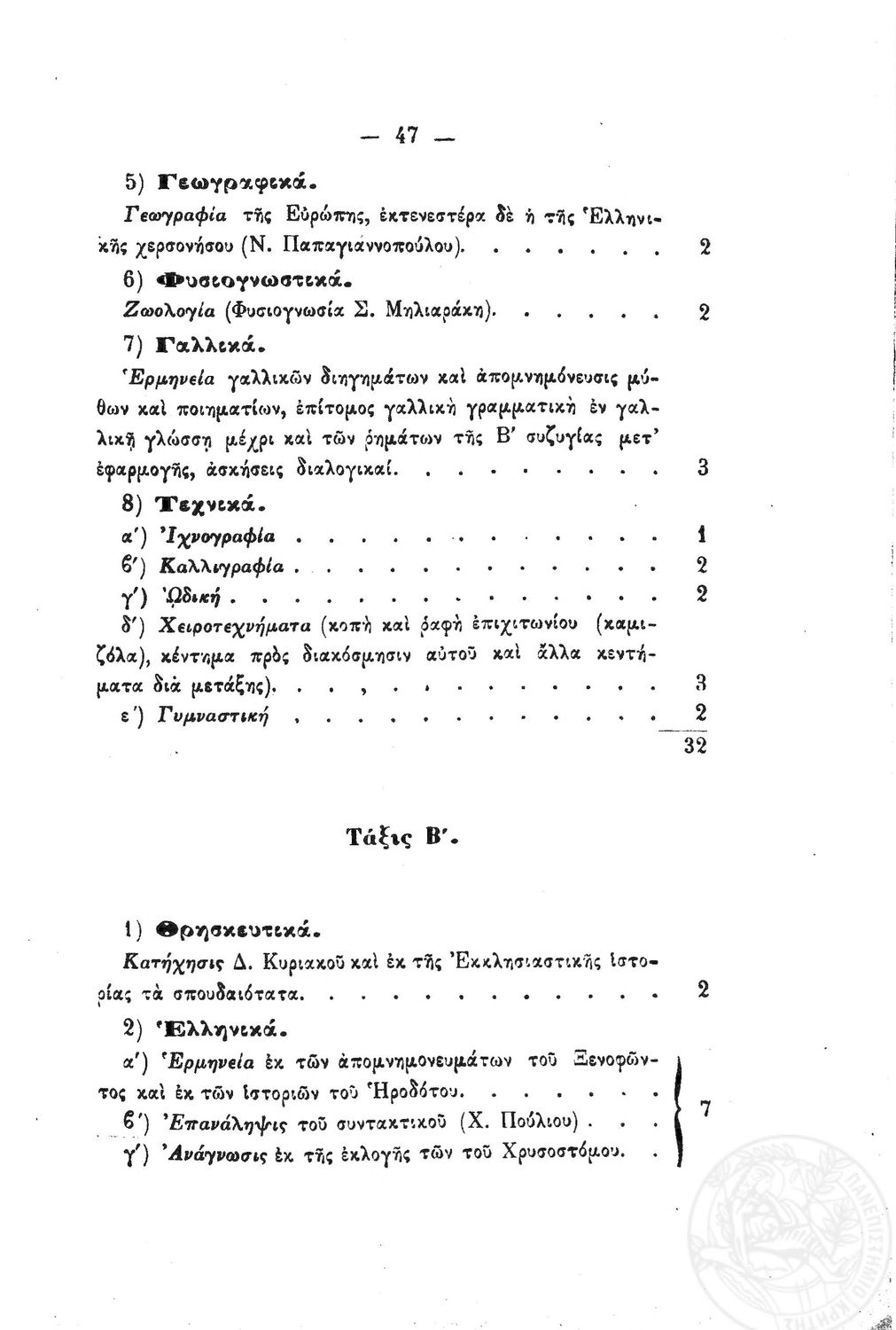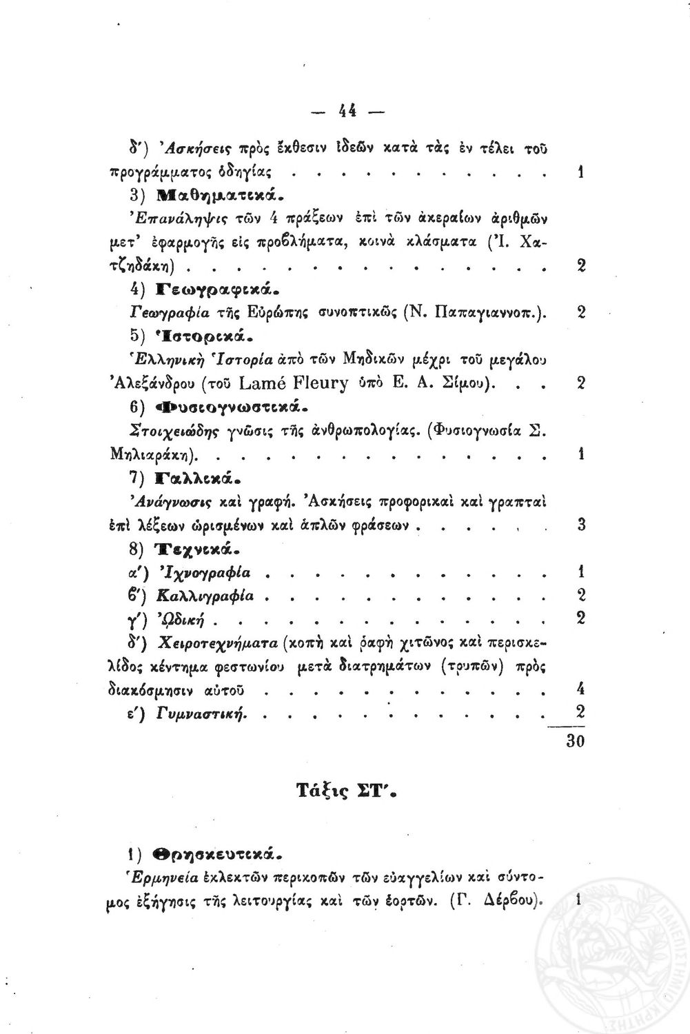 Β.Δ. Περί ορισμού ωρών διδασκαλίας των διαφόρων μαθημάτων εν τοις σχολείοις του Κράτους κατά το σχολικόν έτος 1917-1918