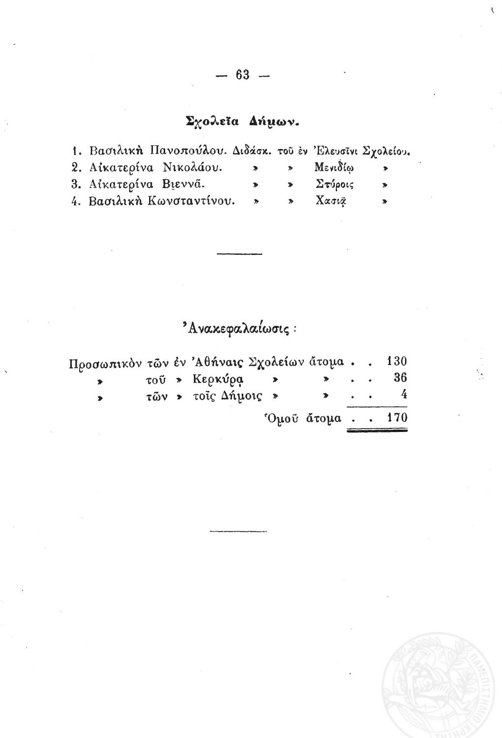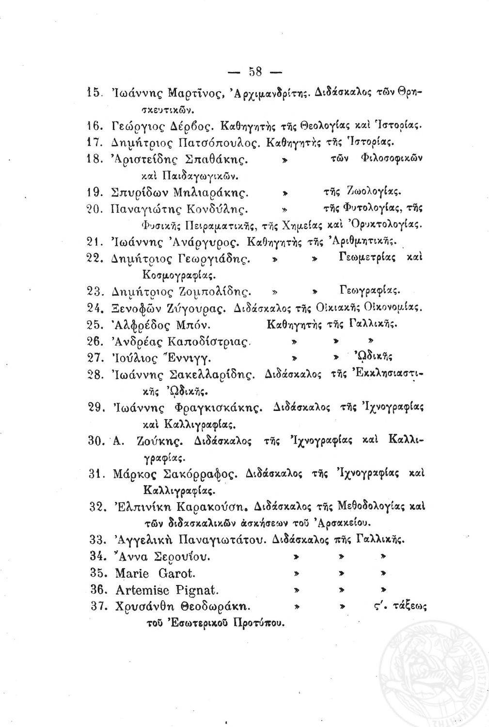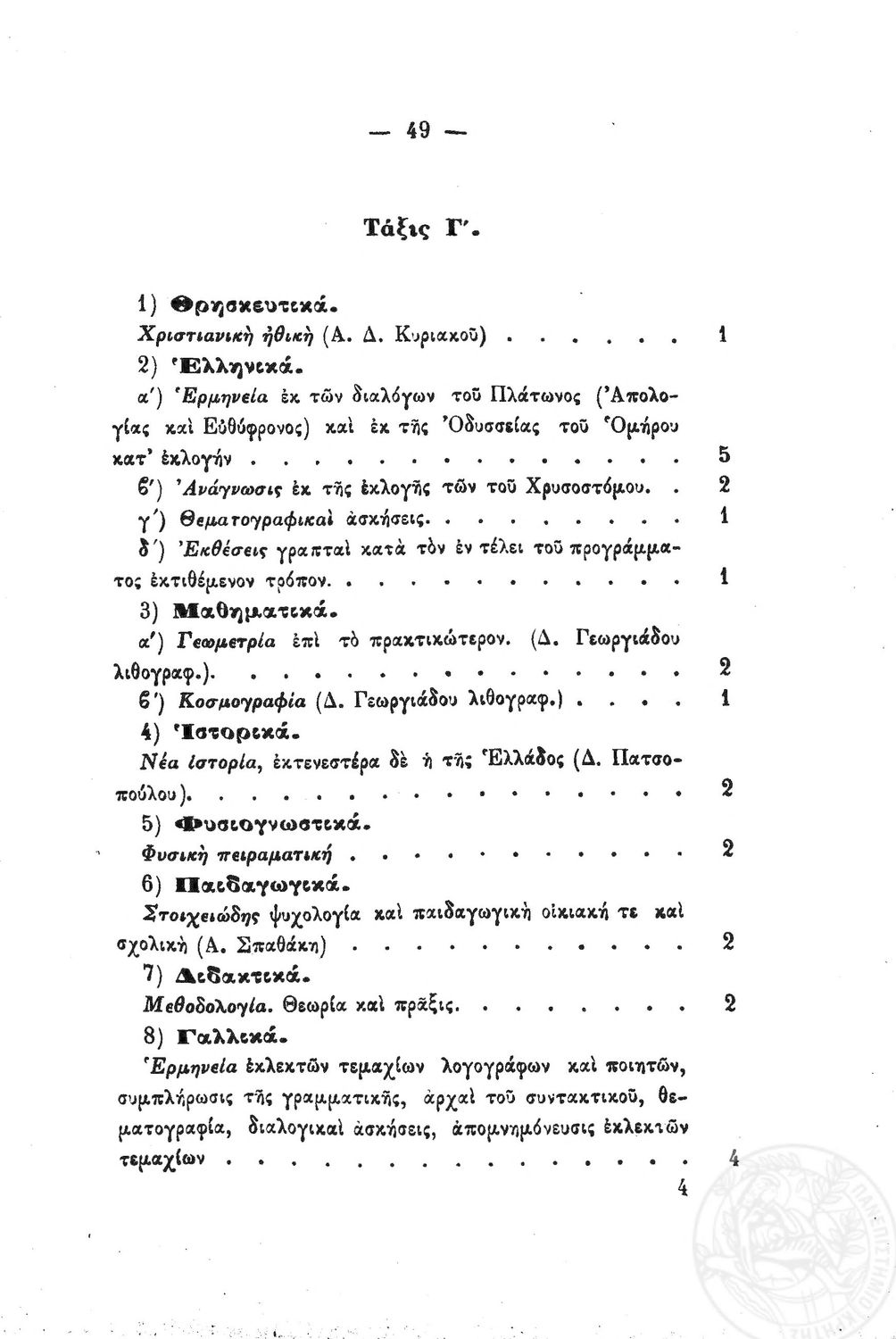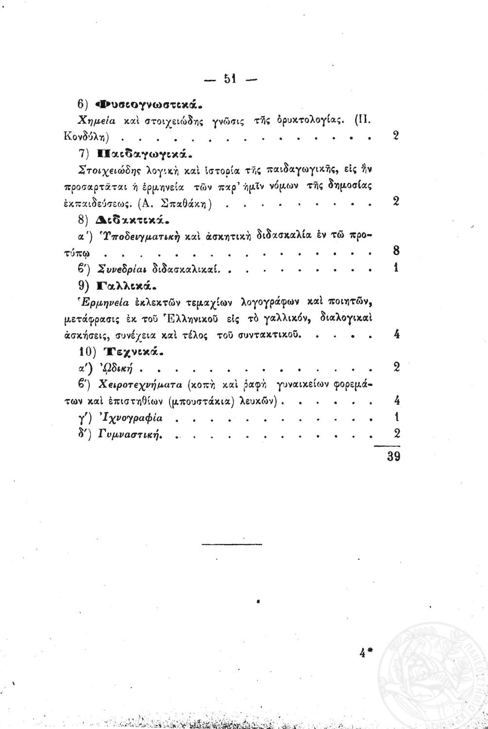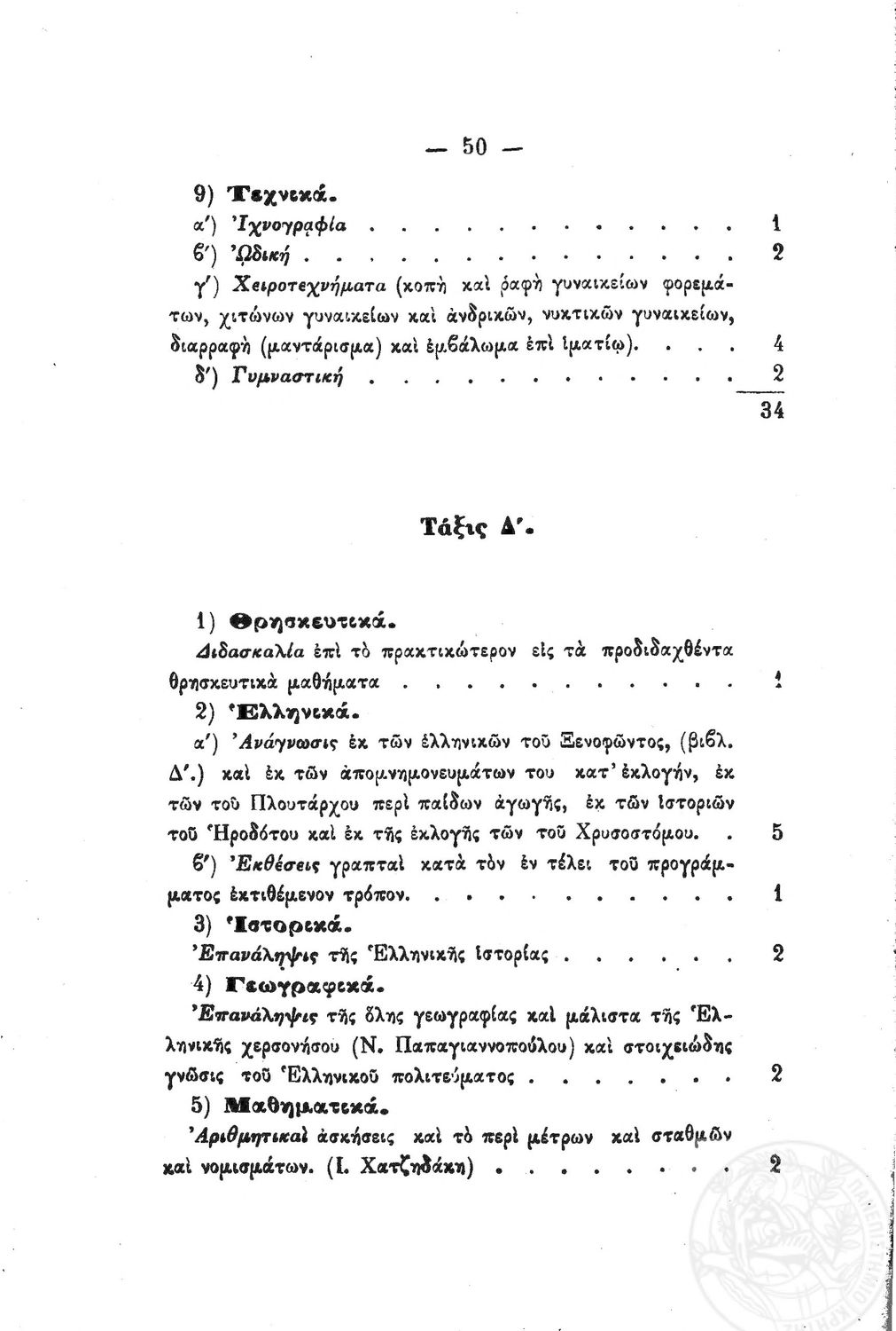 Δ. Περί διδασκαλίας των παιδαγωγικών μαθημάτων και των εξετάσεων των υποψηφίων διδασκαλισσών εν τοις Παρθεναγωγείοις της Φιλεκπαιδευτικής Εταιρίας