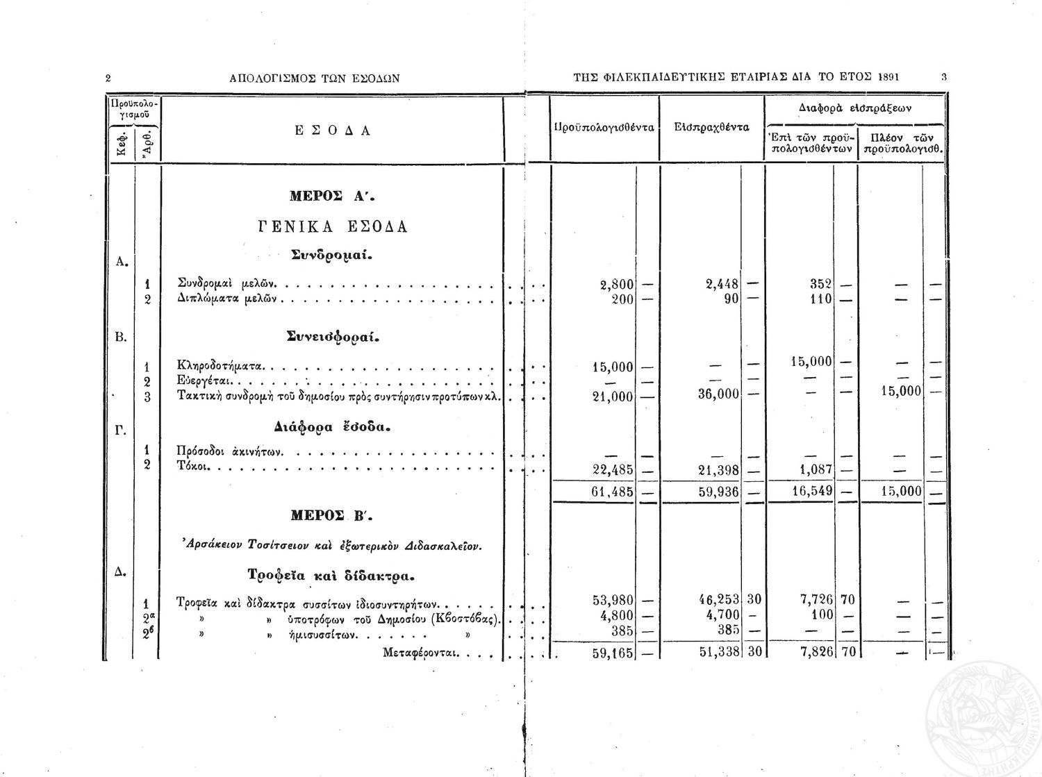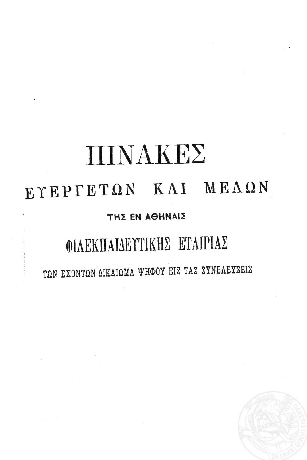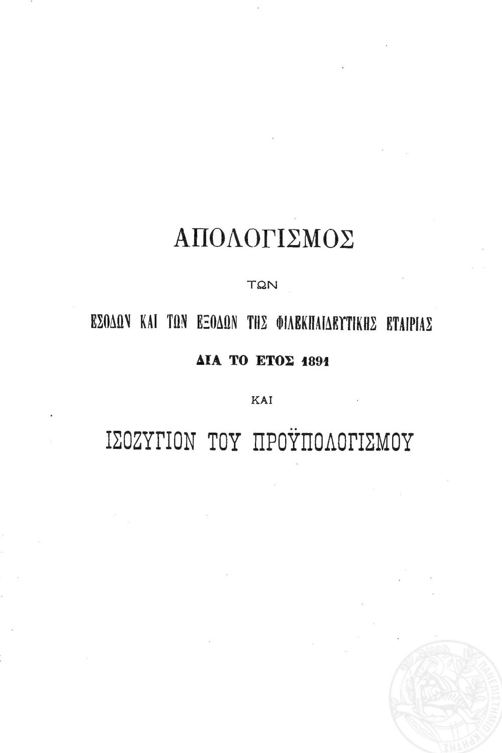 Τίτλος: Της εν Αθήναις Φιλεκπαιδευτικής Εταιρίας τα κατά το έτος 1891-1892 πεπραγμένα