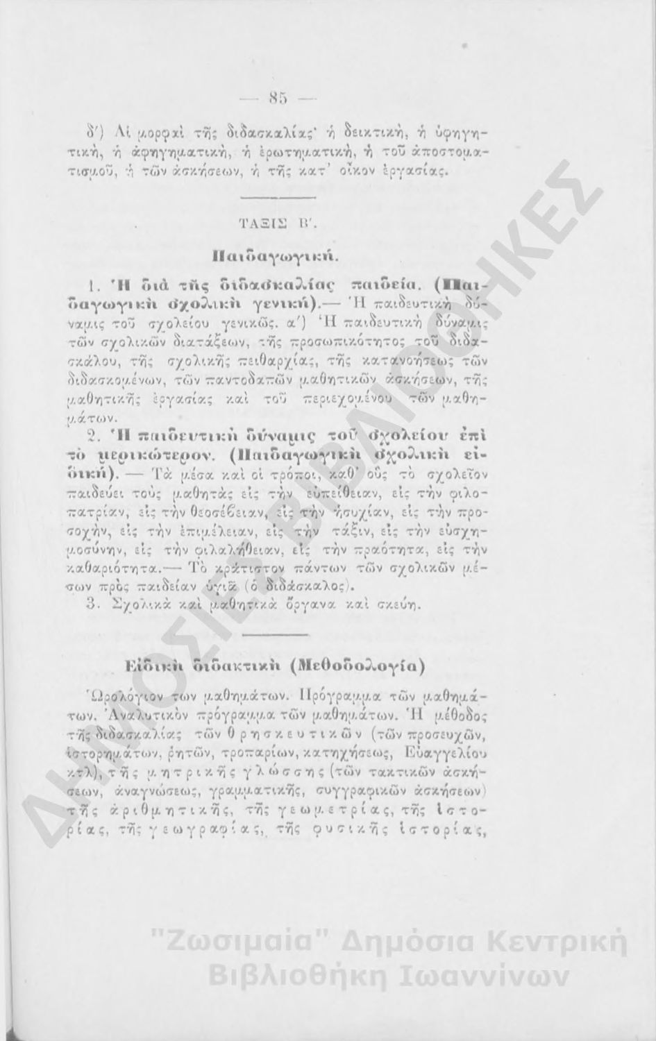 Β.Δ. Περί διδασκαλίας φιλοσοφικών και παιδαγωγικών μαθημάτων εν τω διδασκαλείω θηλέων Θεσσαλονίκης κατά το έτος 1914-1915