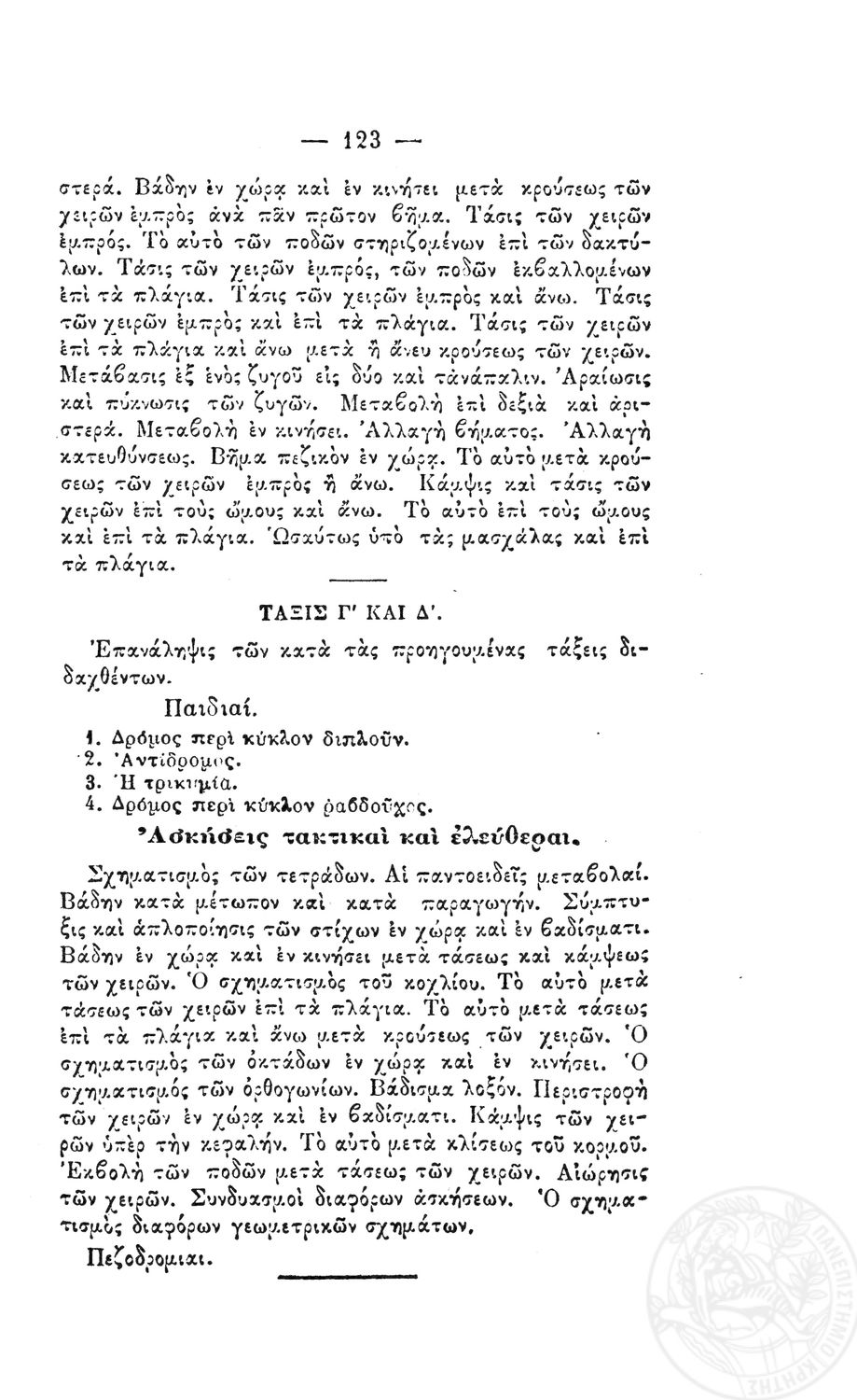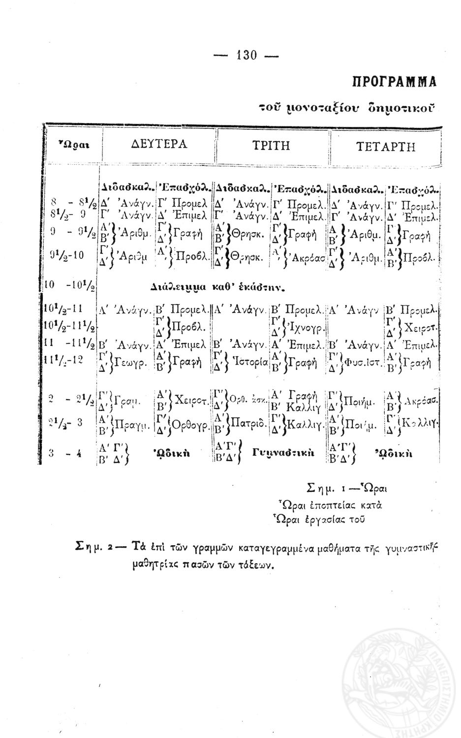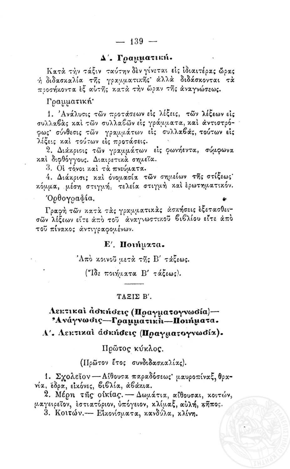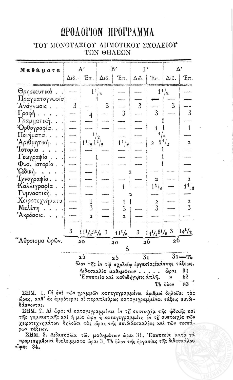 Β.Δ. Περί προγραμμάτων των μονοταξίων δημοτικών σχολείων των αρρένων