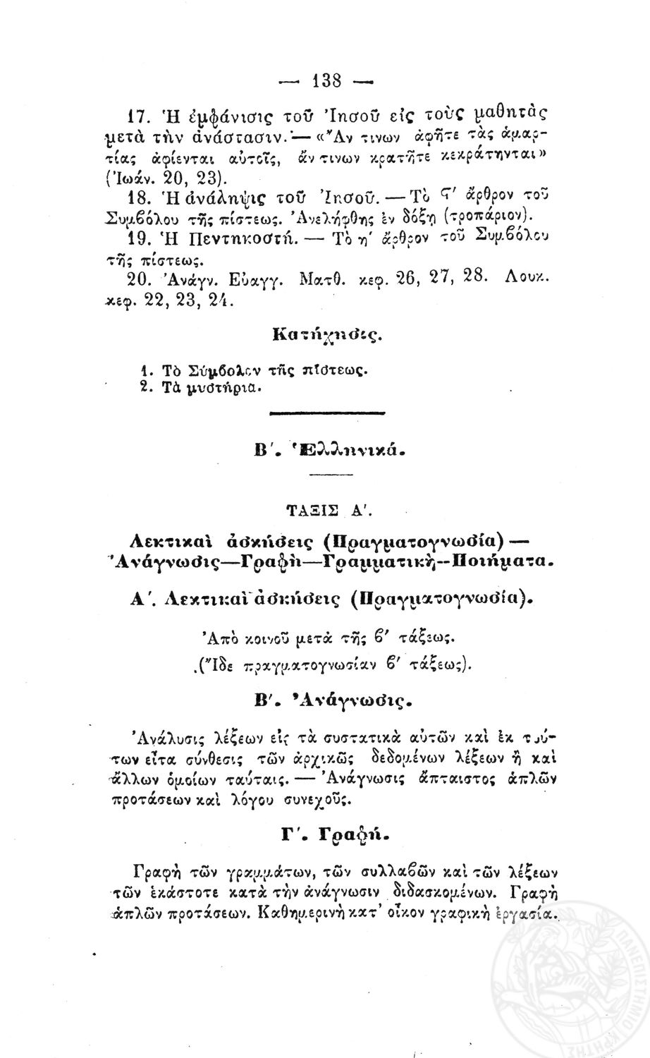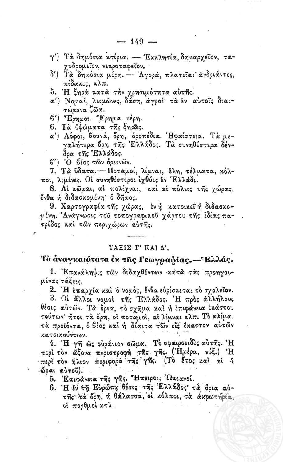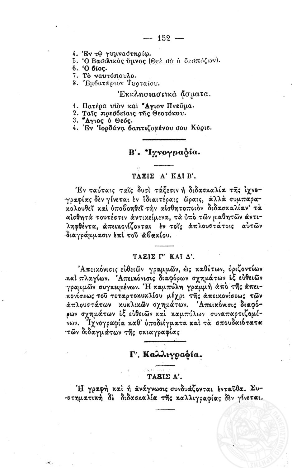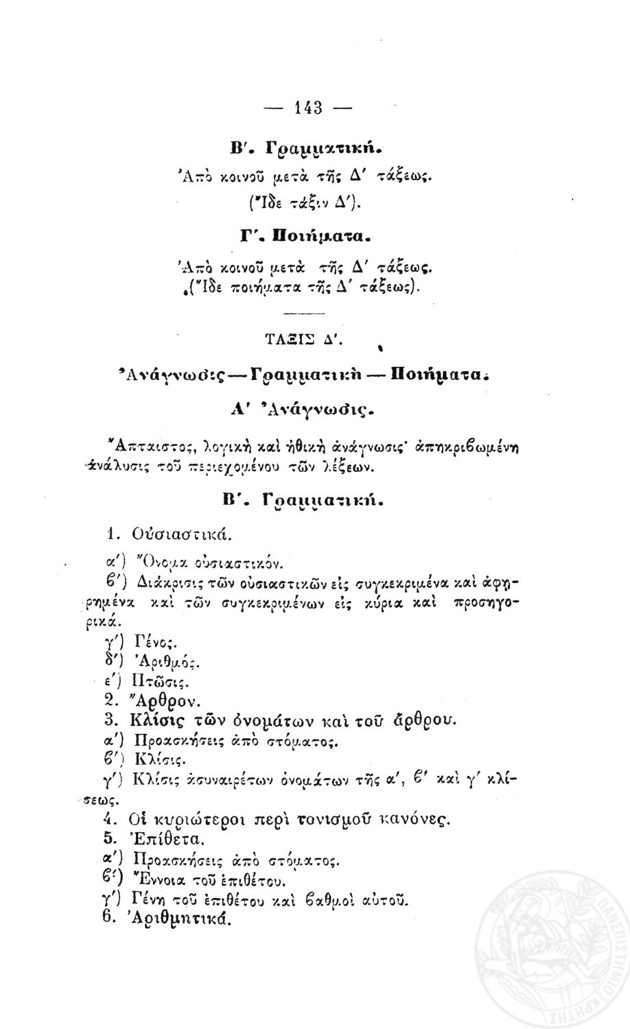 Β. Δ. Περί προγραμμάτων των μαθημάτων των τετραταξίων δημοτικών σχολείων των αρρένων