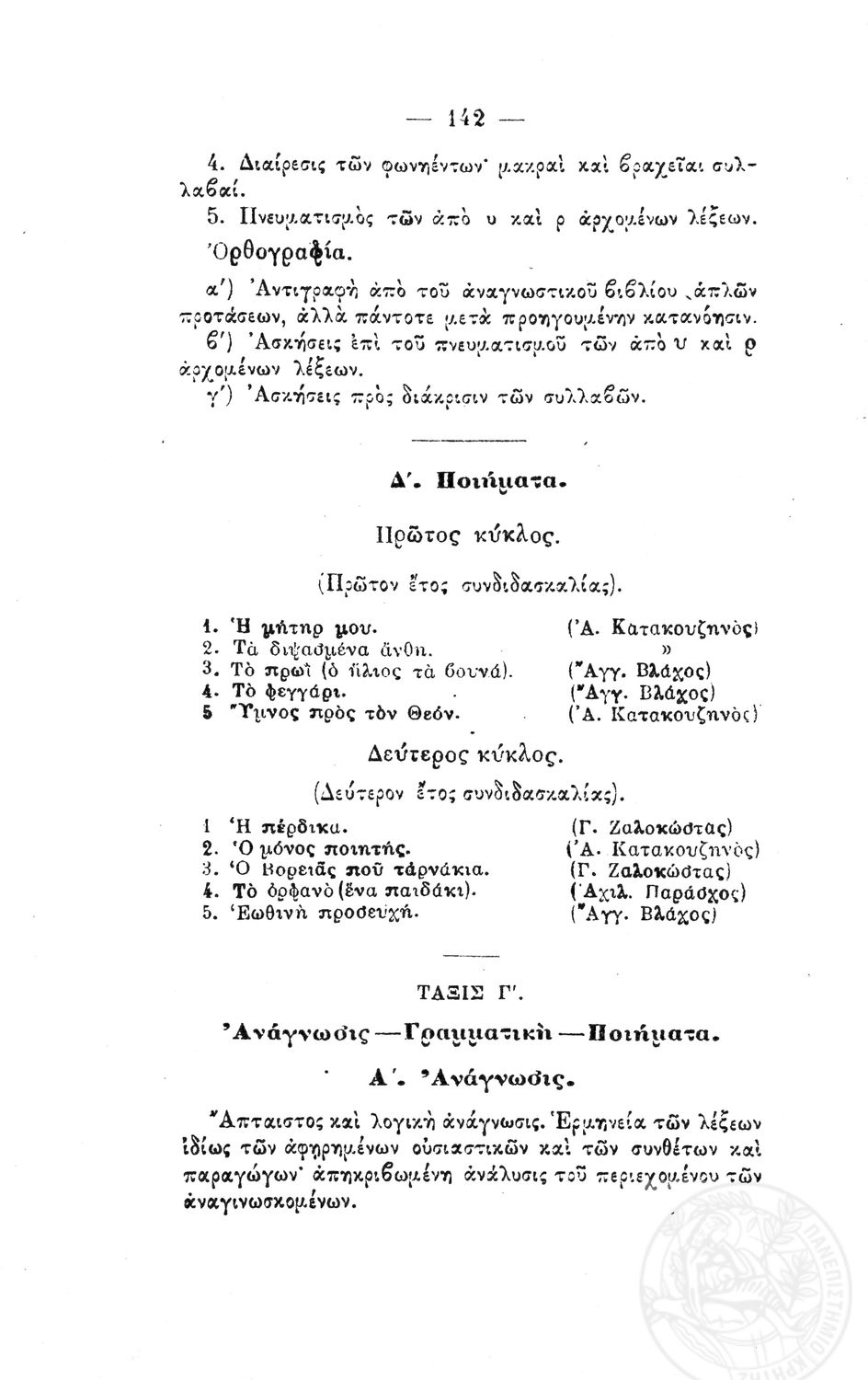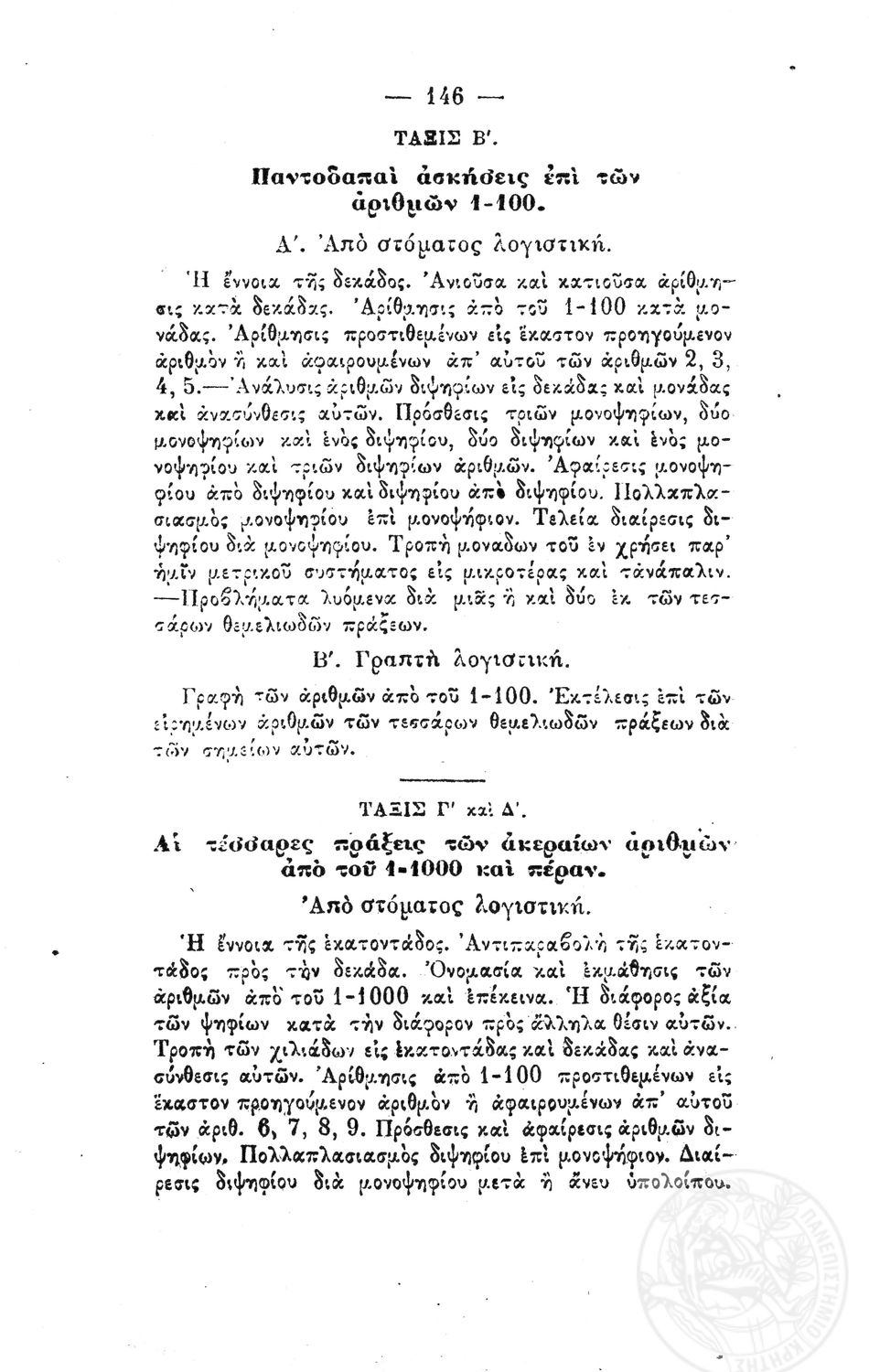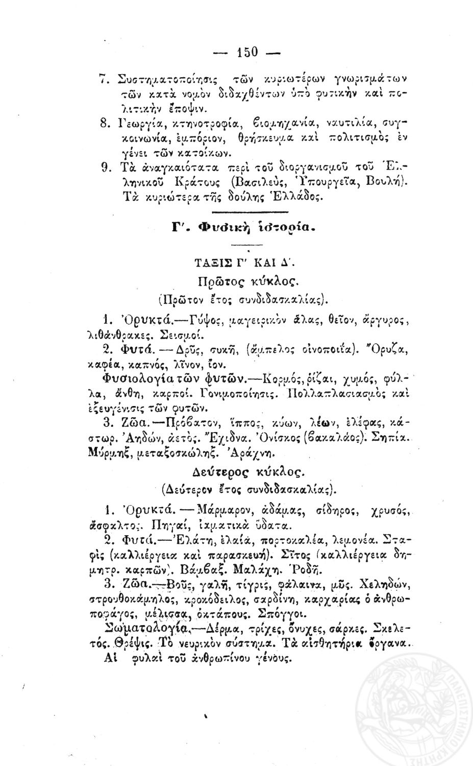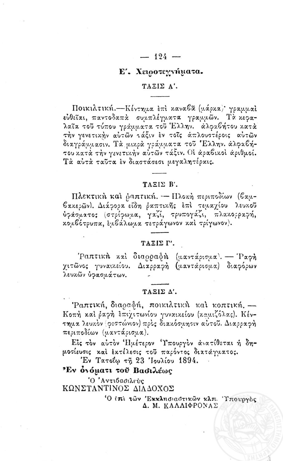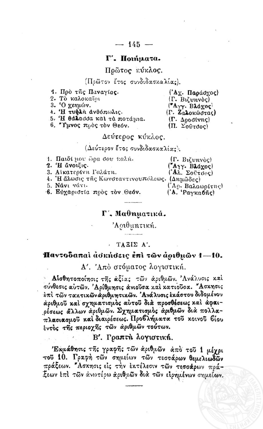 Β. Δ. Περί προγραμμάτων των μαθημάτων των τετραταξίων δημοτικών σχολείων των αρρένων