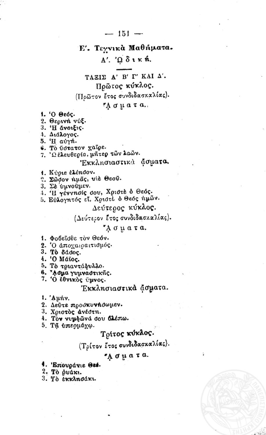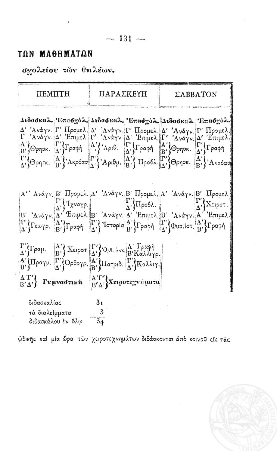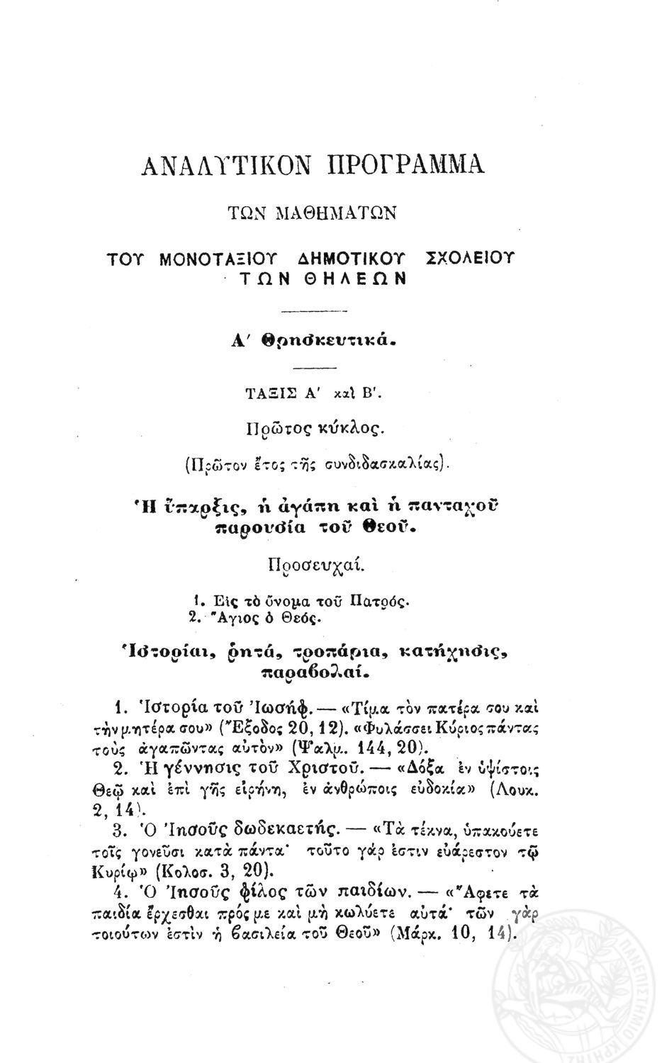 Τίτλος: Προγράμματα των Δημοτικών Σχολείων Θηλέων