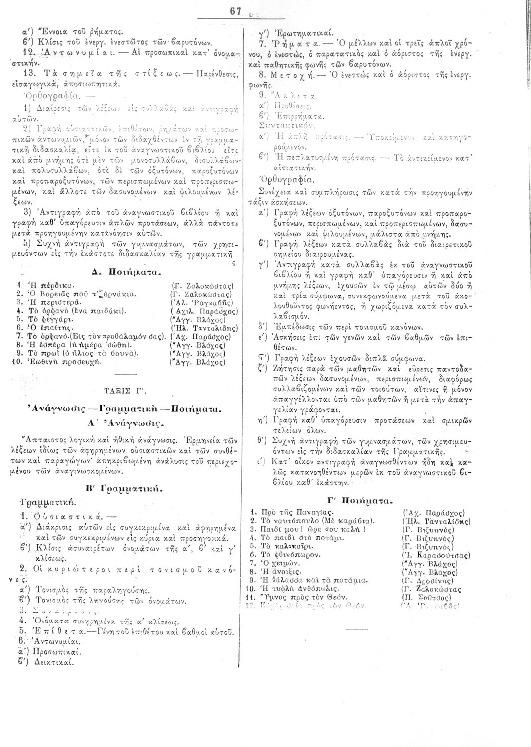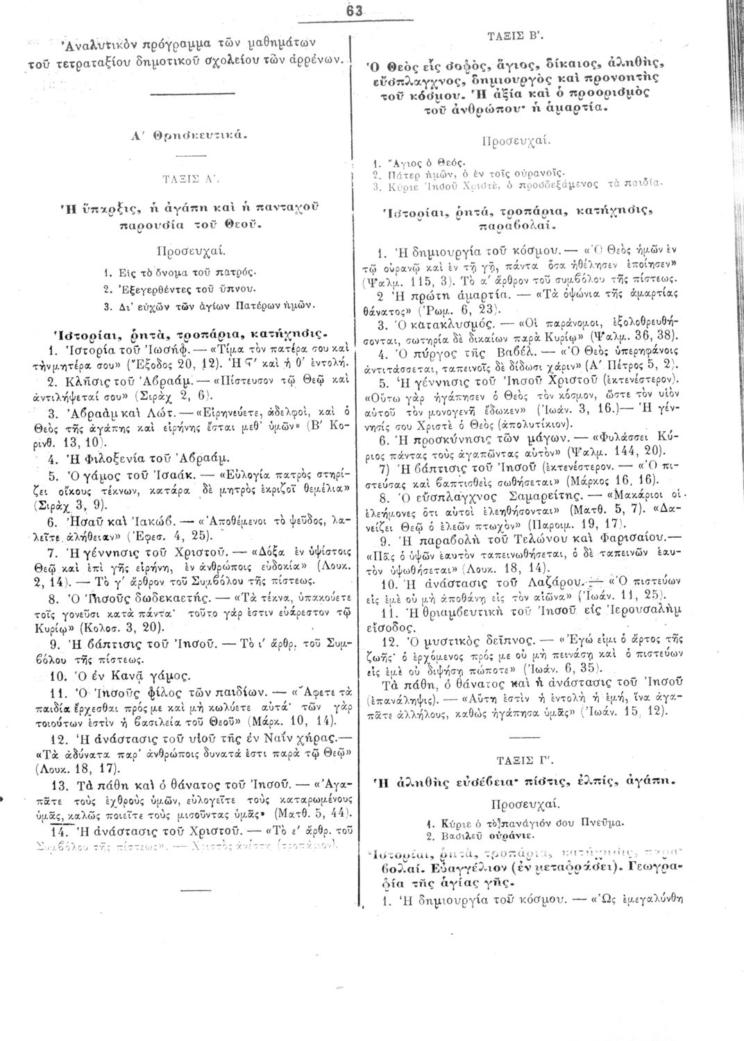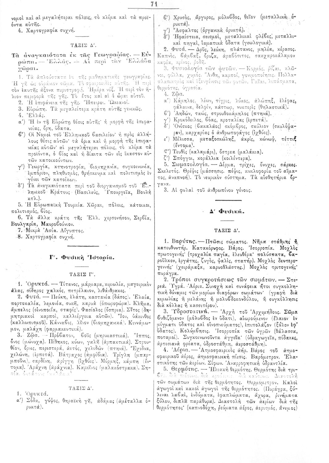 Παρουσίαση περιεχομένου: Β. Δ. Περί προγραμμάτων των μαθημάτων των τετραταξίων δημοτικών σχολείων των αρρένων Σχετικές σελίδες: 61-74 |