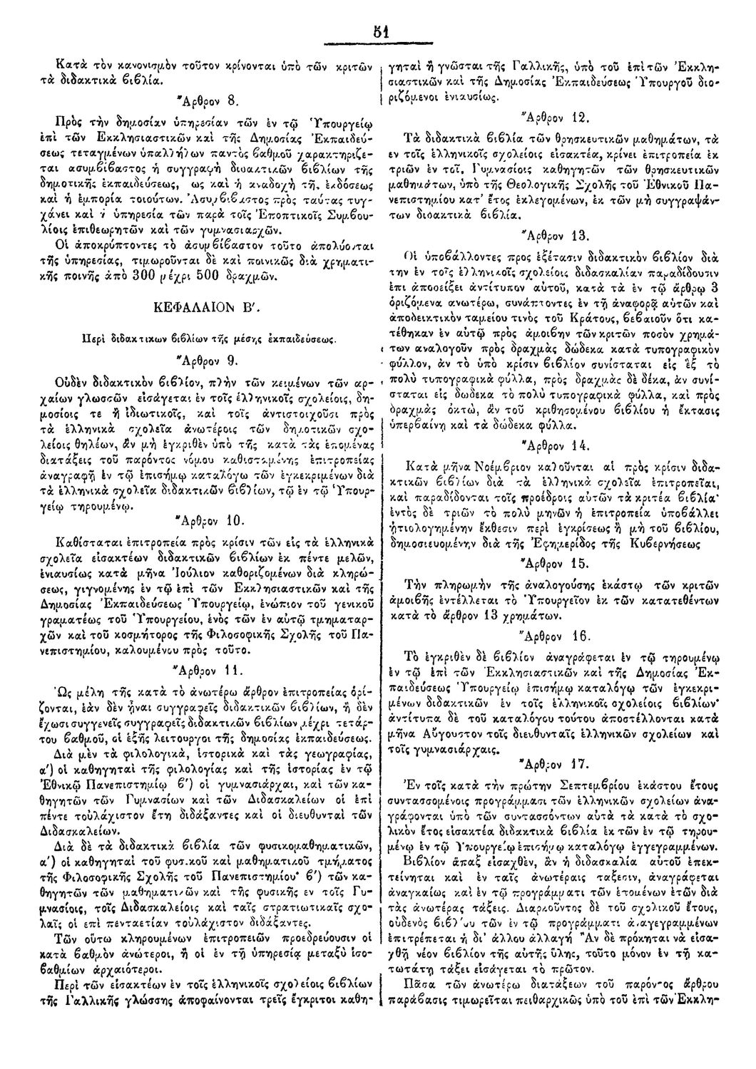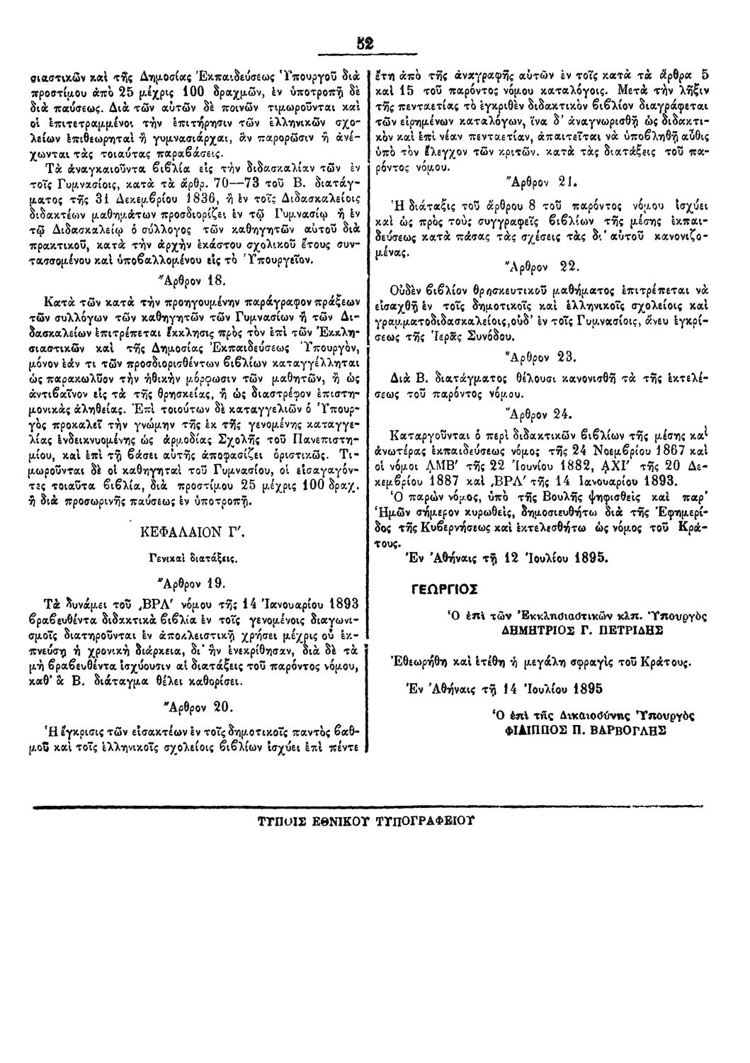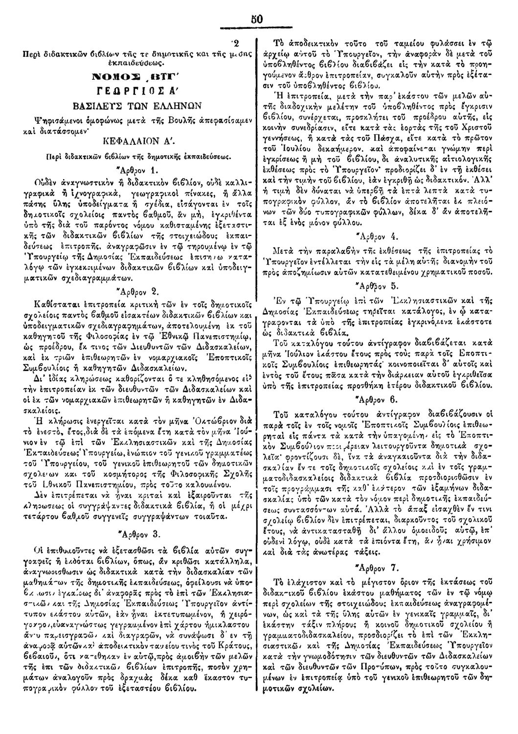 Νόμος ΒΤΓ 'Περί διδακτικών βιβλίων της τε δημοτικής και της μέσης εκπαιδεύσεως