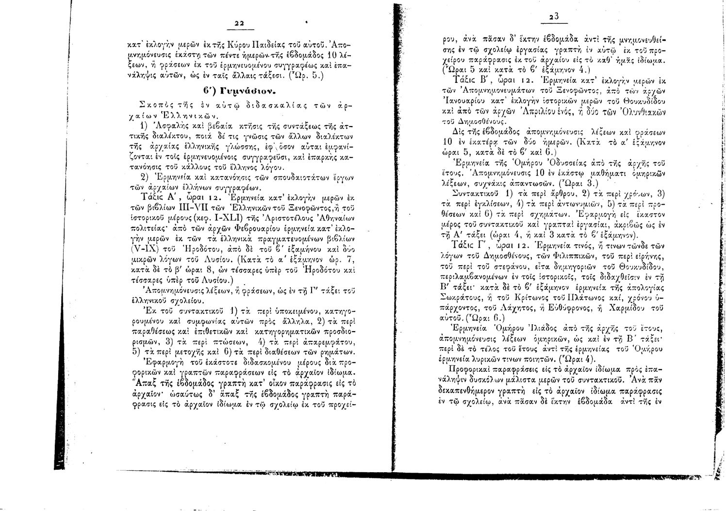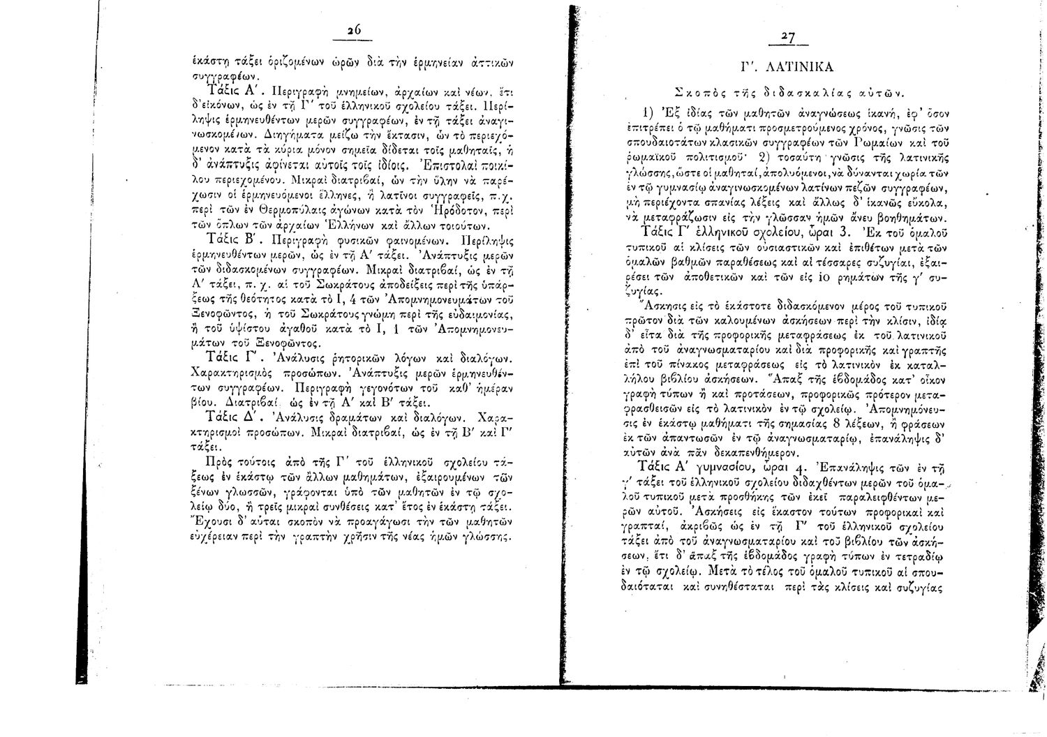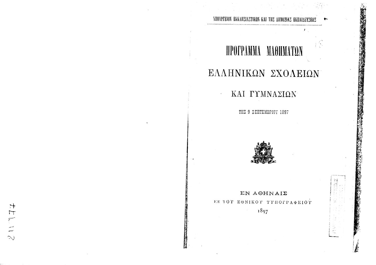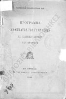 Κωδικός αναγνώρισης: 1897-0017 Τίτλος: Πρόγραμμα Μαθημάτων Ελληνικών Σχολείων και Γυμνασίων της 9 Σεπτεμβρίου 1897 Μέγεθος και υπόστρωμα: Λοιπά προγραμμάτων σπουδών, 22 σελίδες. |