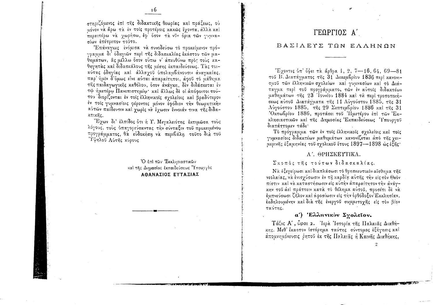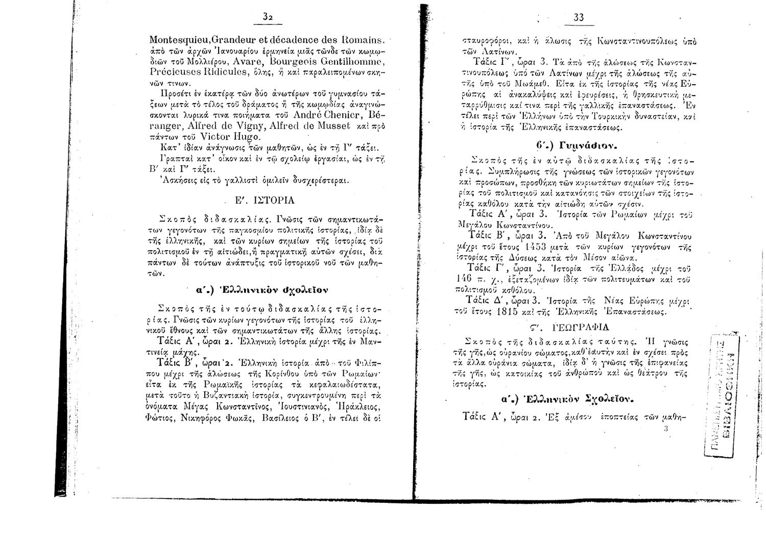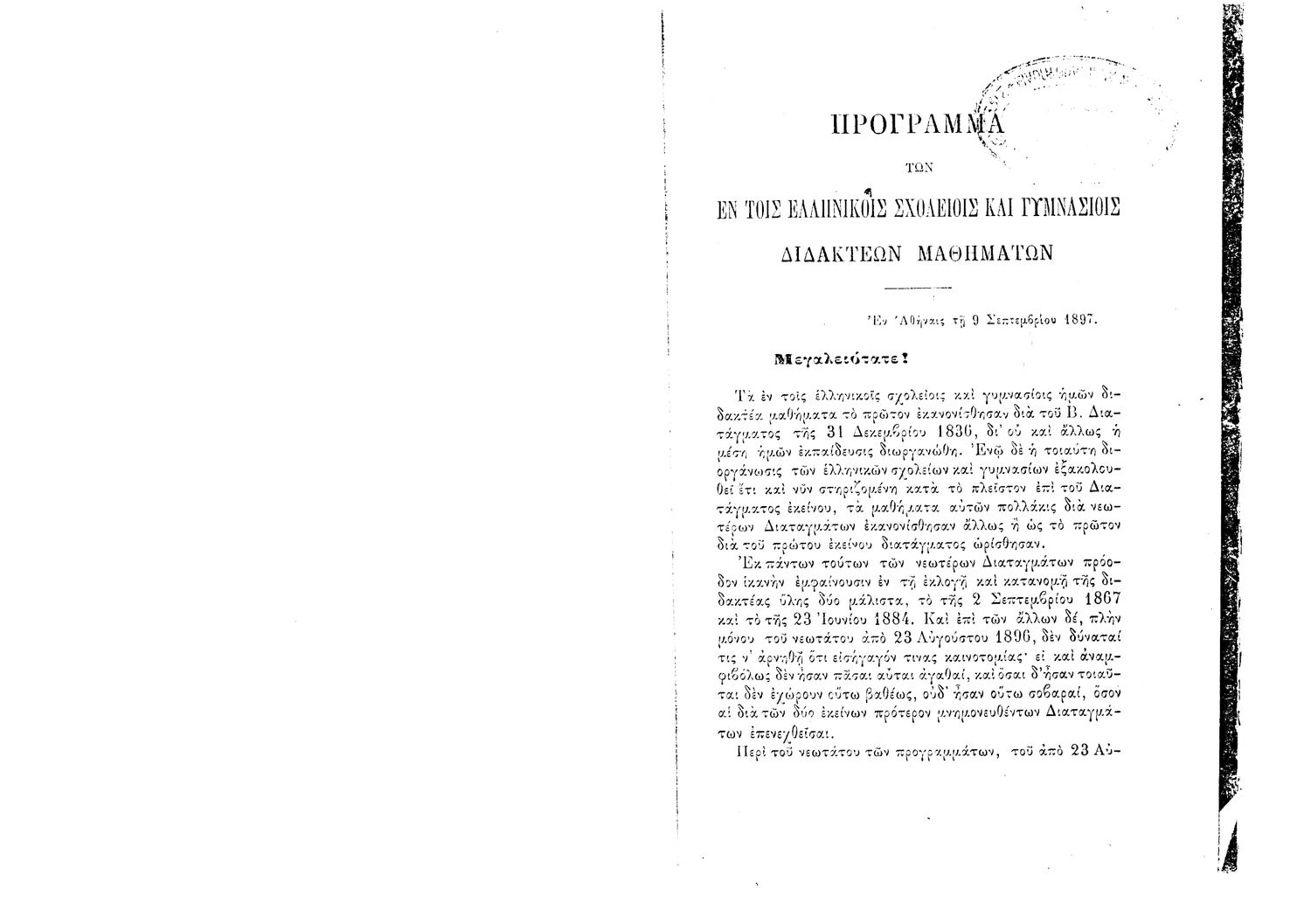 Κωδικός αναγνώρισης: 1897-0017 Τίτλος: Πρόγραμμα Μαθημάτων Ελληνικών Σχολείων και Γυμνασίων της 9 Σεπτεμβρίου 1897 Μέγεθος και υπόστρωμα: Λοιπά προγραμμάτων σπουδών, 22 σελίδες. |