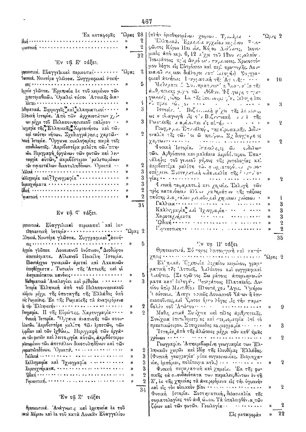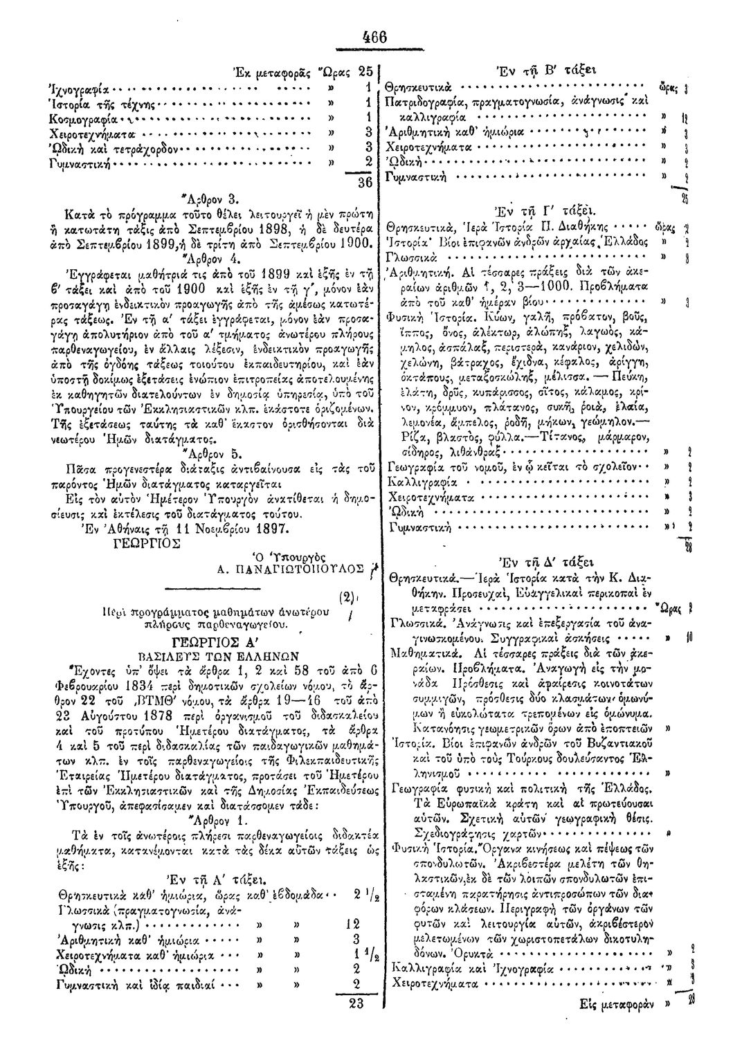 Περί προγράμματος μαθημάτων ανωτέρου πλήρους παρθεναγωγείου